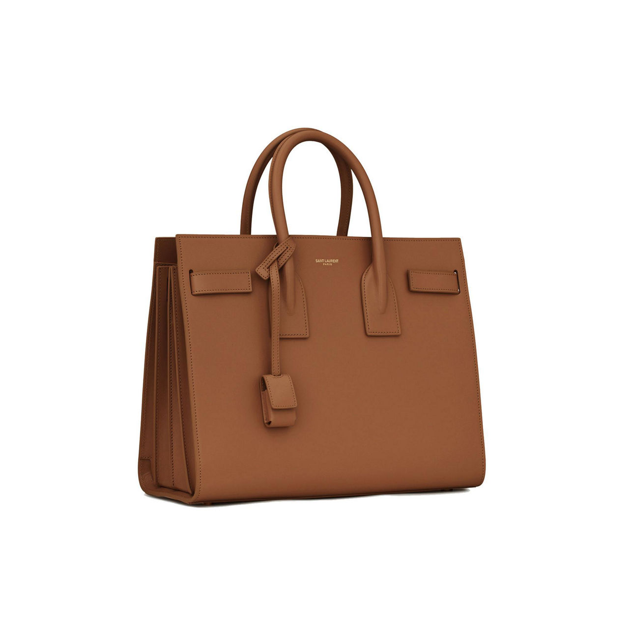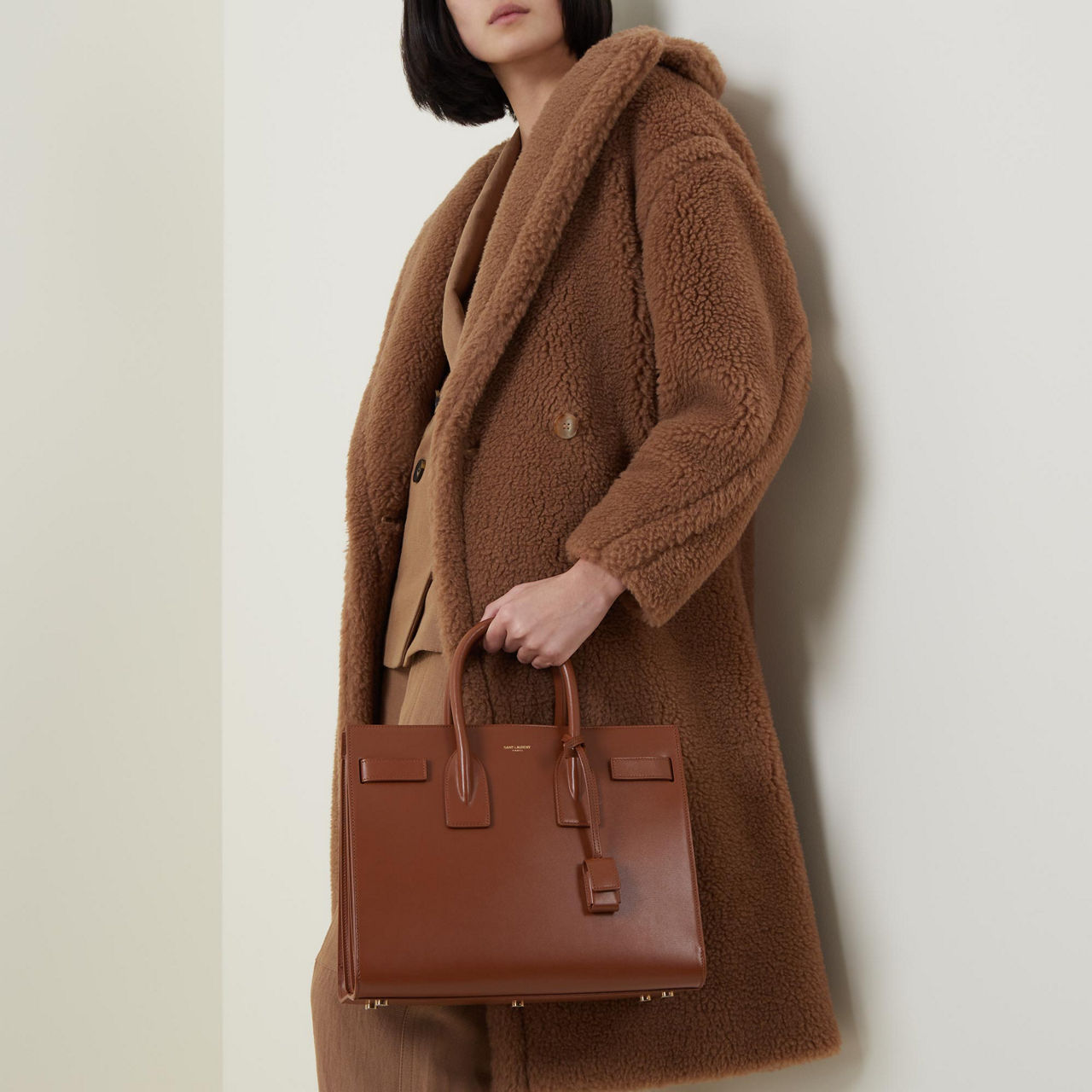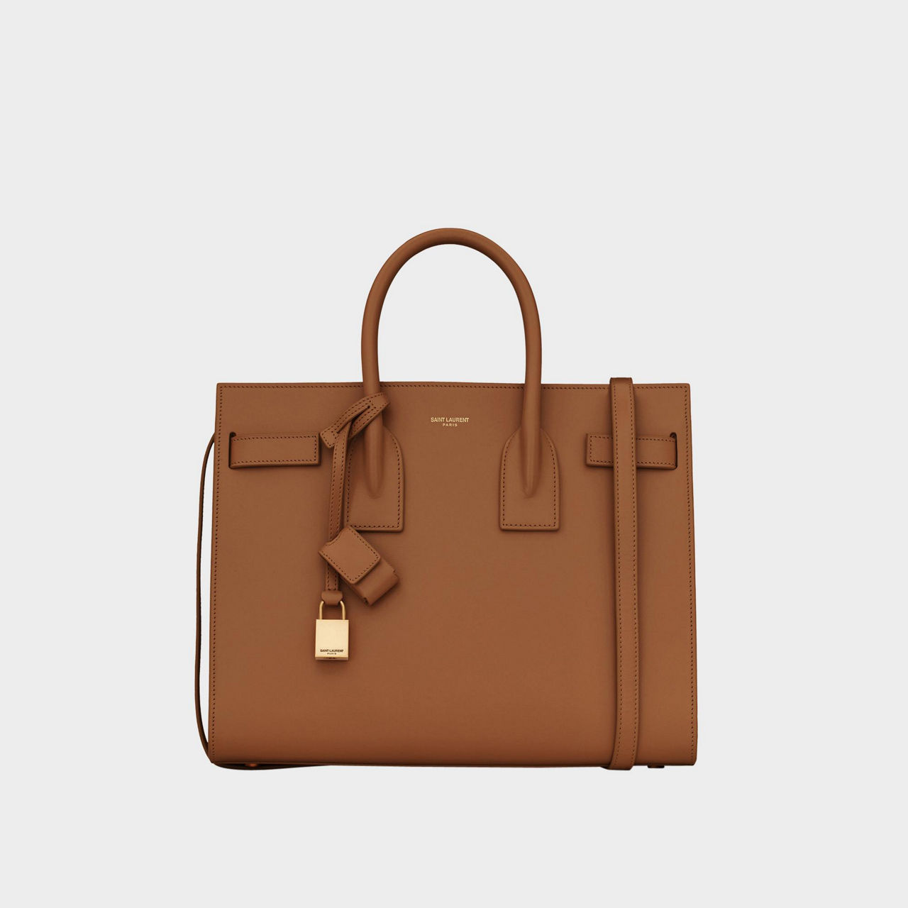 The Sac De Jour from Saint Laurent is a modern Maison classic, crafted from smooth leather to a structured silhouette with striking accordion sides. This version is rendered in a classic brown shade, and carried with two top handles that open to reveal a compact interior with space for all the essentials.