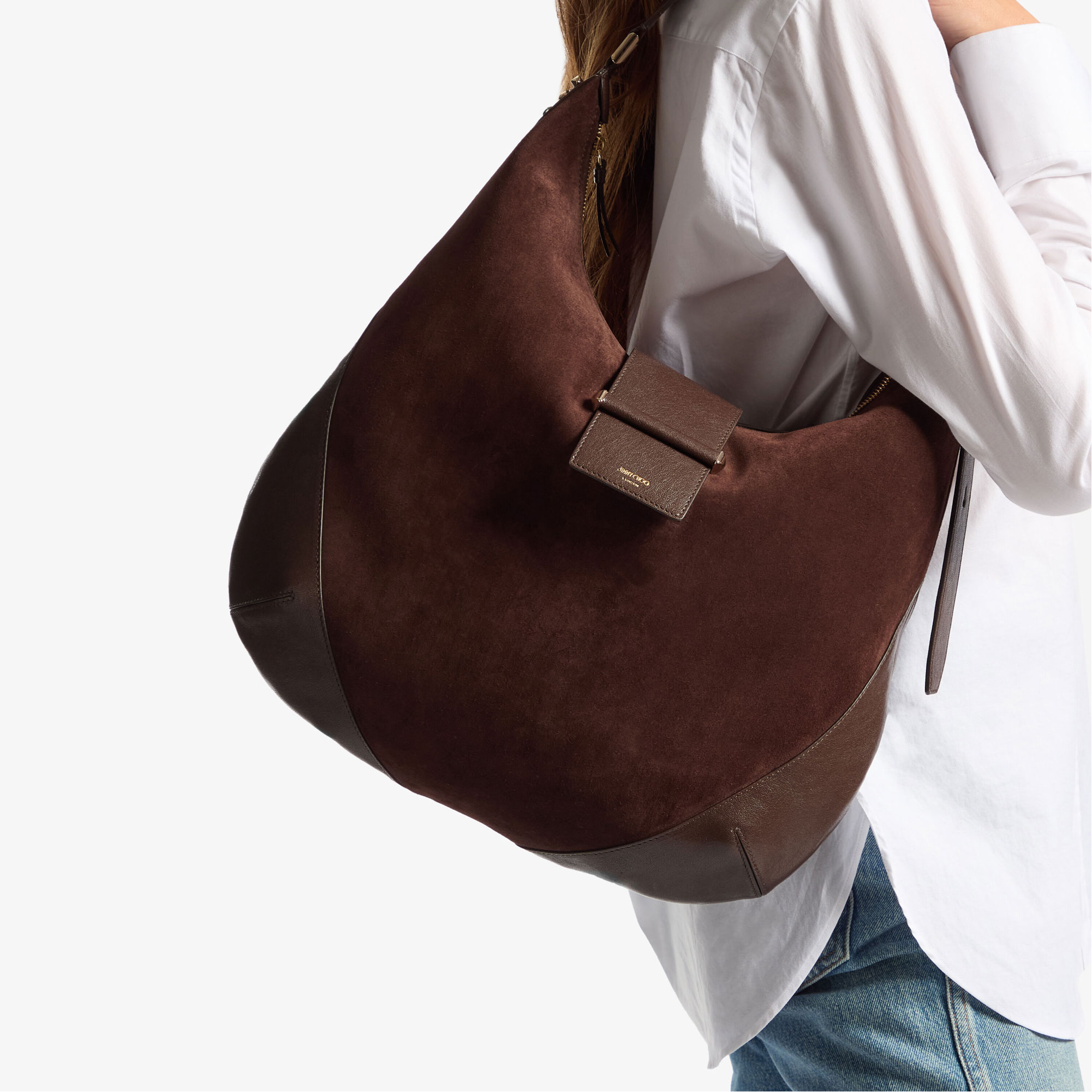 JIMMY CHOO Bar Suede Medium Hobo Shoulder Bag