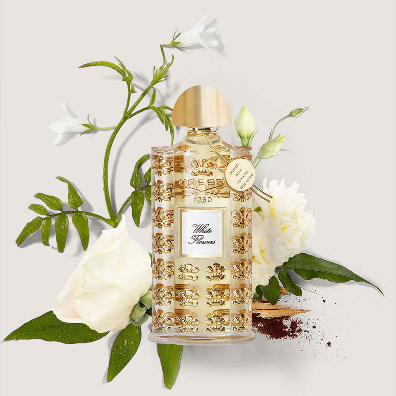 Experience White Flowers Eau de Parfum, a creamy white floral scent from The House of Creed which is timelessly classic yet enchantingly fresh. Zesty lemon and crisp apple intertwine with sambac jasmine and geranium leaves while exotic narcissus appears at the base complemented by musk and sandalwood.