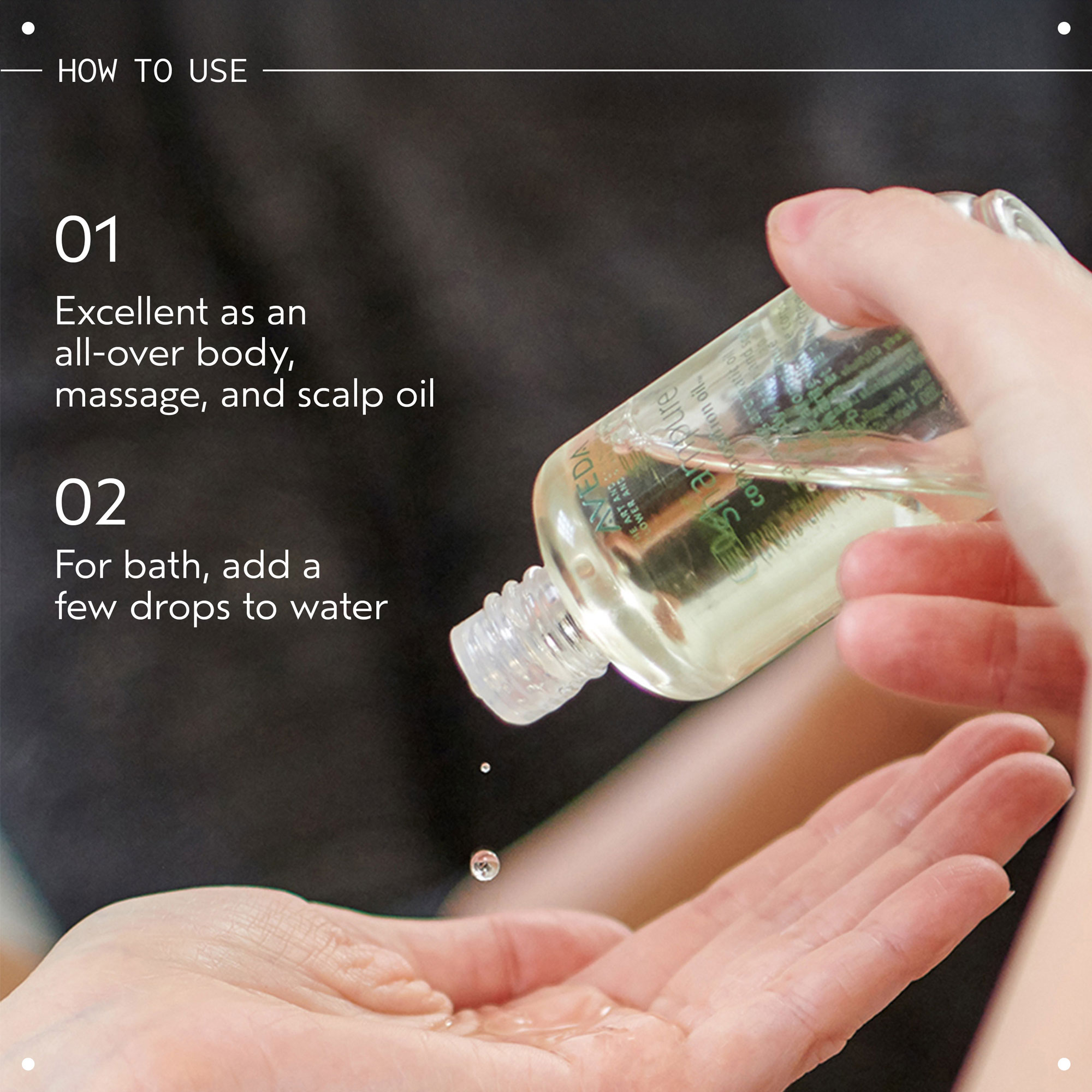 Create pure moments of peace. Beloved calming aroma with 25 pure flower and plant essences. Moisturises and provides instant radiance. Nourishing blend of certified organic sunflower and meadowfoam oils for body, bath and scalp.