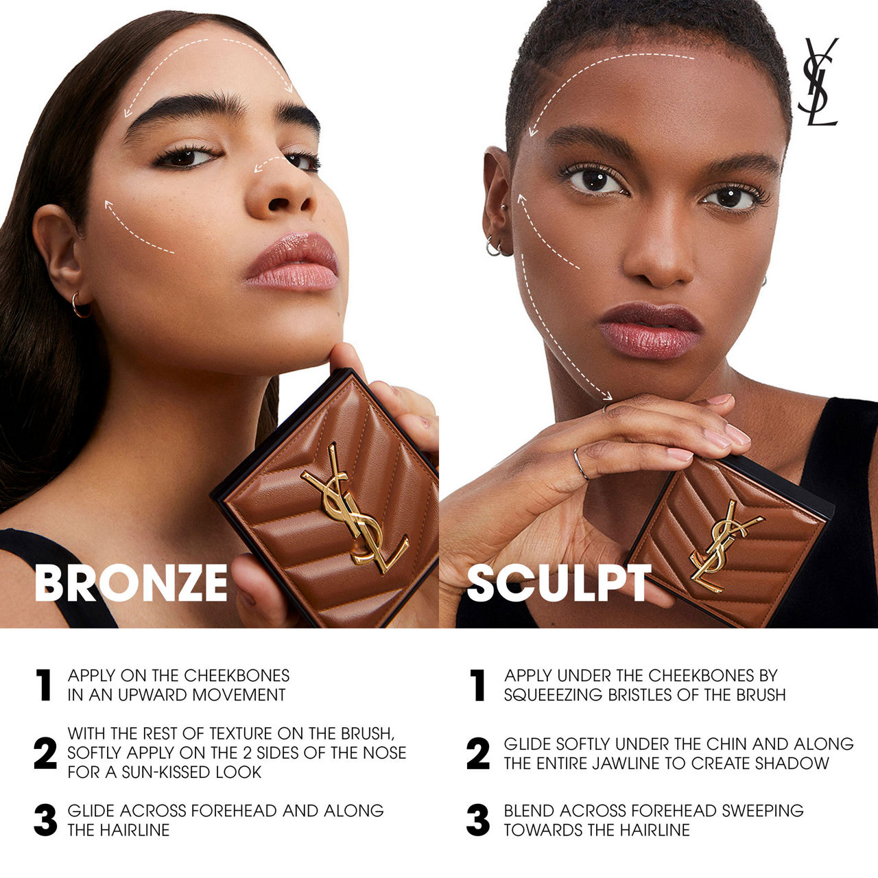 - How to use: Bronze: 1. Apply on the cheekbones in aN upward movement 2. With the rest of texture on the brush, softly apply on the 2 sides nose for a sun-kissed look 3. Glide across forehead and along hairline. Sculpt 1. Apply under the cheekbones by squeezing bristle of the brush 2. Glide softly under the chin and along the entire jawline to create shadow 3. Blend across forehead sweeping toward the hairline.