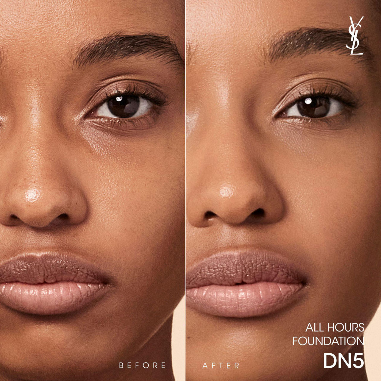 New and Improved YSL Beauty All Hours Foundation, the complexion that you can rely on all day. Now with an upgraded, breathable formula that provides up to 24H full coverage and a weightless light as air feel, as if your skin was bare.
