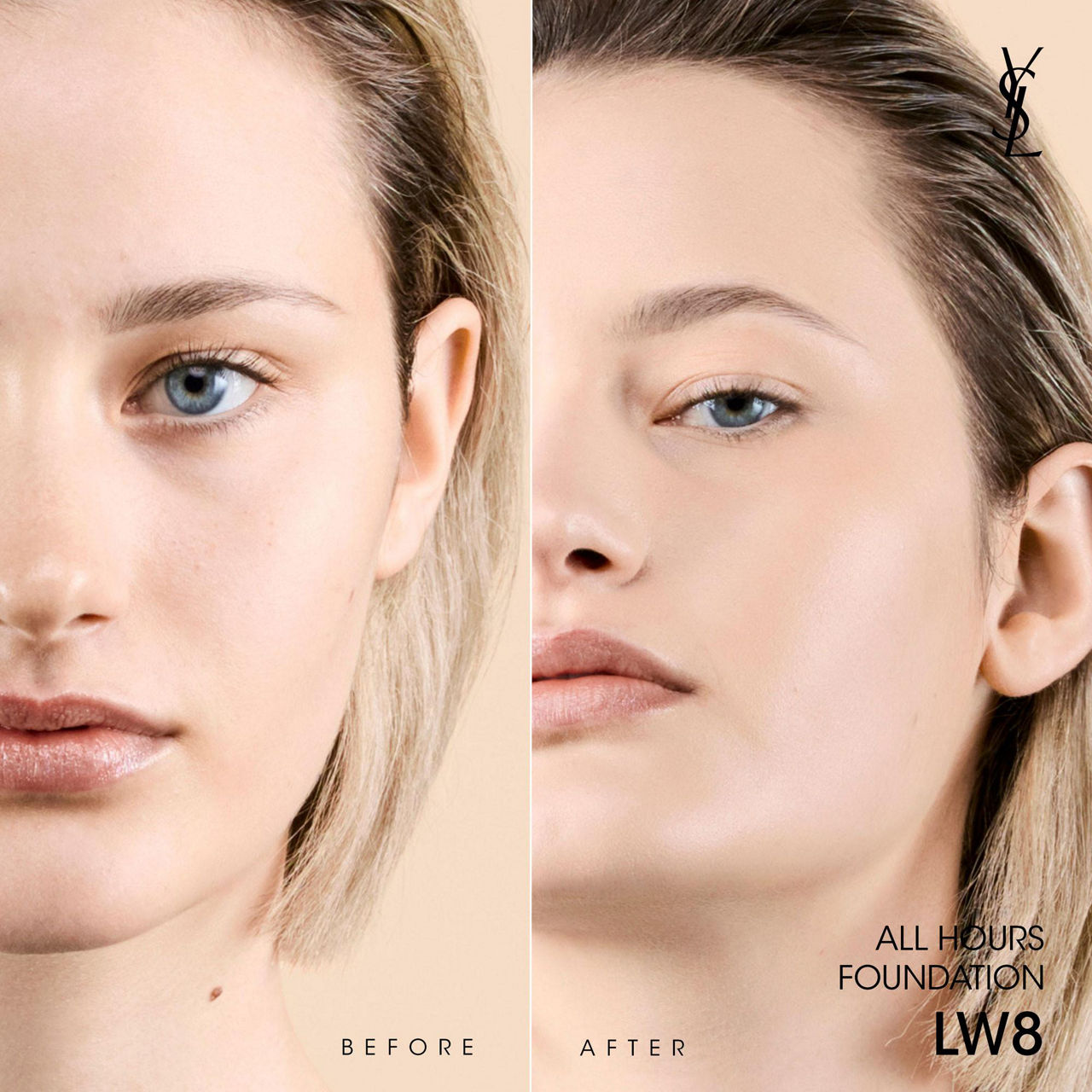 New and Improved YSL Beauty All Hours Foundation, the complexion that you can rely on all day. Now with an upgraded, breathable formula that provides up to 24H full coverage and a weightless light as air feel, as if your skin was bare.