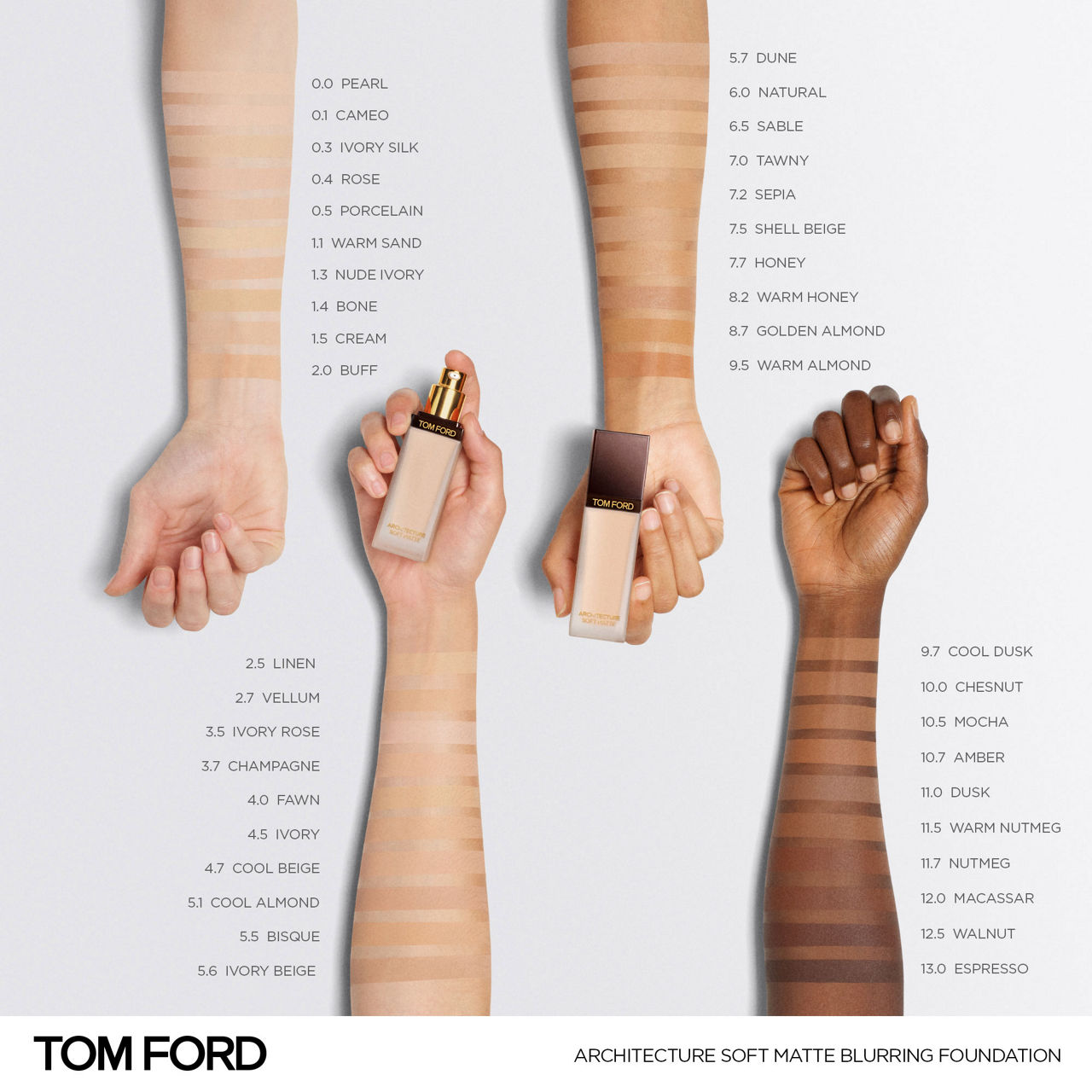 - TOM FORD ARCHITECTURE is a three-step philosophy designed to perfect, sculpt and enhance your unique face architecture. Each step highlights your best features and amplifies your individual beauty. 1 Perfect the skin - Establish a flawless foundation. 2 Sculpt the contour - Create an appearance of light and shadow. 3 Enhance the dimension - Define brows and customise colour.
