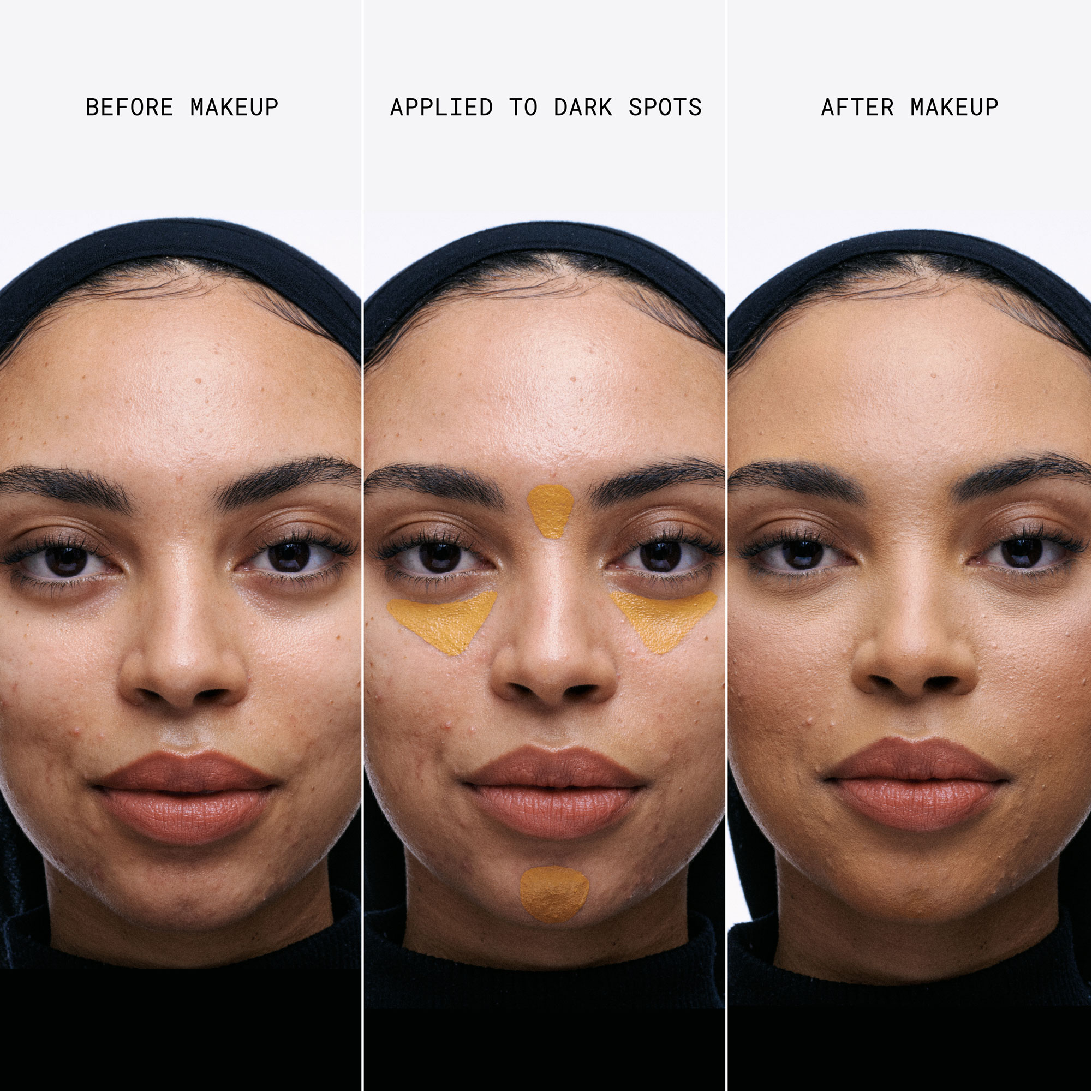 - Ochre: Corrects the look of dark spots. Balances and adds warmth to darker/brown-grey areas. Ideal for medium to deep skin tones.