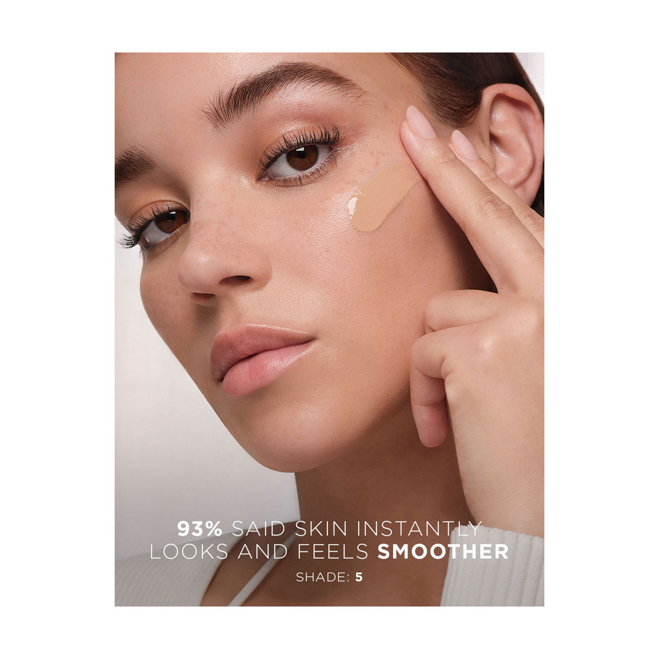 A lightweight skin tint that instantly boosts skin’s moisture levels by 52% and provides all-day hydration for a dewy, healthy-looking glow. This formula melts instantly into skin, providing comfortable all-day wear and a sheer veil of coverage to diffuse imperfections and even skin tone, while visibly plumping and smoothing the complexion. It’s formulated with 94% naturally-derived ingredients including hyaluronic acid to deeply hydrate and enhance skin’s radiance. Also infused with plant-based squalane, meadowfoam seed oil, and a rambutan blend, the formula instantly makes skin look and feel smoother while providing continuous nourishment throughout the day.