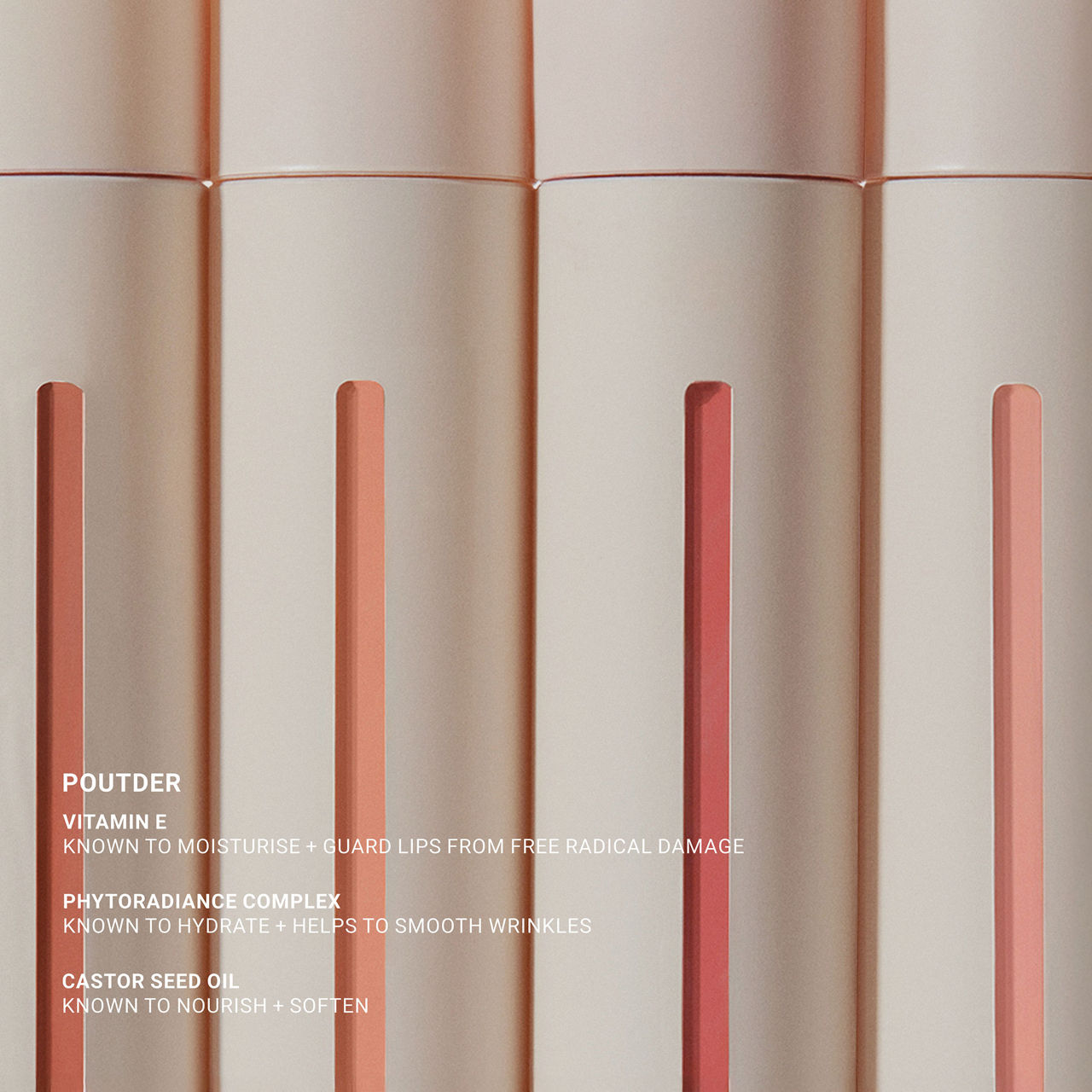 How to Use: For best results, prime your lips with balm and blot off before applying. Poutder isn't just for lips - dab some on your cheeks for a soft, diffused flush.