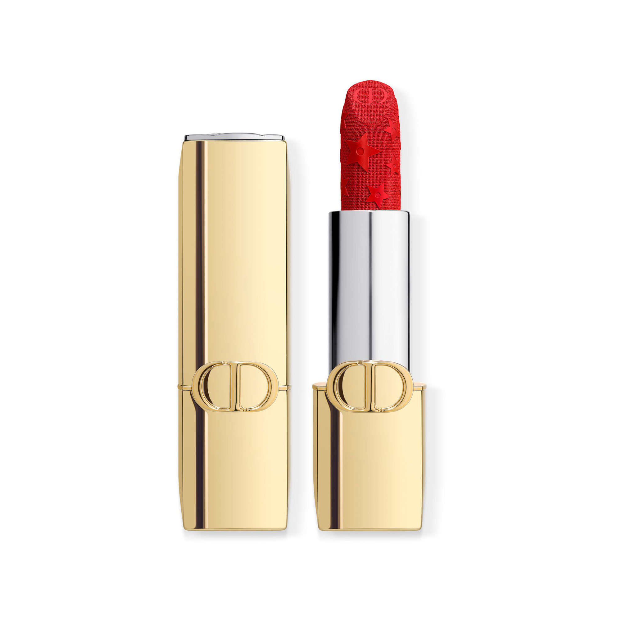 Description: This holiday season, the iconic Rouge Dior lipstick is reimagined with a gold case and a bullet intricately engraved with stars.