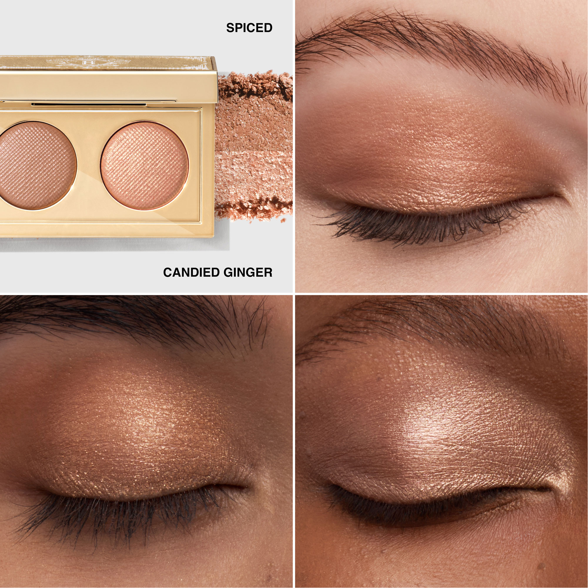 How to Use: Apply the rich luster shade across the eyelid and blend up to the crease. Highlight with the rich metal shade at the inner corners and center of the lid for glimmering dimension.