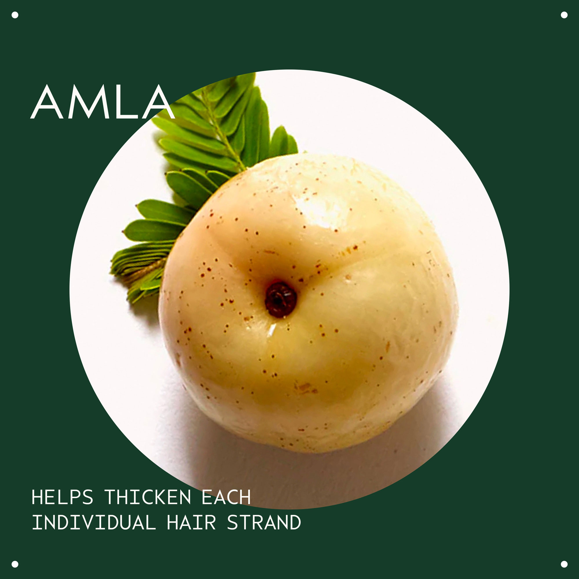 - Amla helps thicken each individual hair strand making hair look and feel thicker from roots to ends