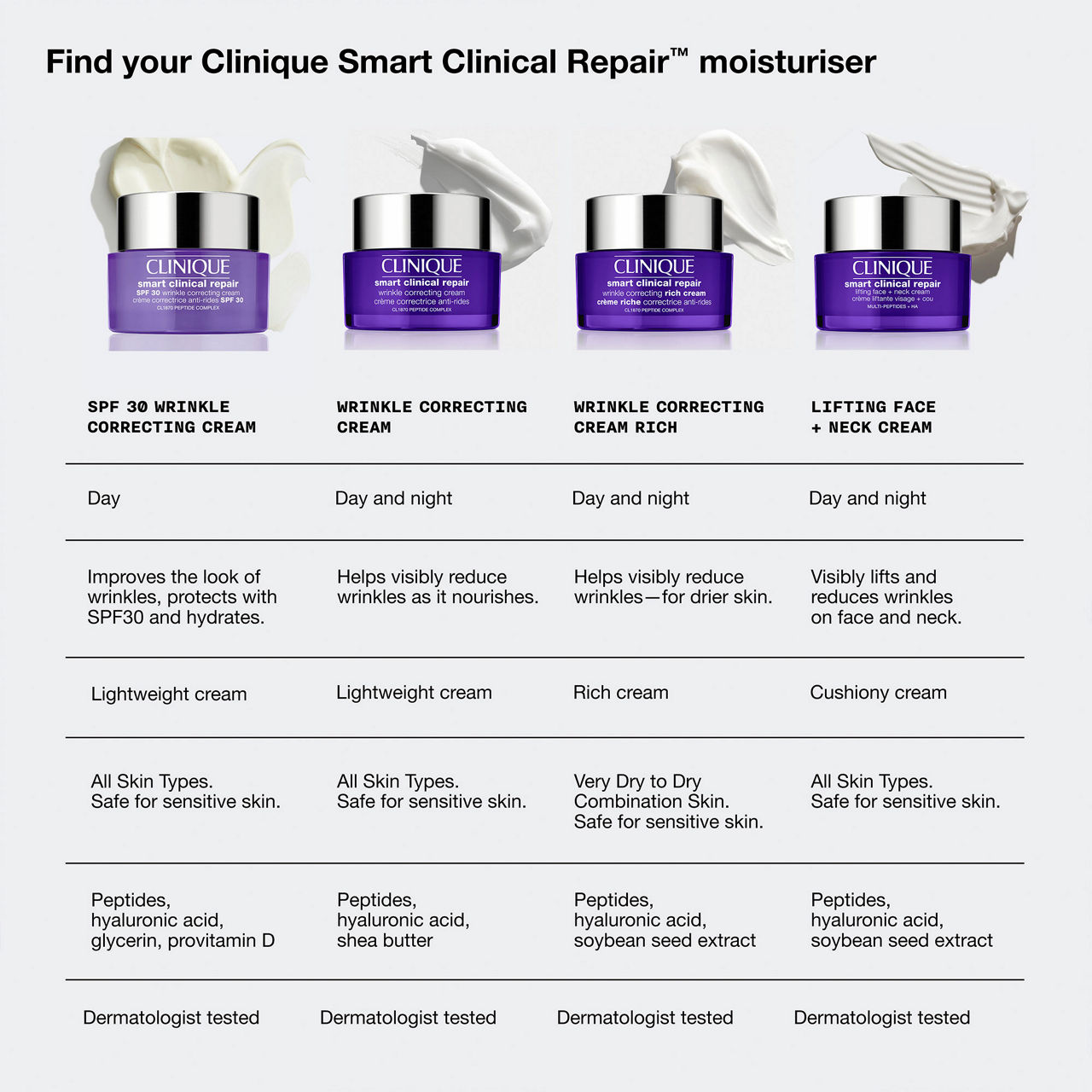 - How To Use: Apply to face in the AM after using Clinique Smart Clinical Repair™ Wrinkle Correcting Serum. Follow with Clinique Smart Clinical Repair™ Wrinkle Correcting Eye Cream for the ultimate anti-ageing routine.