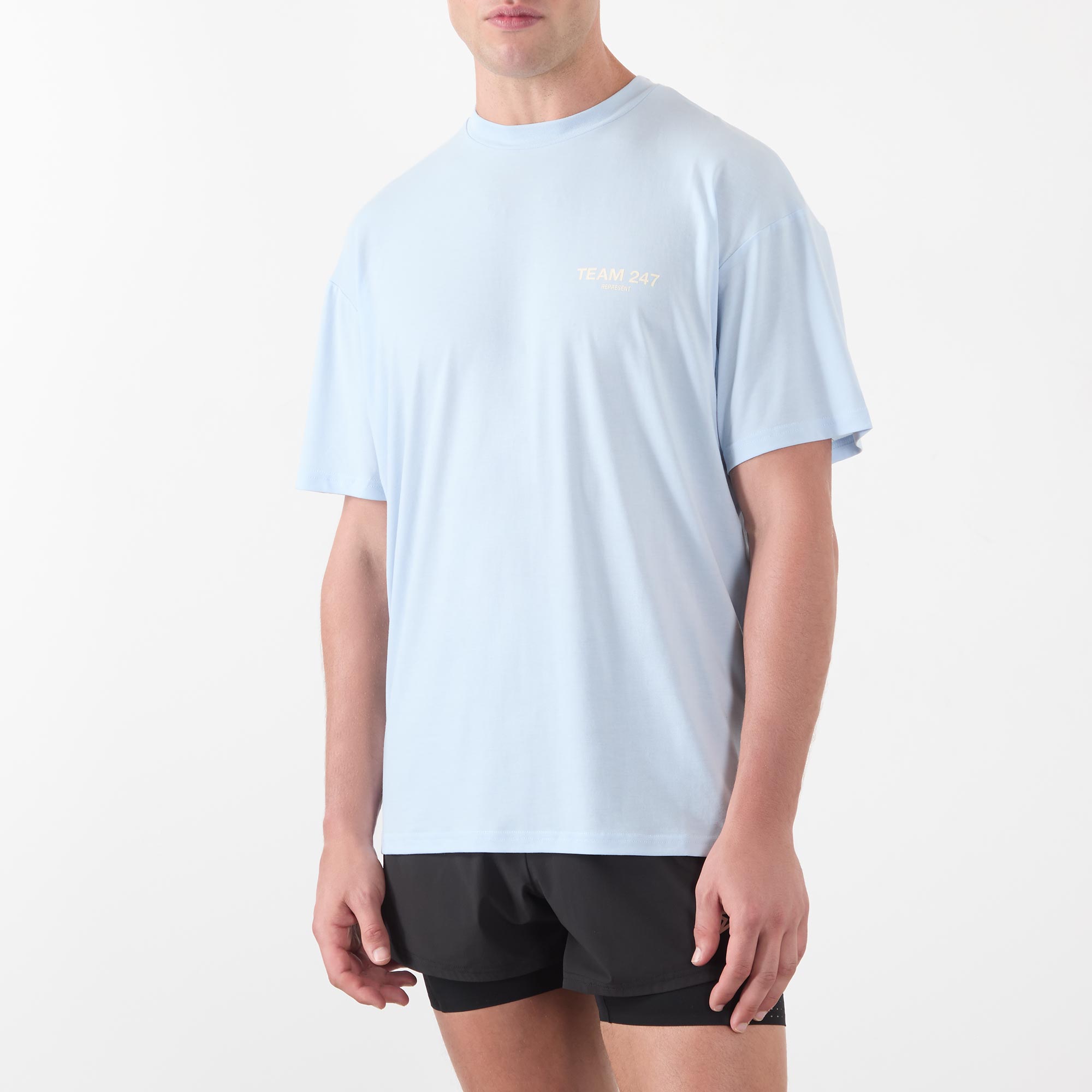 • Crew neck, dropped shoulders, short sleeves, straight hem, contrast logo detail on the chest, contrast logo graphic on the back