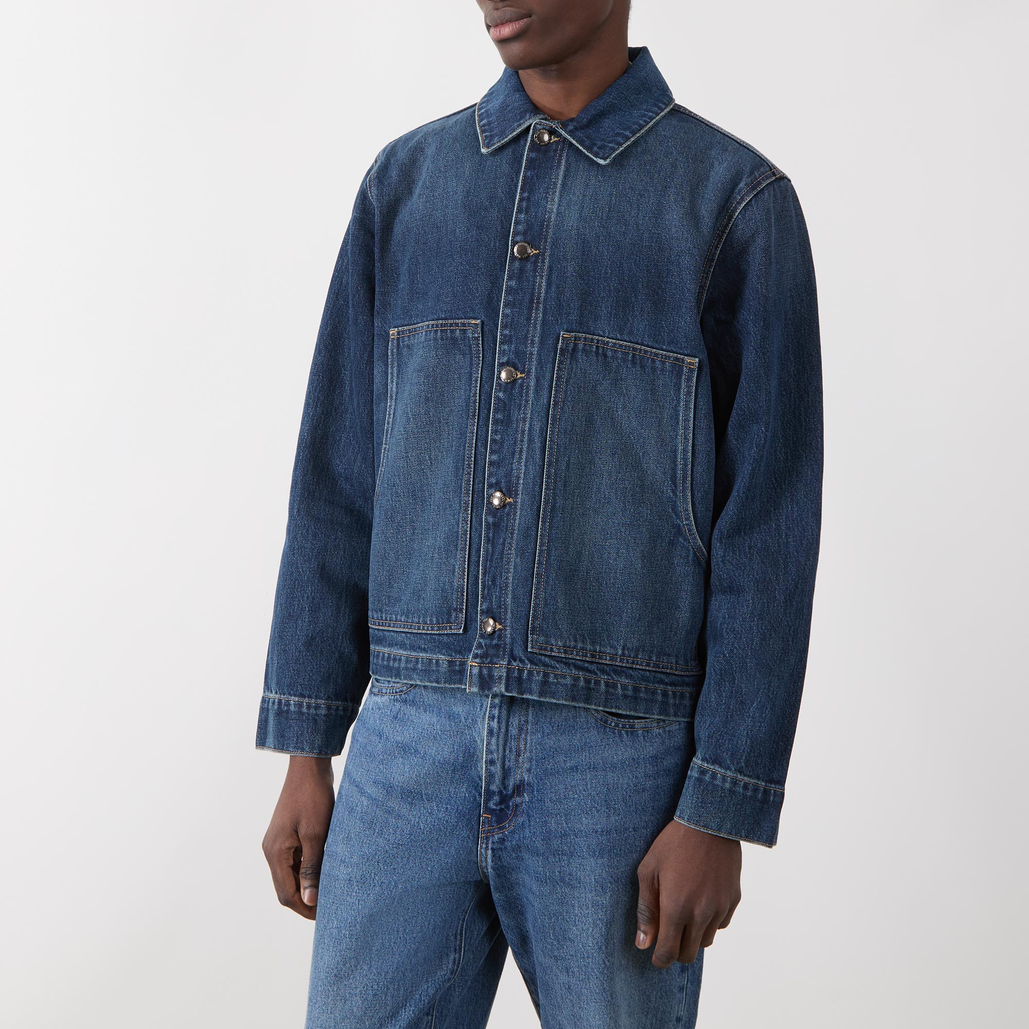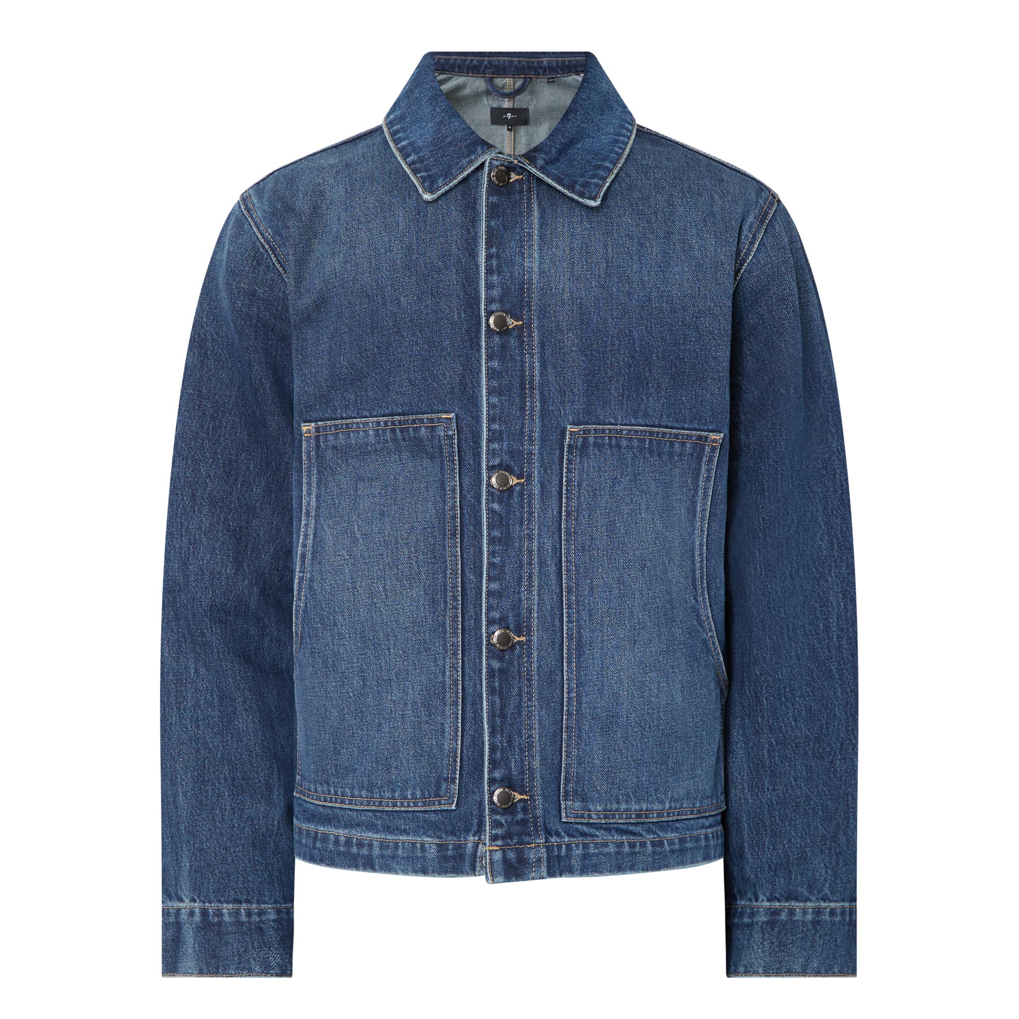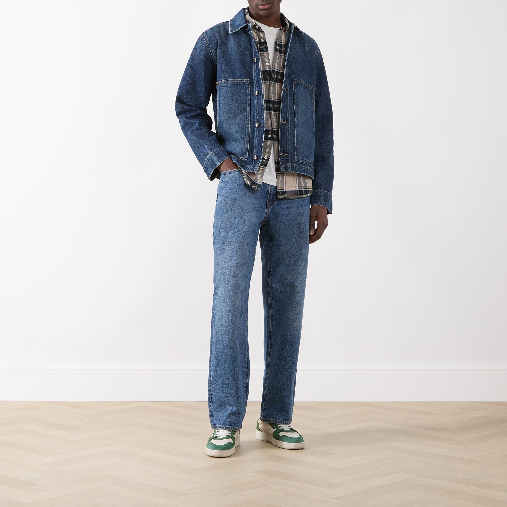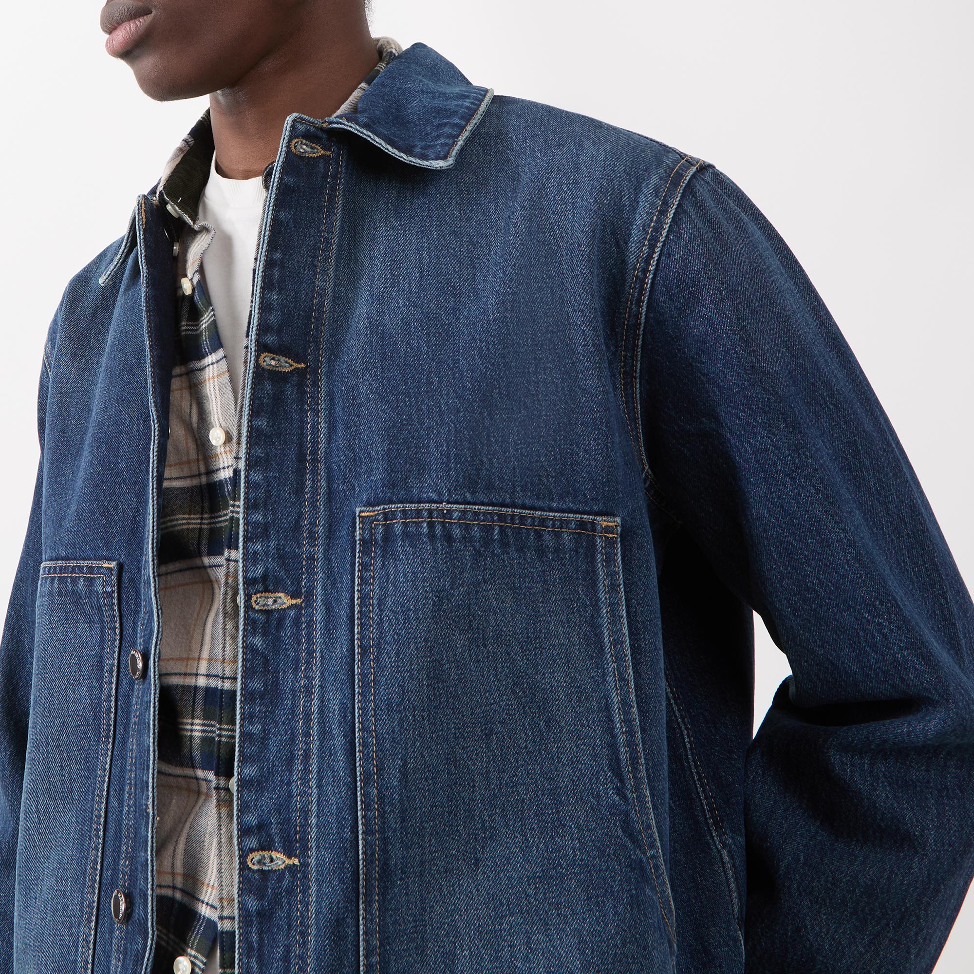 • Point collar, long sleeves, dropped shoulders, front button placket, contrast tobacco stitching, straight hemline, smooth denim finish