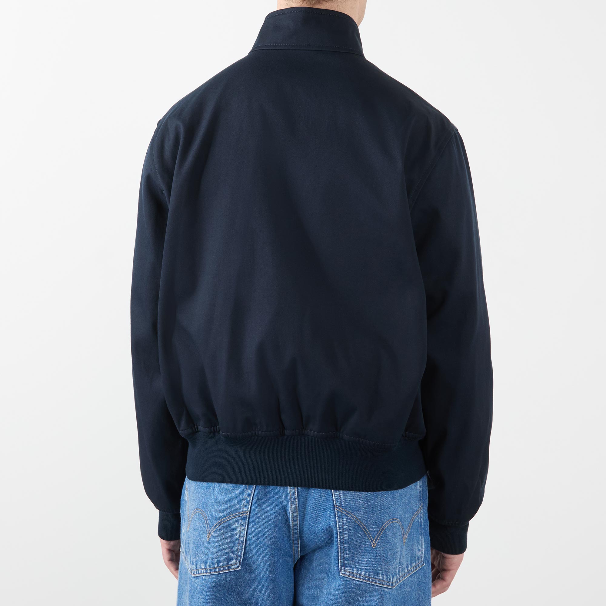 - Standing collar with snap button fastening, zip closure, ribbed waistband and cuffs, side entry pockets, classic blouson-style silhouette, embroidered logo detail