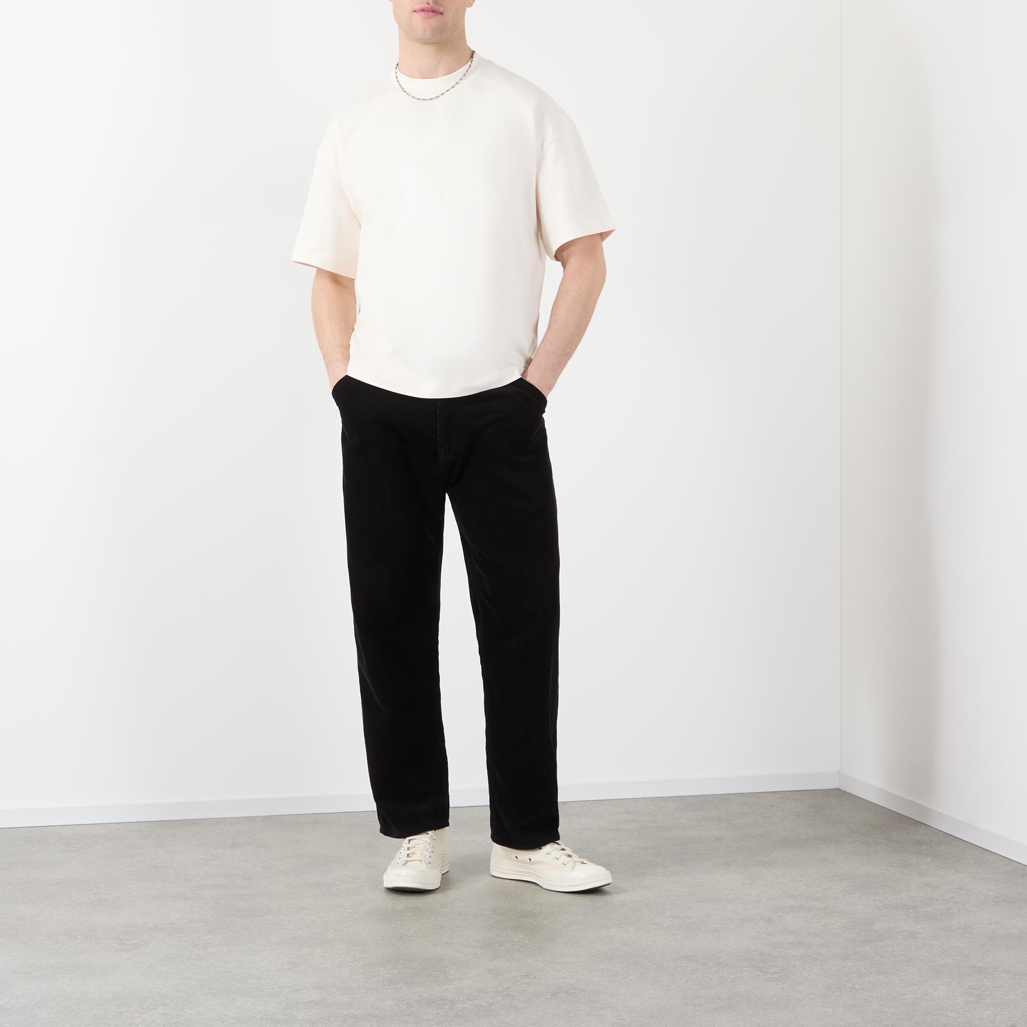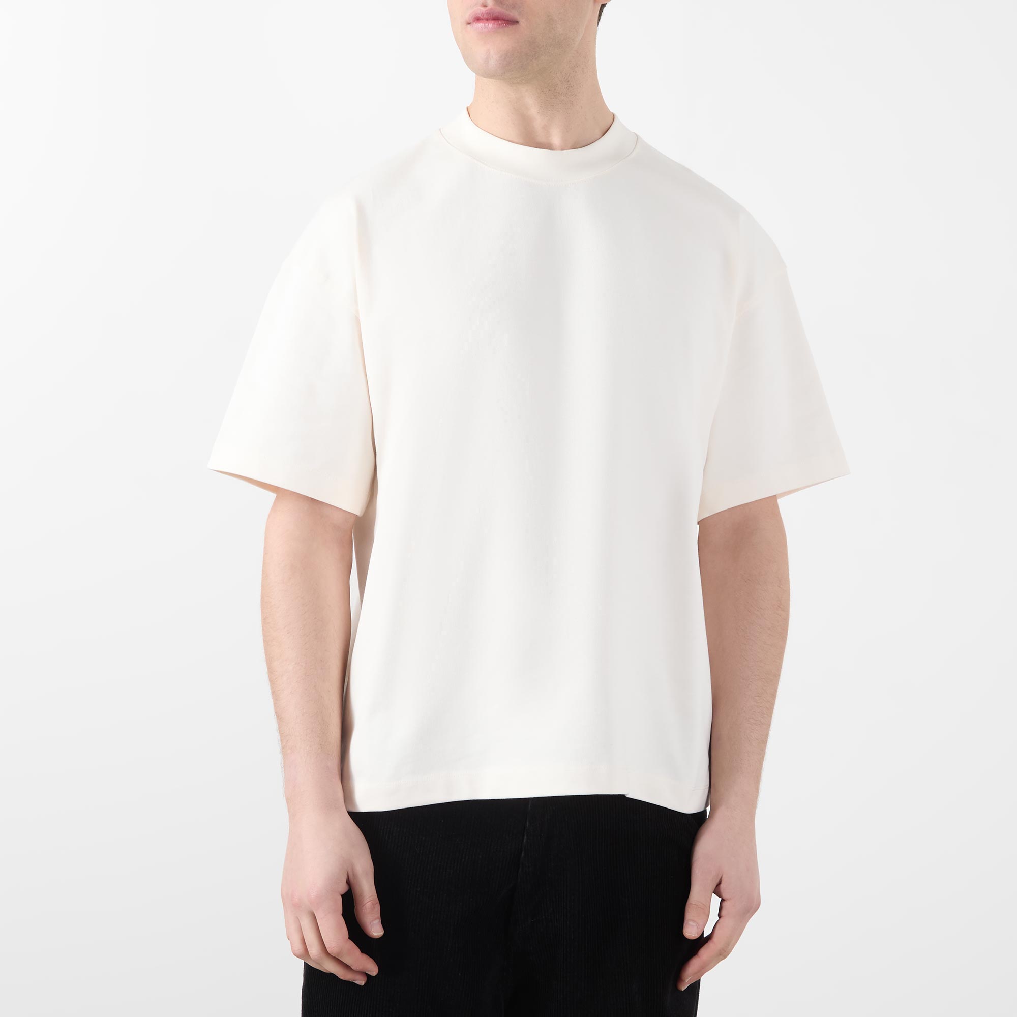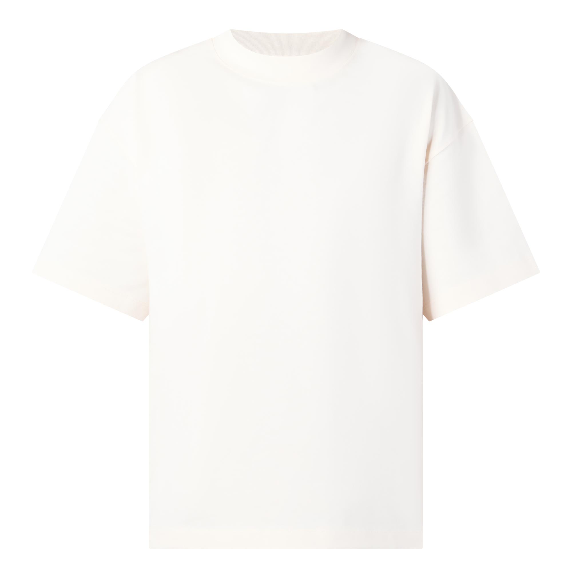 - Crew neckline, dropped shoulders, short sleeves, straight hem, tonal stitching, contrasting screen printed logo detail at the back, heavyweight finish