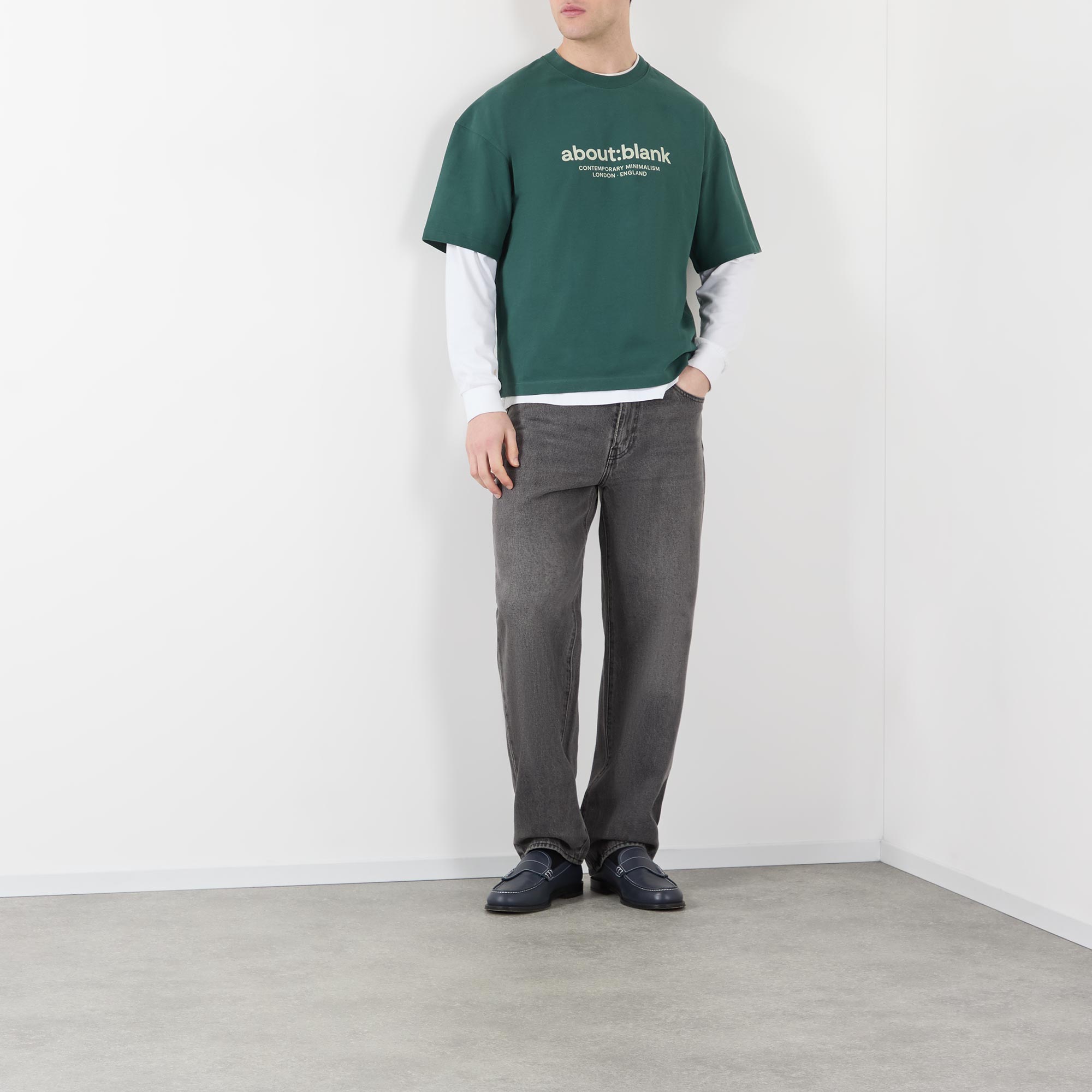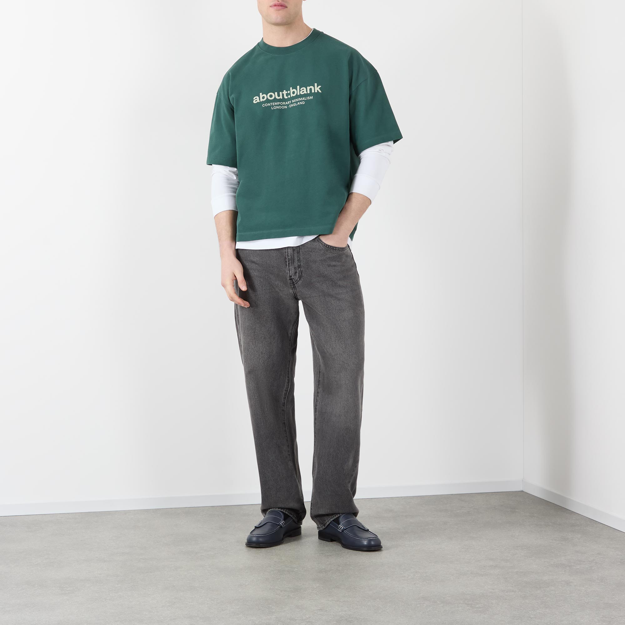 • Crew neckline, dropped shoulders, short sleeves, straight hem, tonal stitching, contrasting logo print, enzyme wash, heavyweight finish