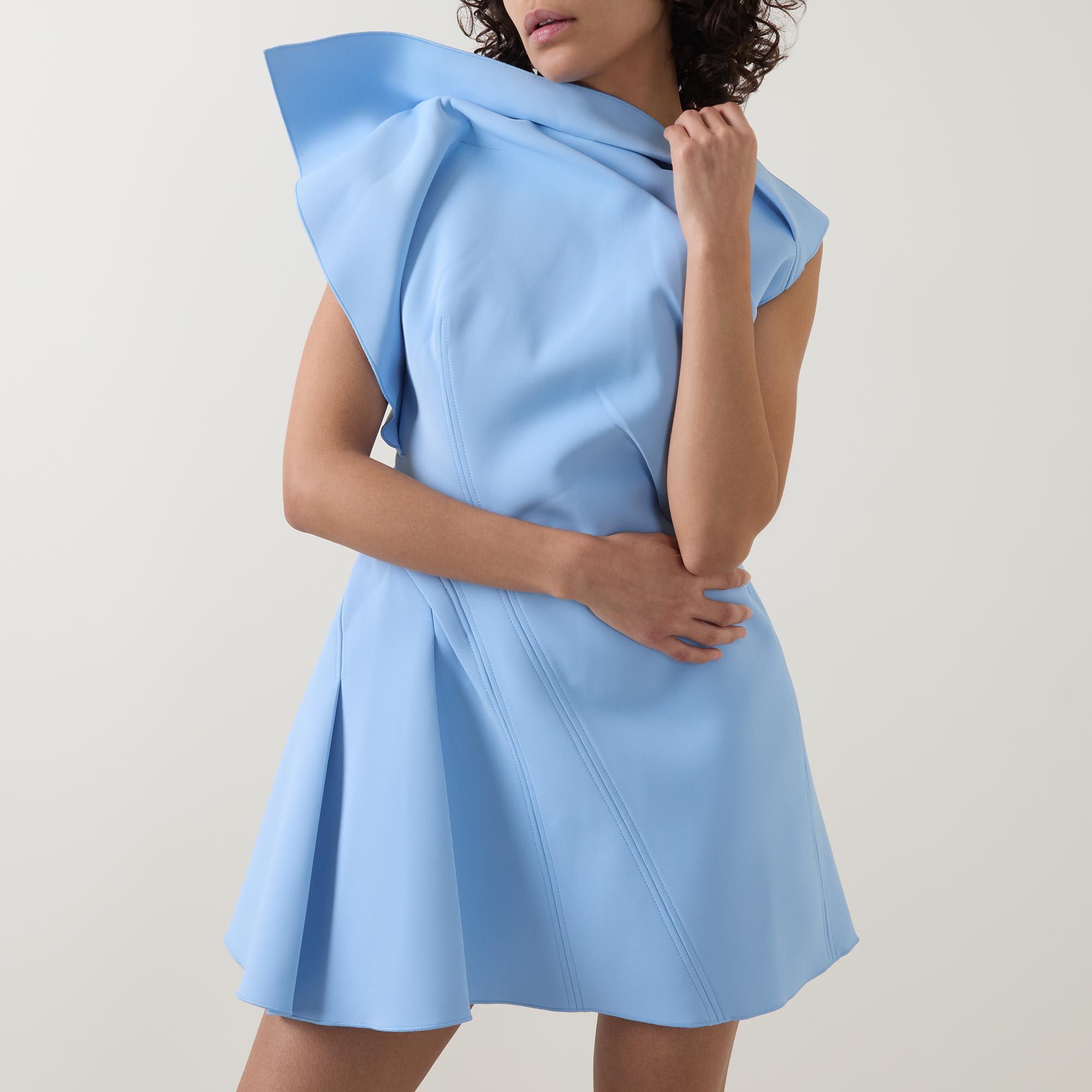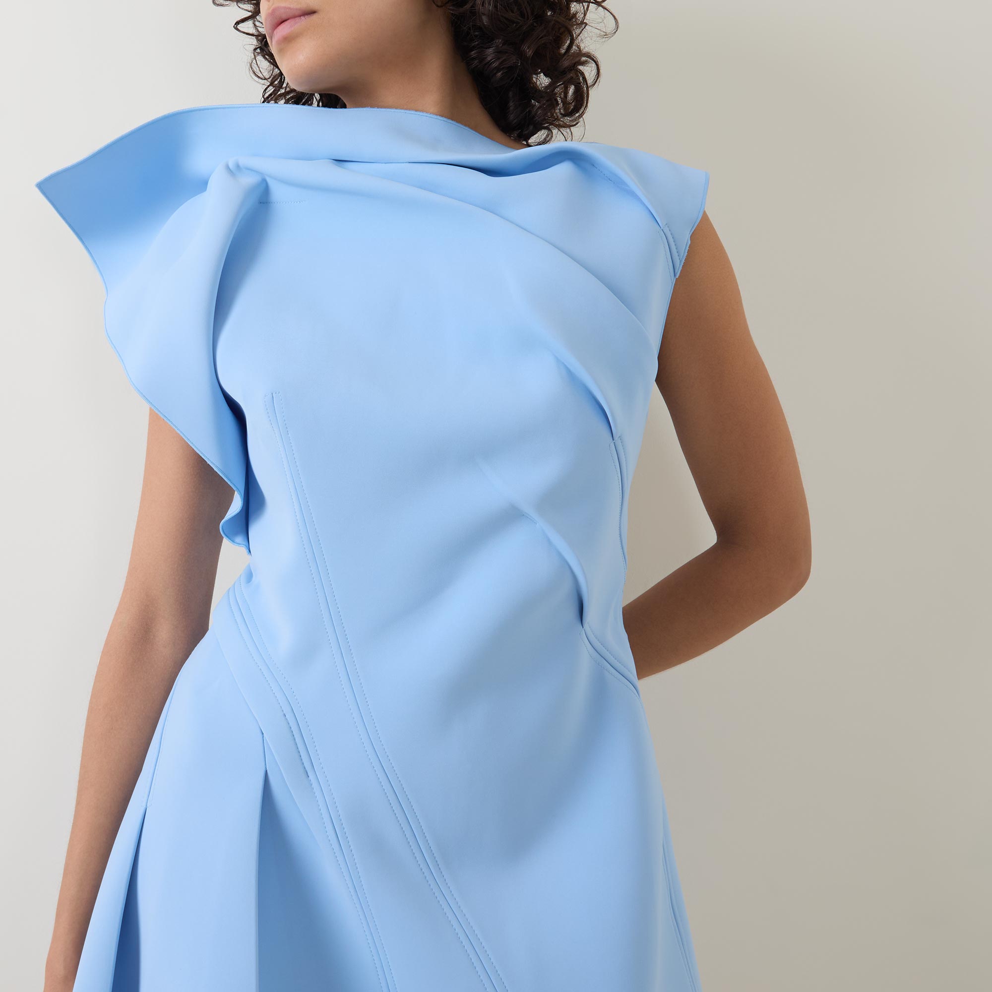 • Bonded woven construction, A-line skirt, statement shoulder detailing, centre back invisible zip, opaque lined bodice