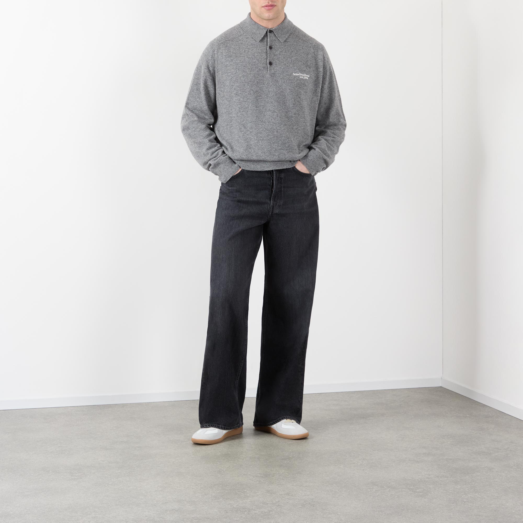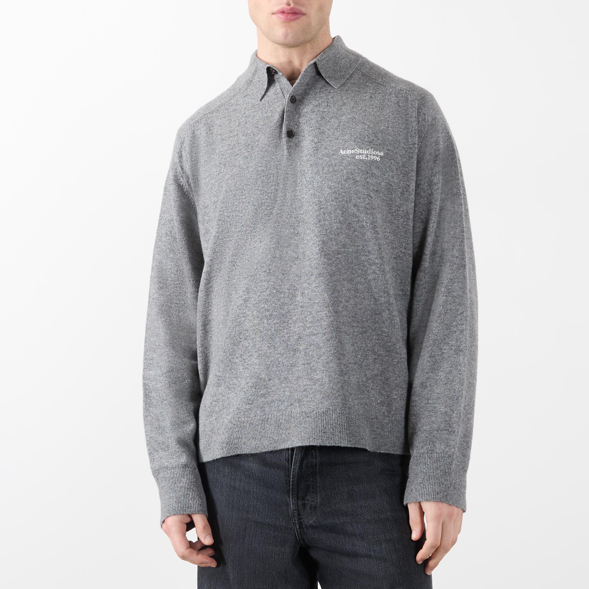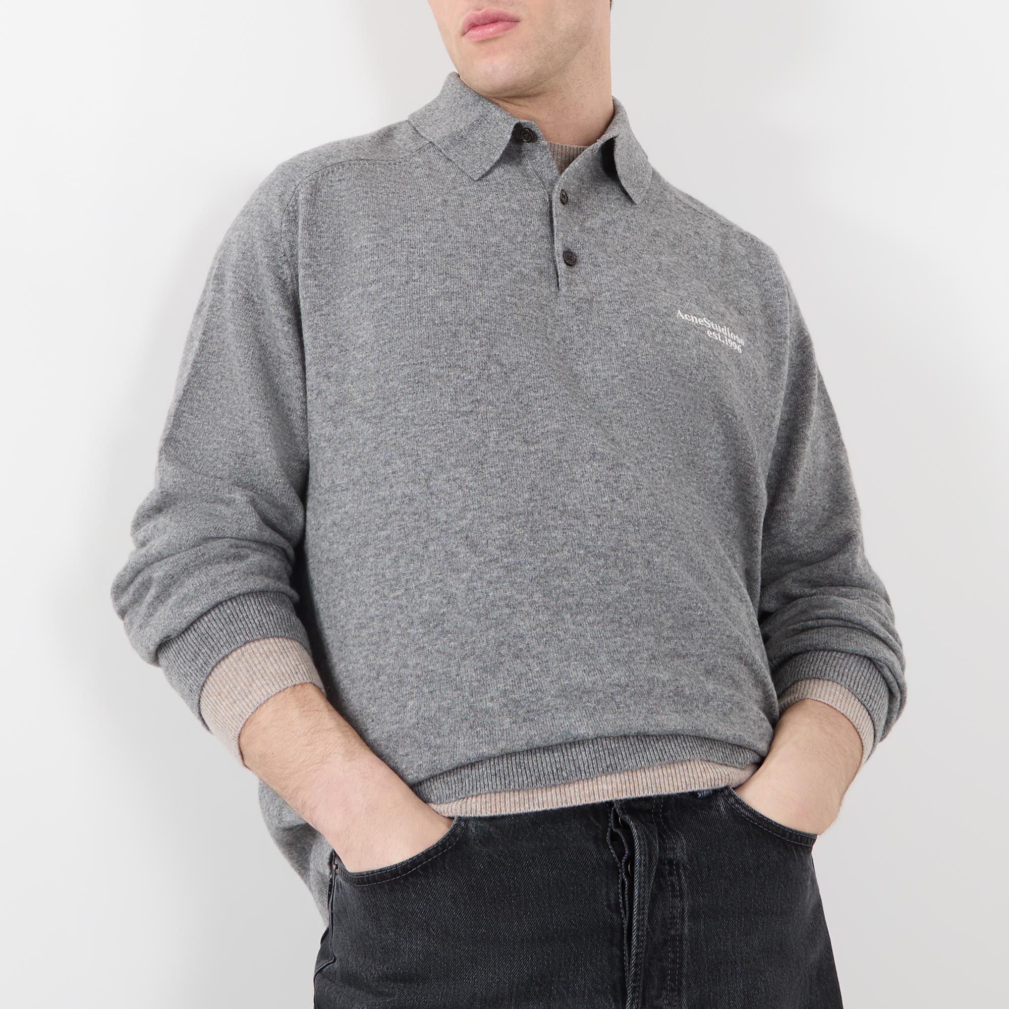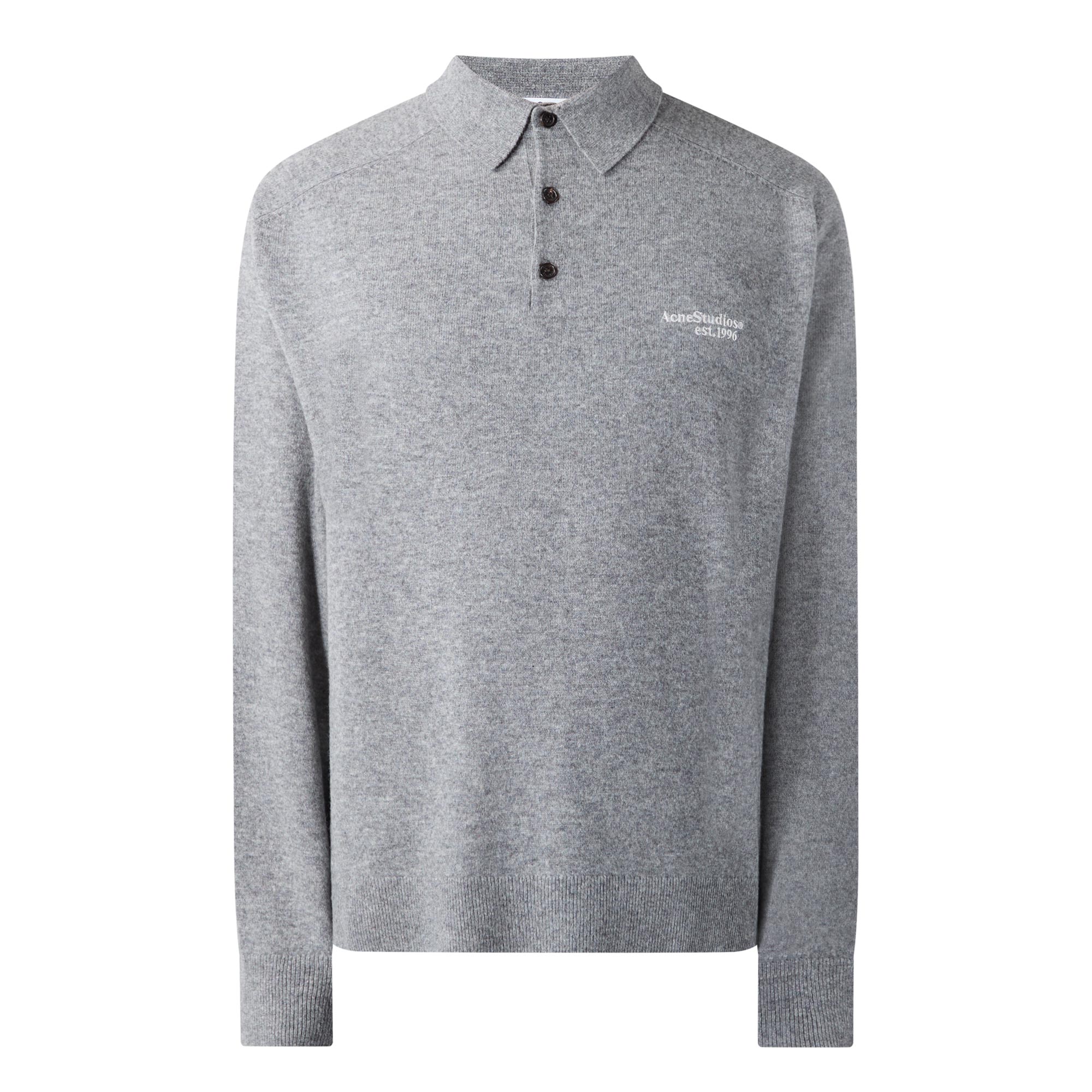 - Polo collar, three button placket, dropped shoulders, long sleeves, straight hem, ribbed trims, contrast logo embroidery on the chest, knit construction, soft finish