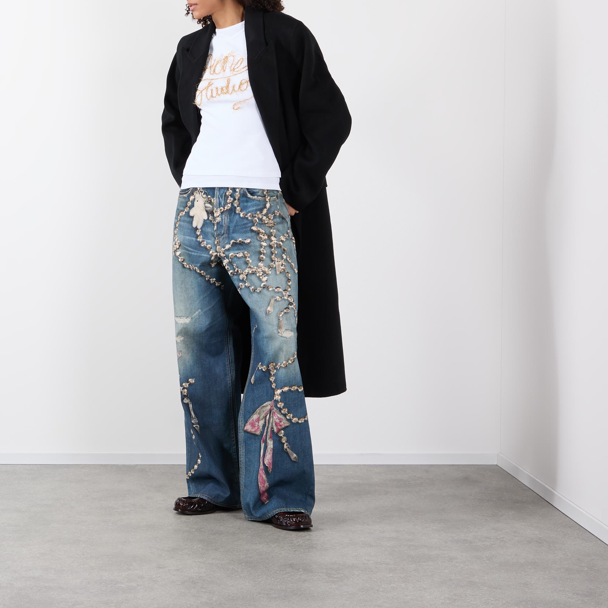 - Composition and Care: Main: 97% cotton, 3% elastane. Embroidery: 55% nylon, 45% metallic fibre. Machine wash