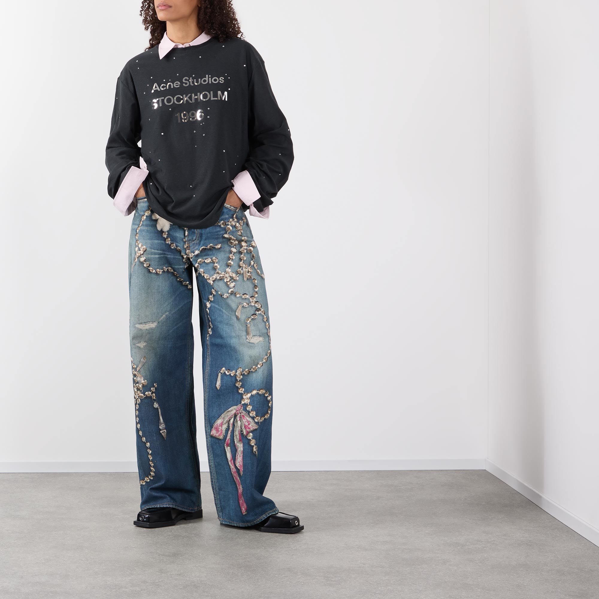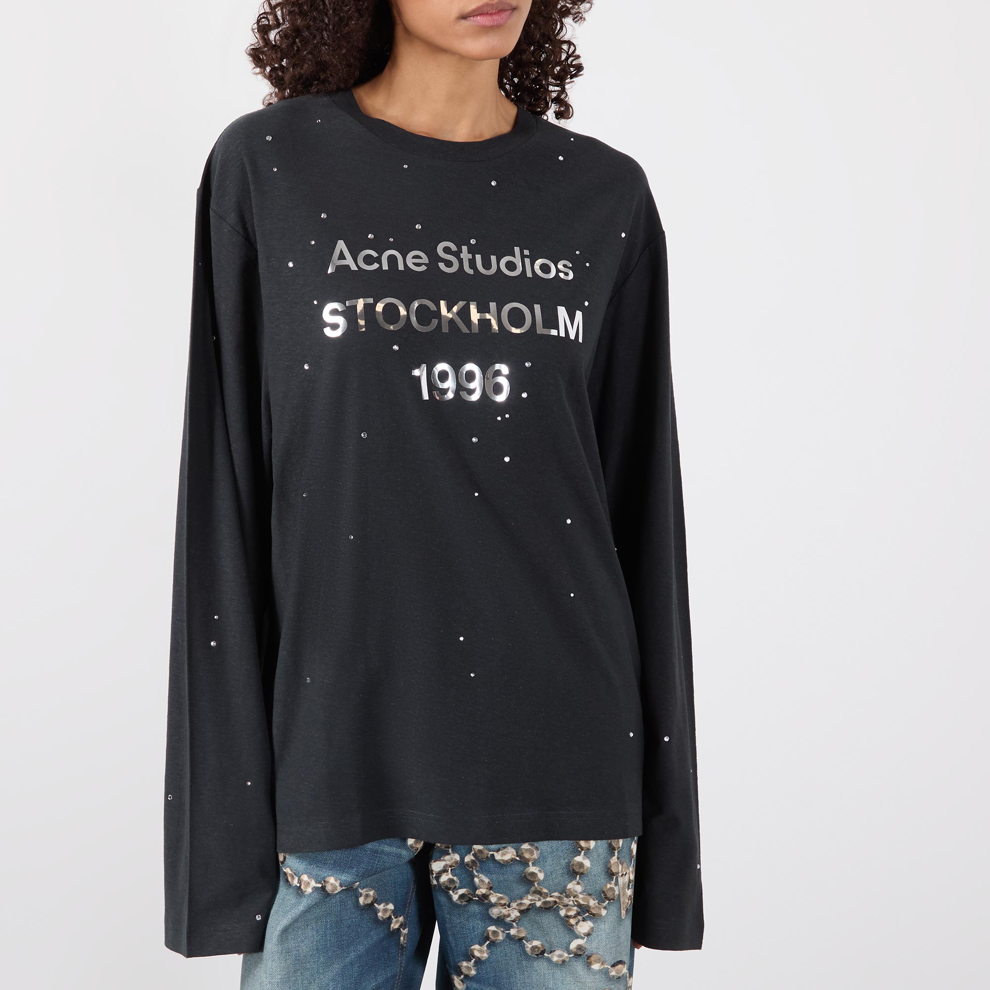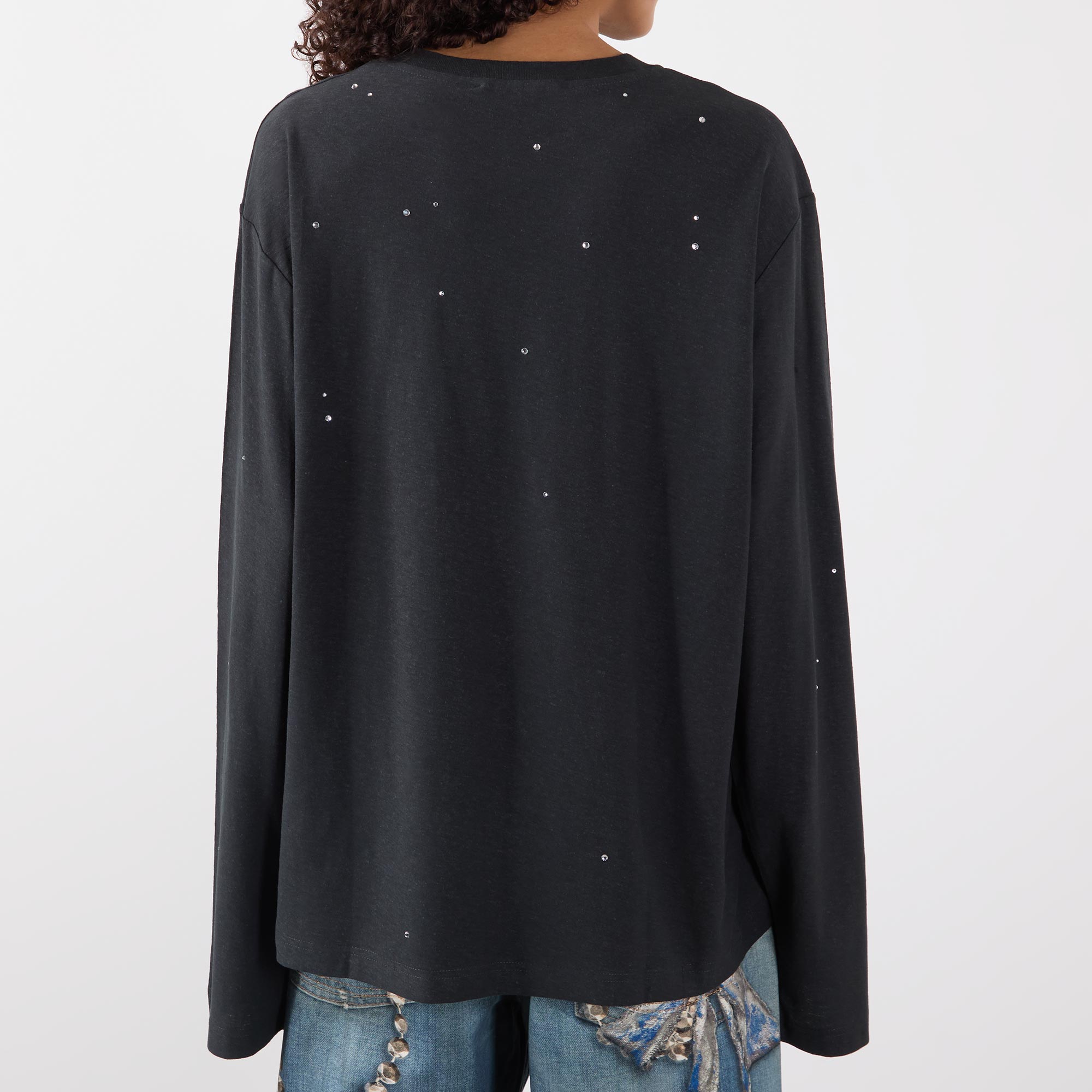 - Crew neckline, dropped shoulders, long sleeves, straight hem, logo lettering on the front, embellished detailing throughout