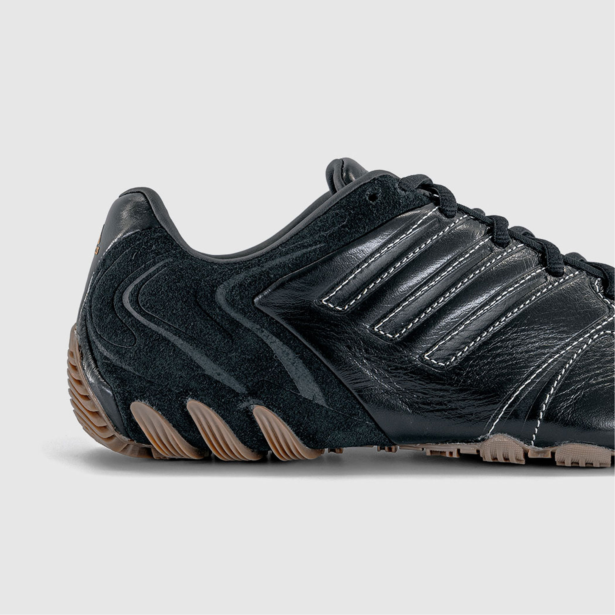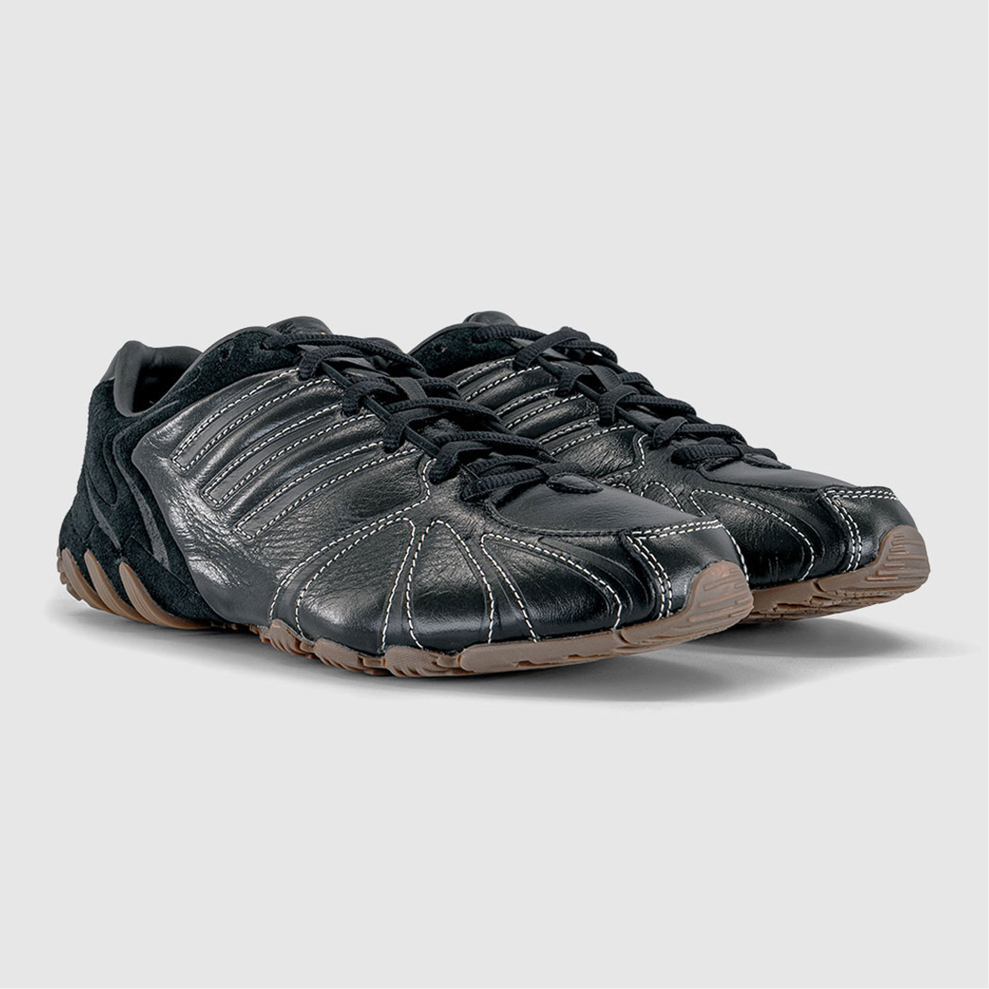- Leather upper, low-profile rubber outsole, lightweight, lace-up fastening