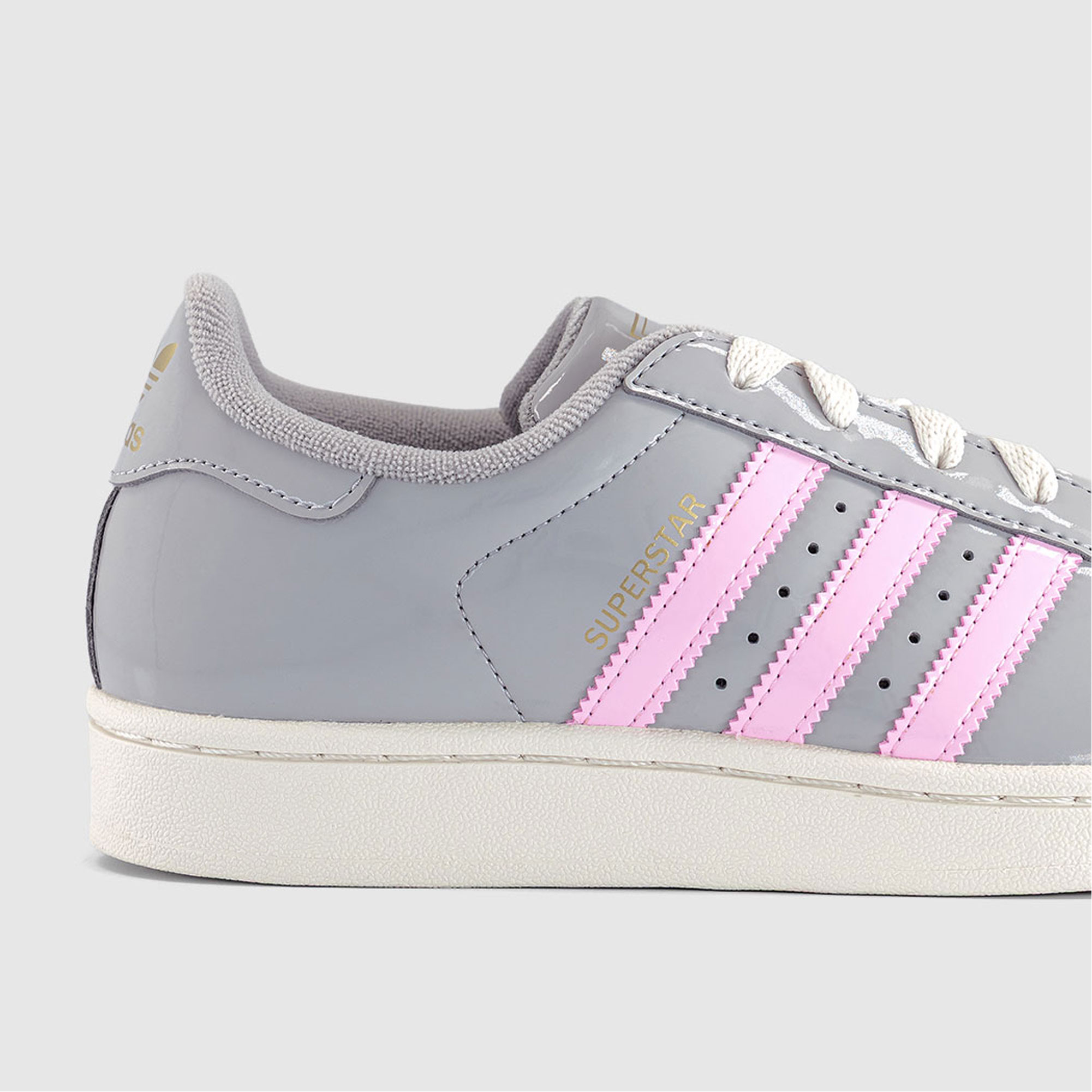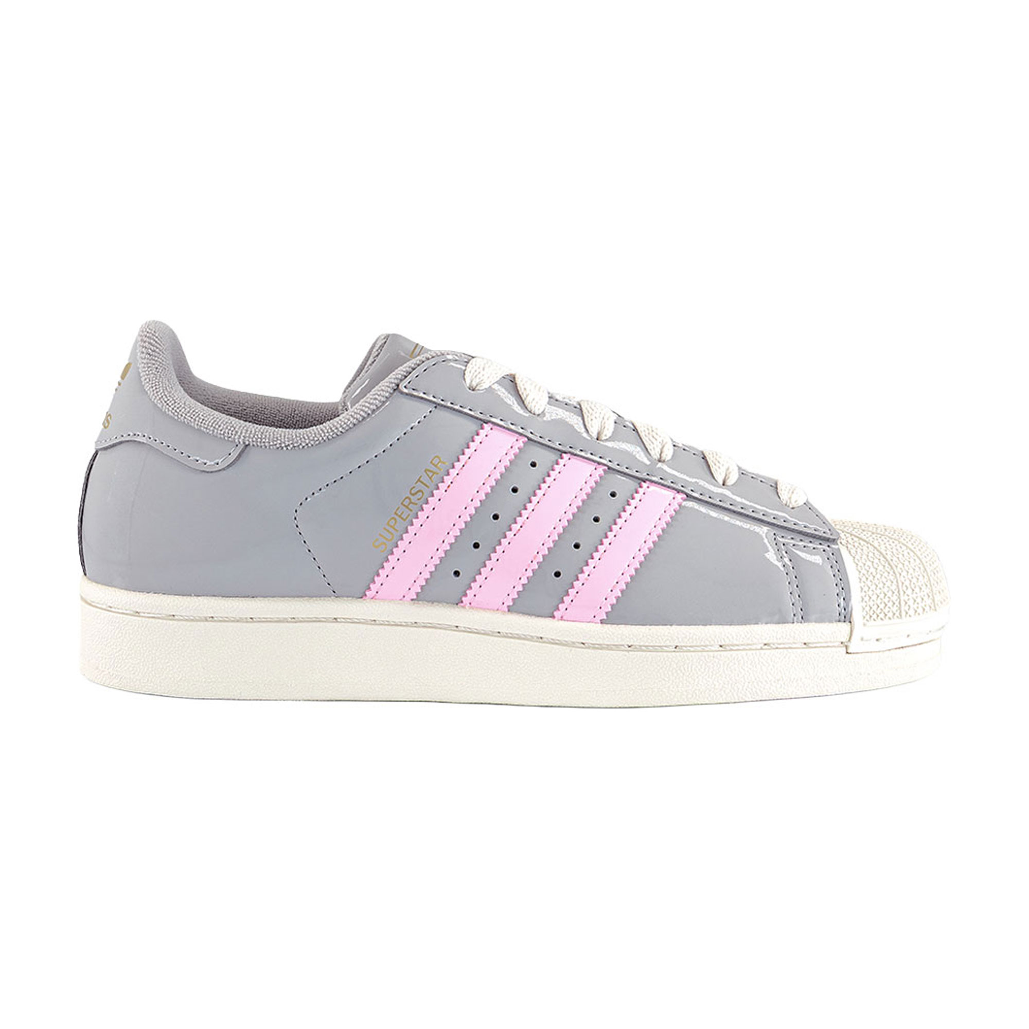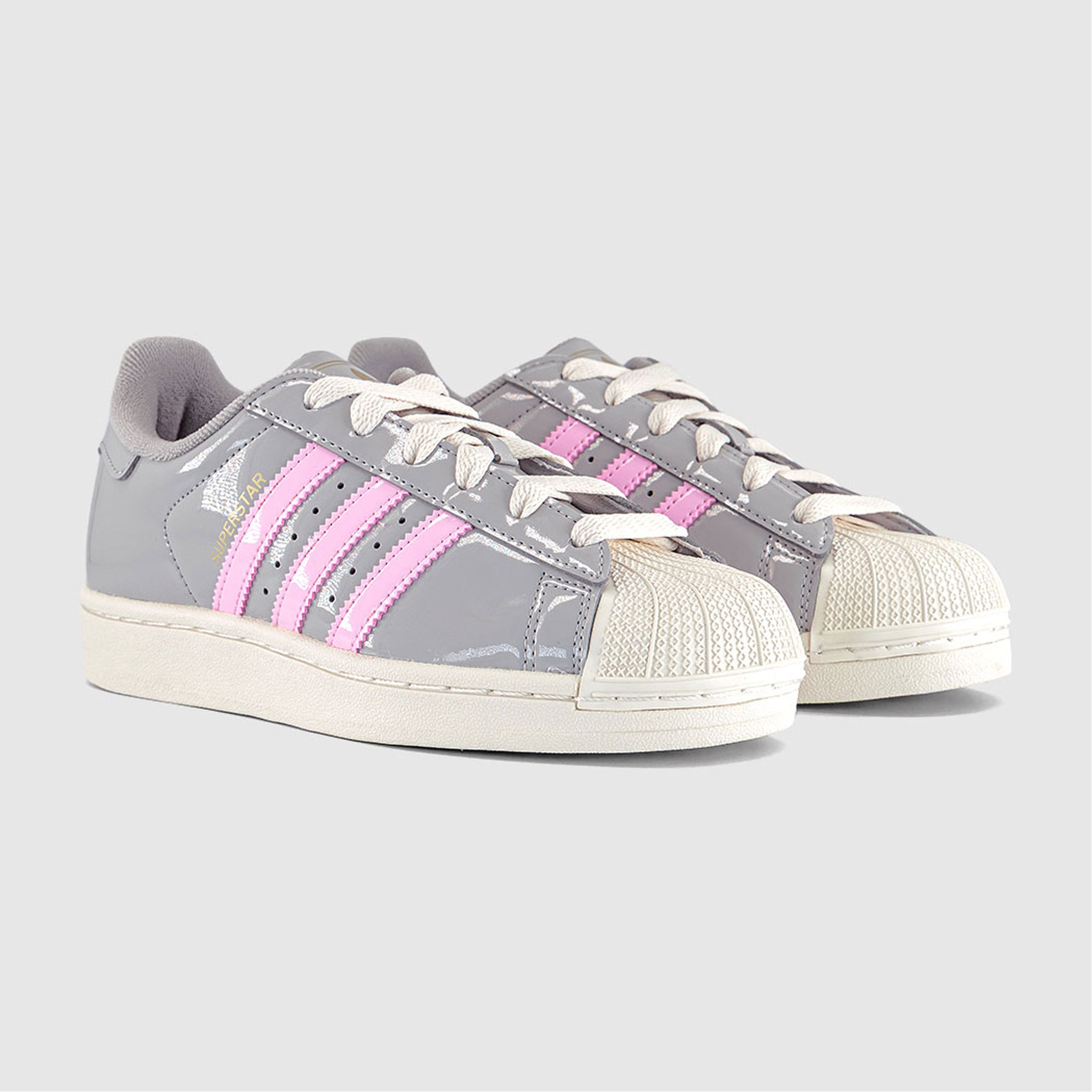 • Lace-up fastening, patent leather upper, contrasting accents, distinctive shell toe, padded tongue, grippy sole