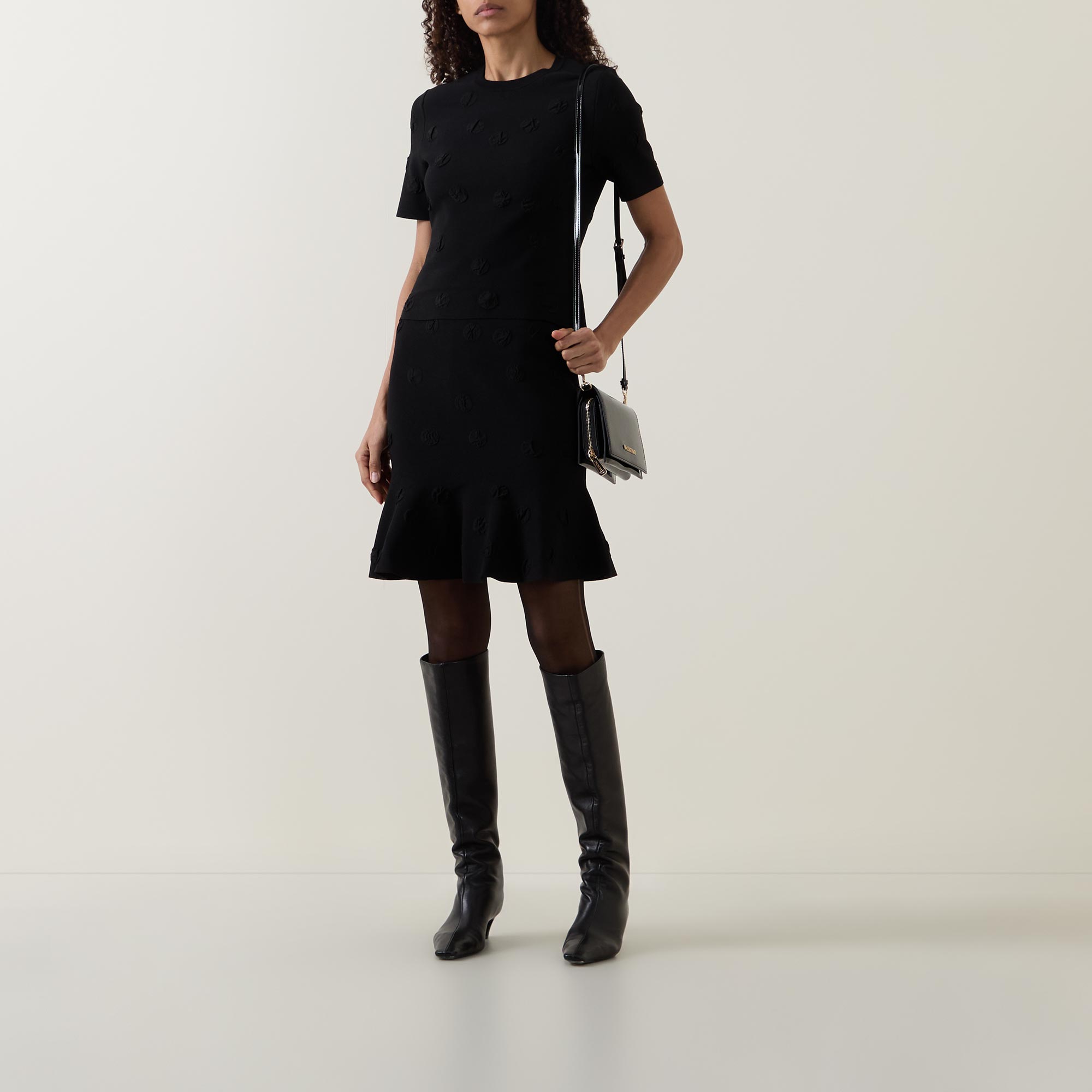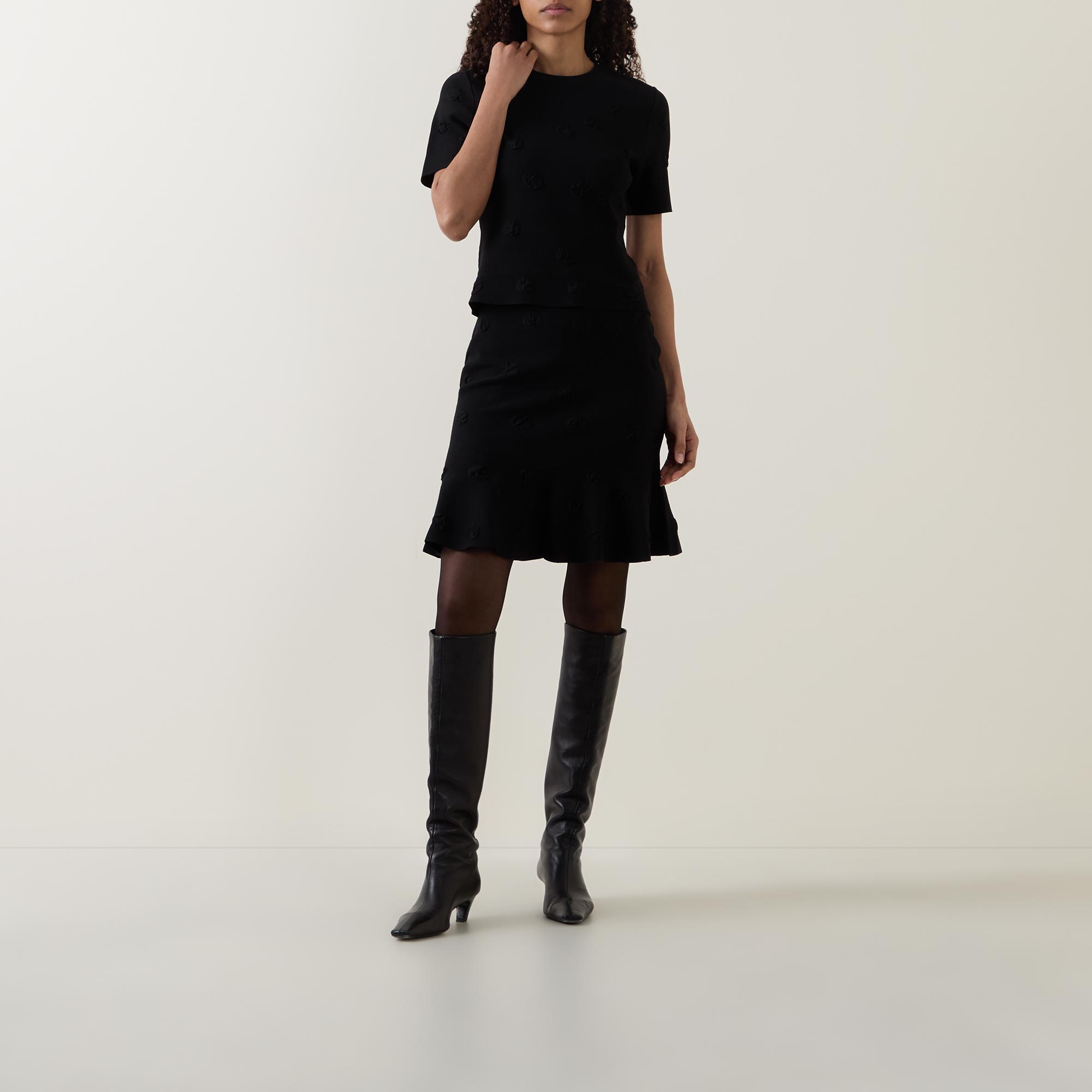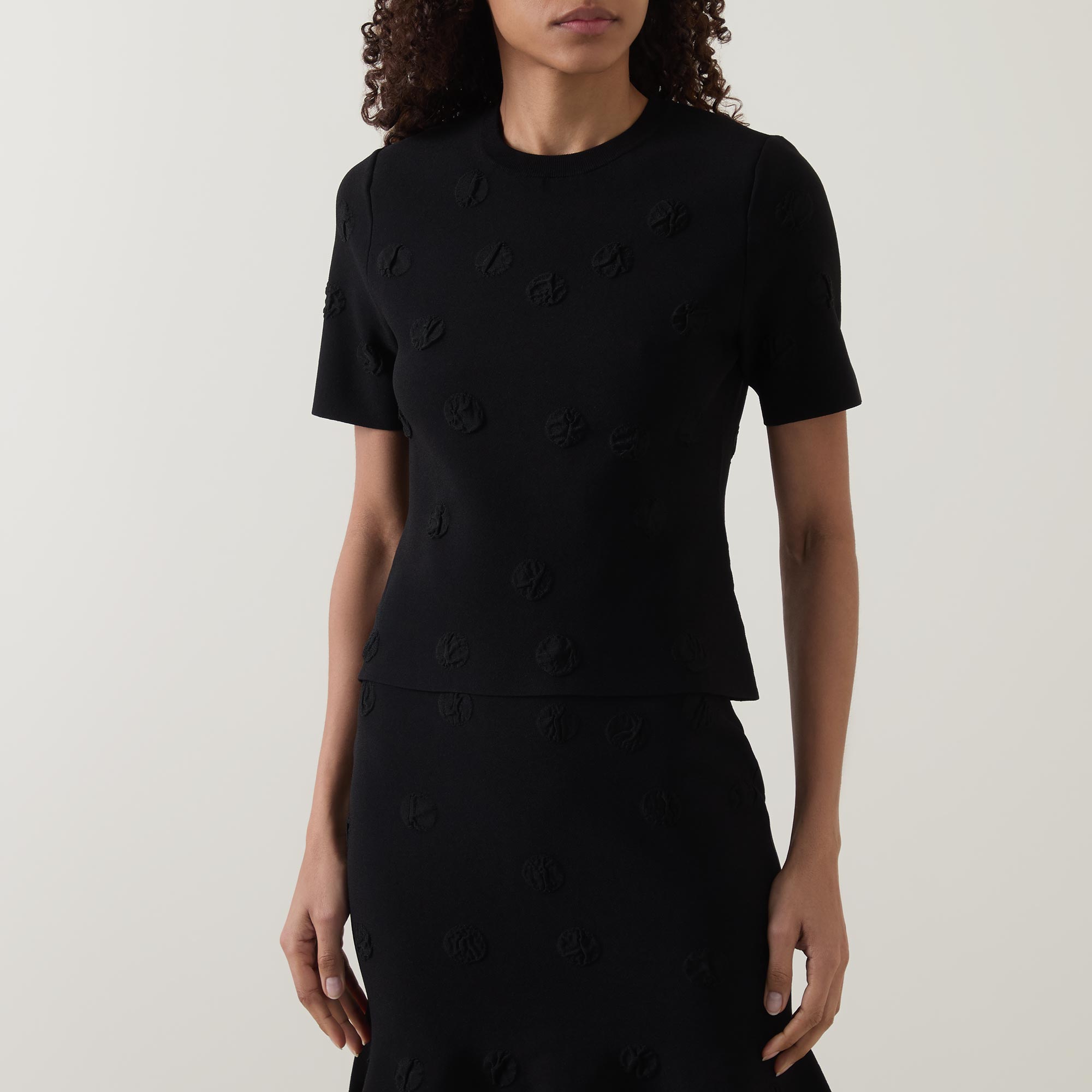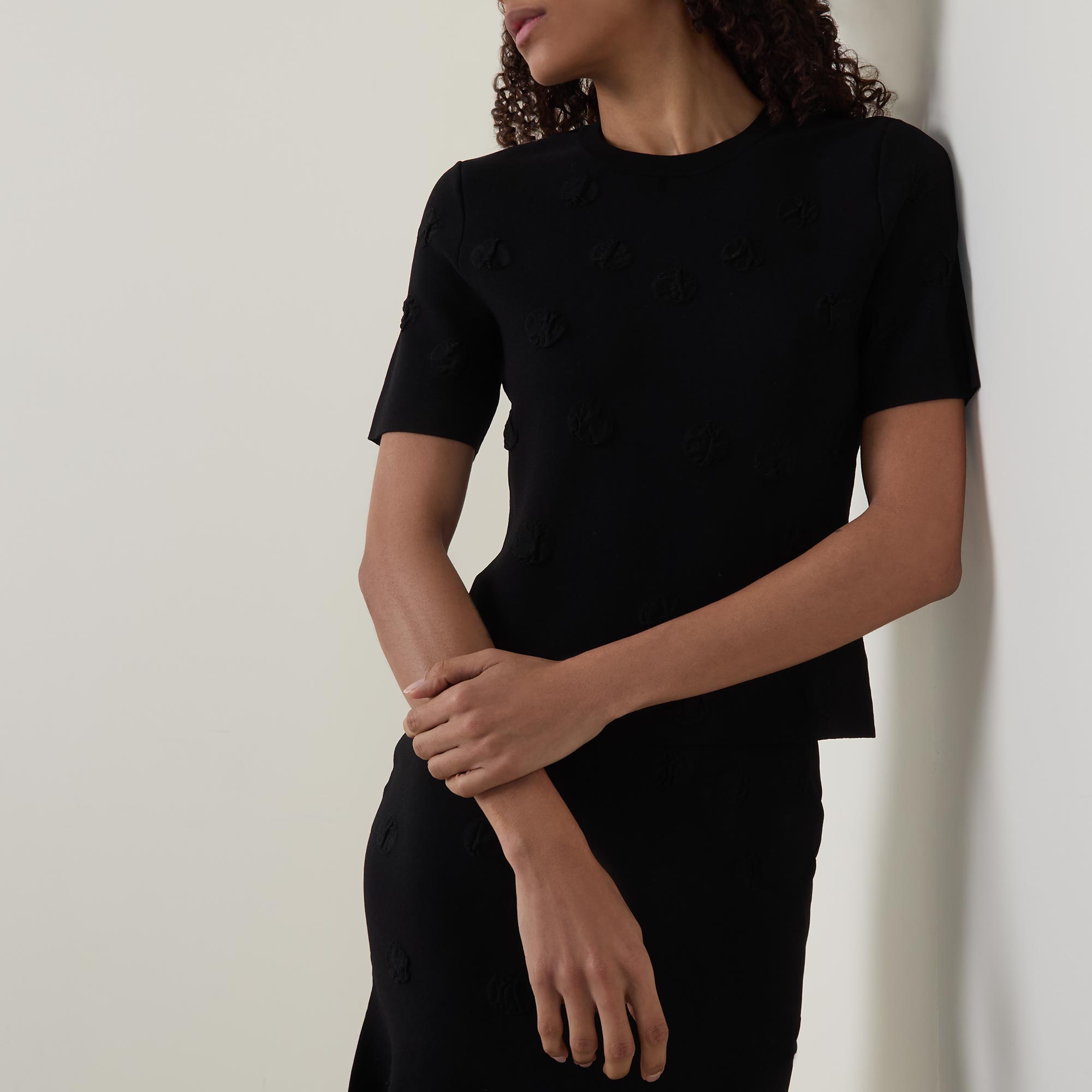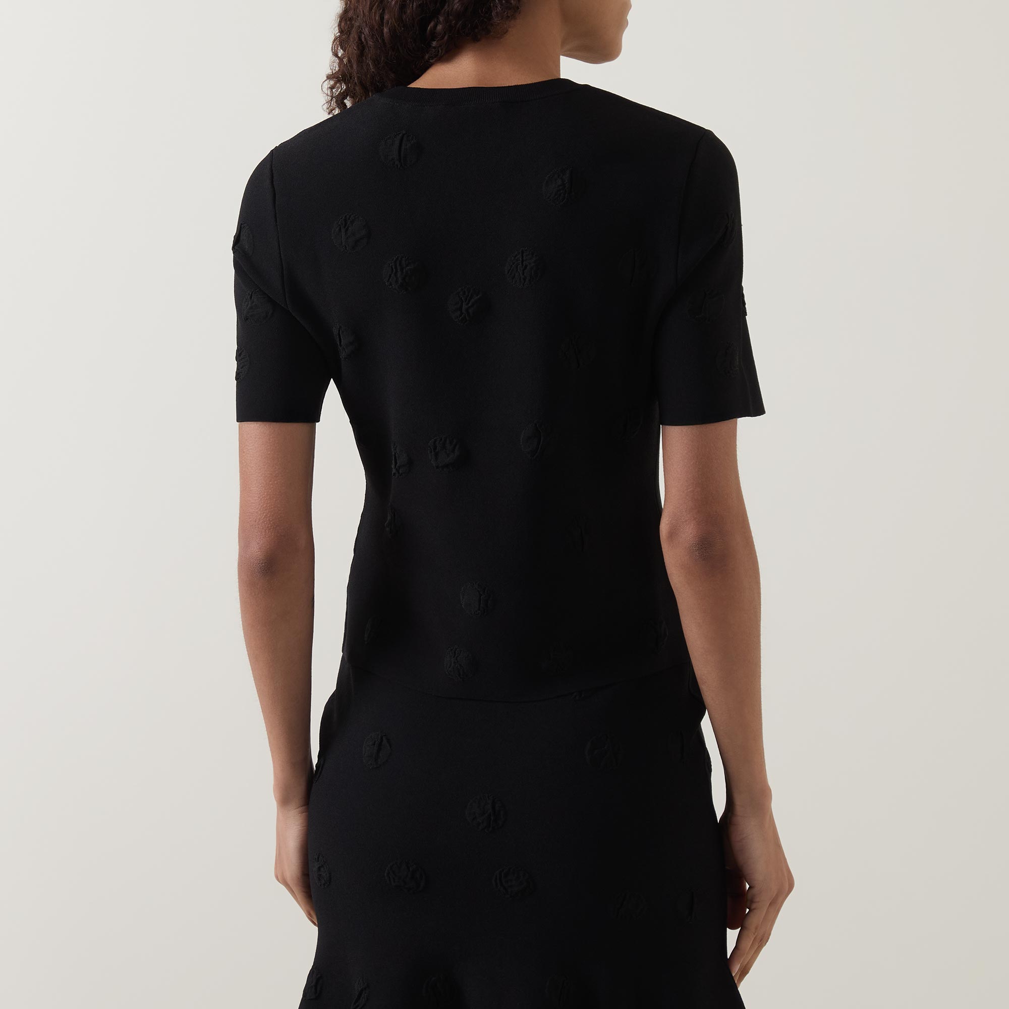 - Crew neckline, short sleeves, tonal dotted design, straight hemline, fine-knit finish