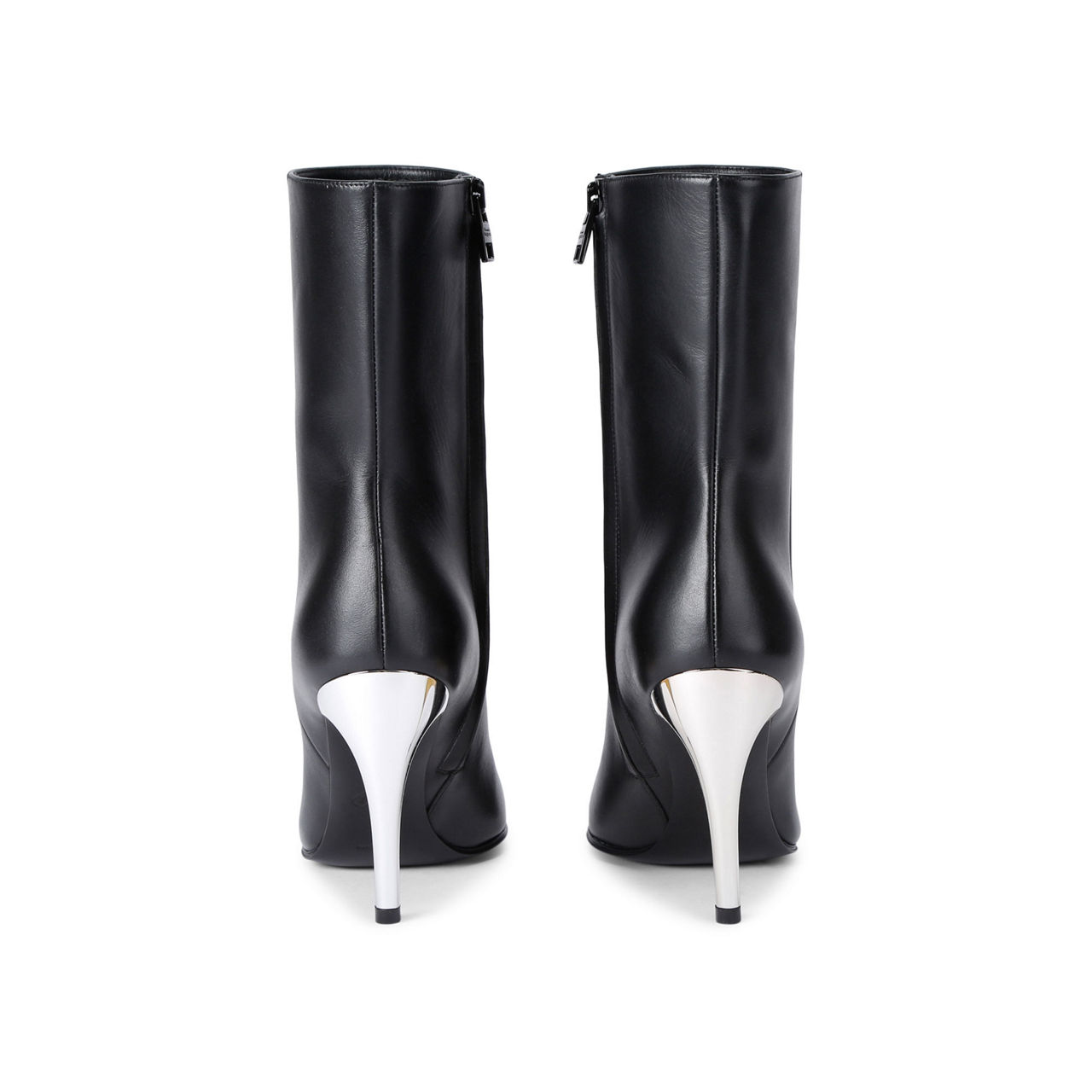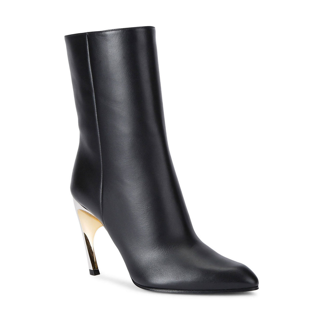 - Signature silver and gold-tone lacquered Armadillo heel, almond toe silhouette, inside side zip closure