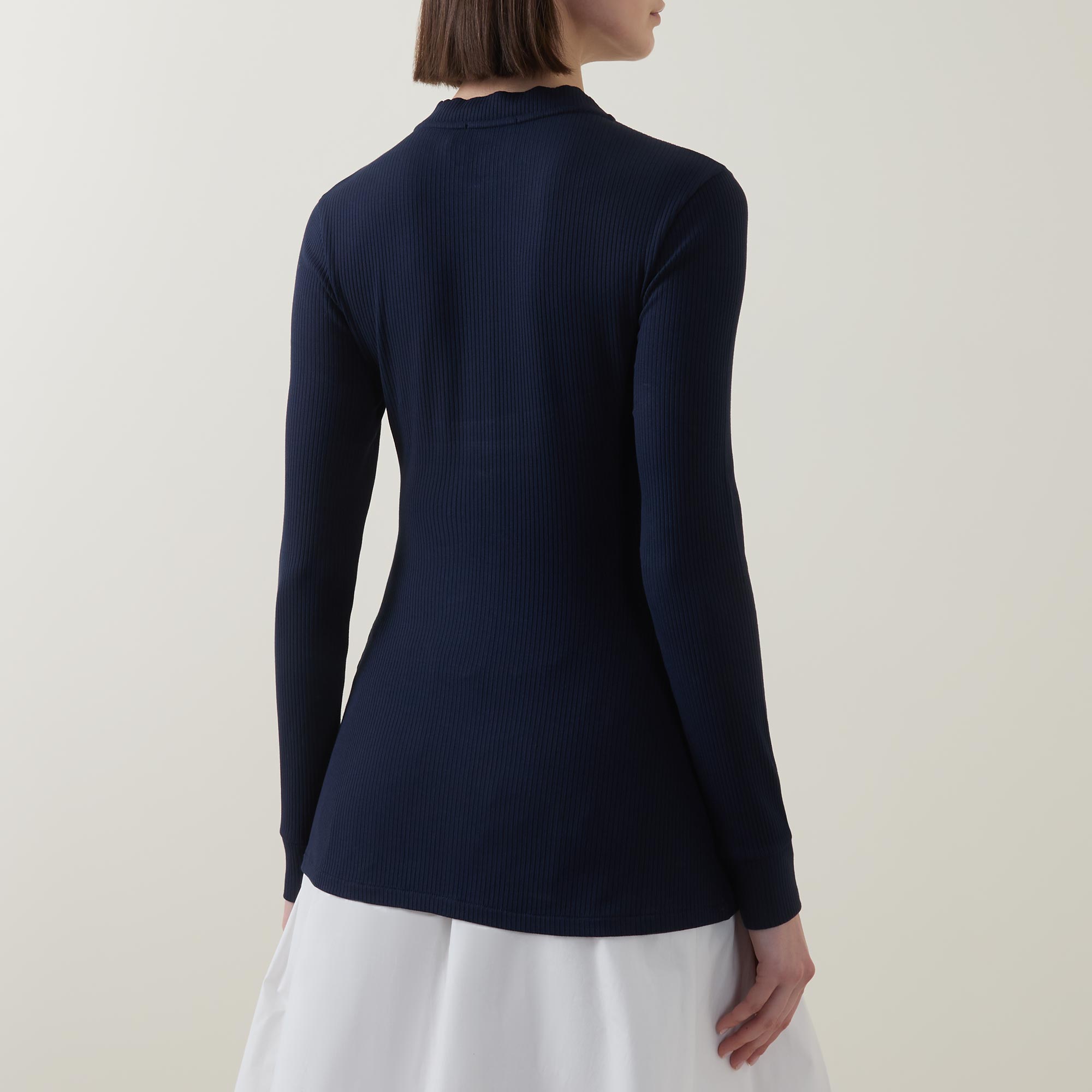 - Round neck, long sleeves, ribbed knit, split waist, button fastenings