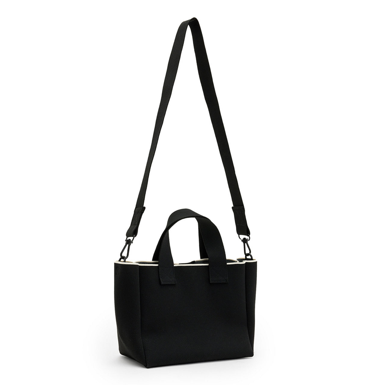 - Dual strap option, printed logo details, top carry handles, removable crossbody strap, snap fastening