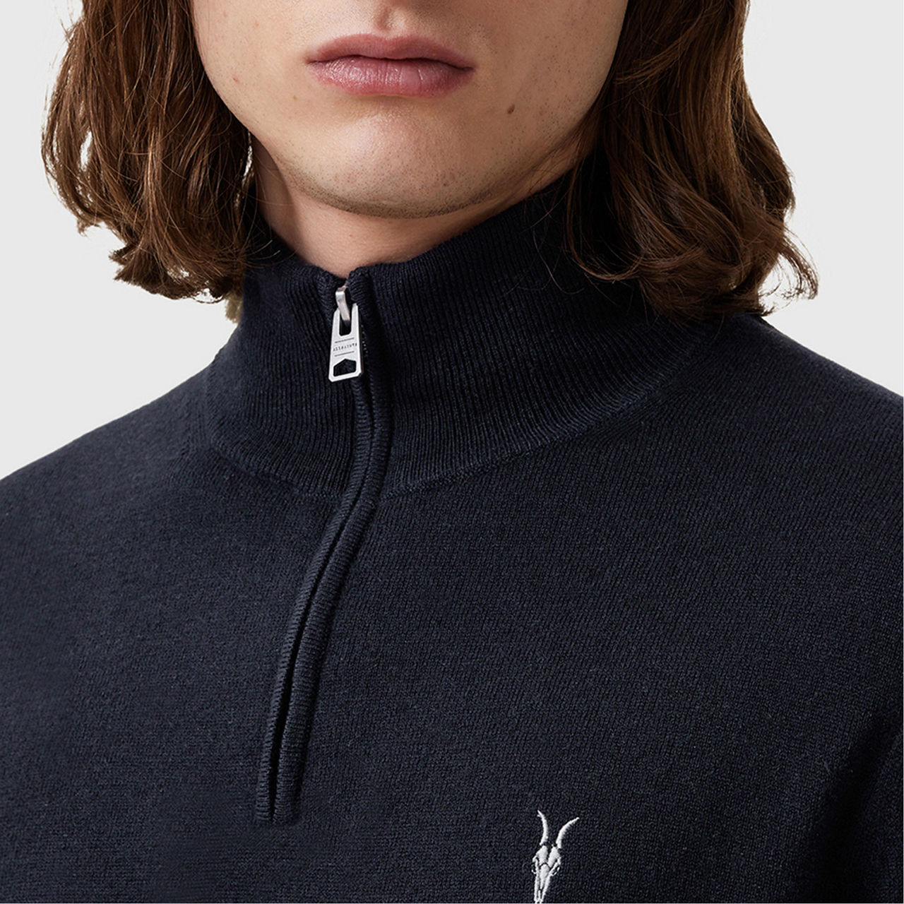 - Knitted, zip funnel neckline, wool blend fabric, Ramskull logo embroidery, pull-on style