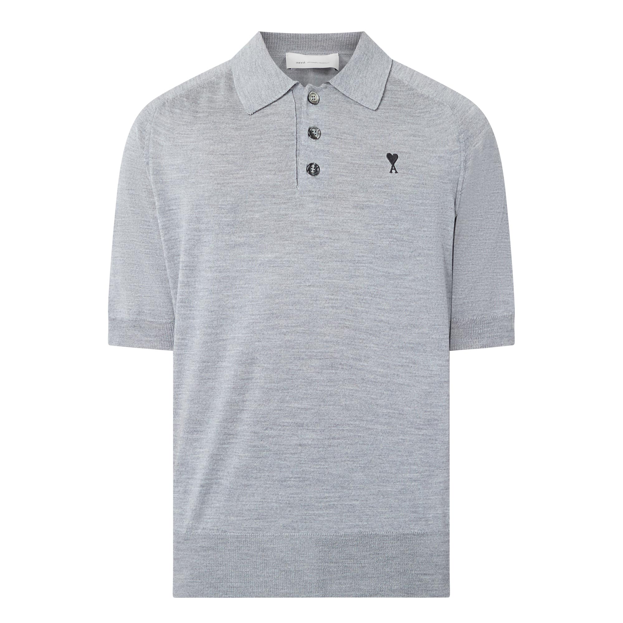 AMI PARIS Quota Heart Logo Knitted Polo Shirt