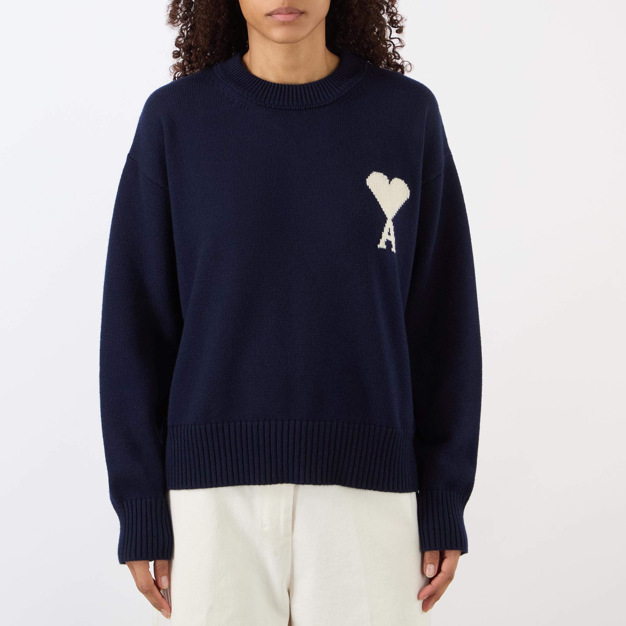 - Crew neckline, long sleeves, dropped shoulders, ribbed trims, knit structure, intarsia knitted Ami de Coeur logo detail on the chest