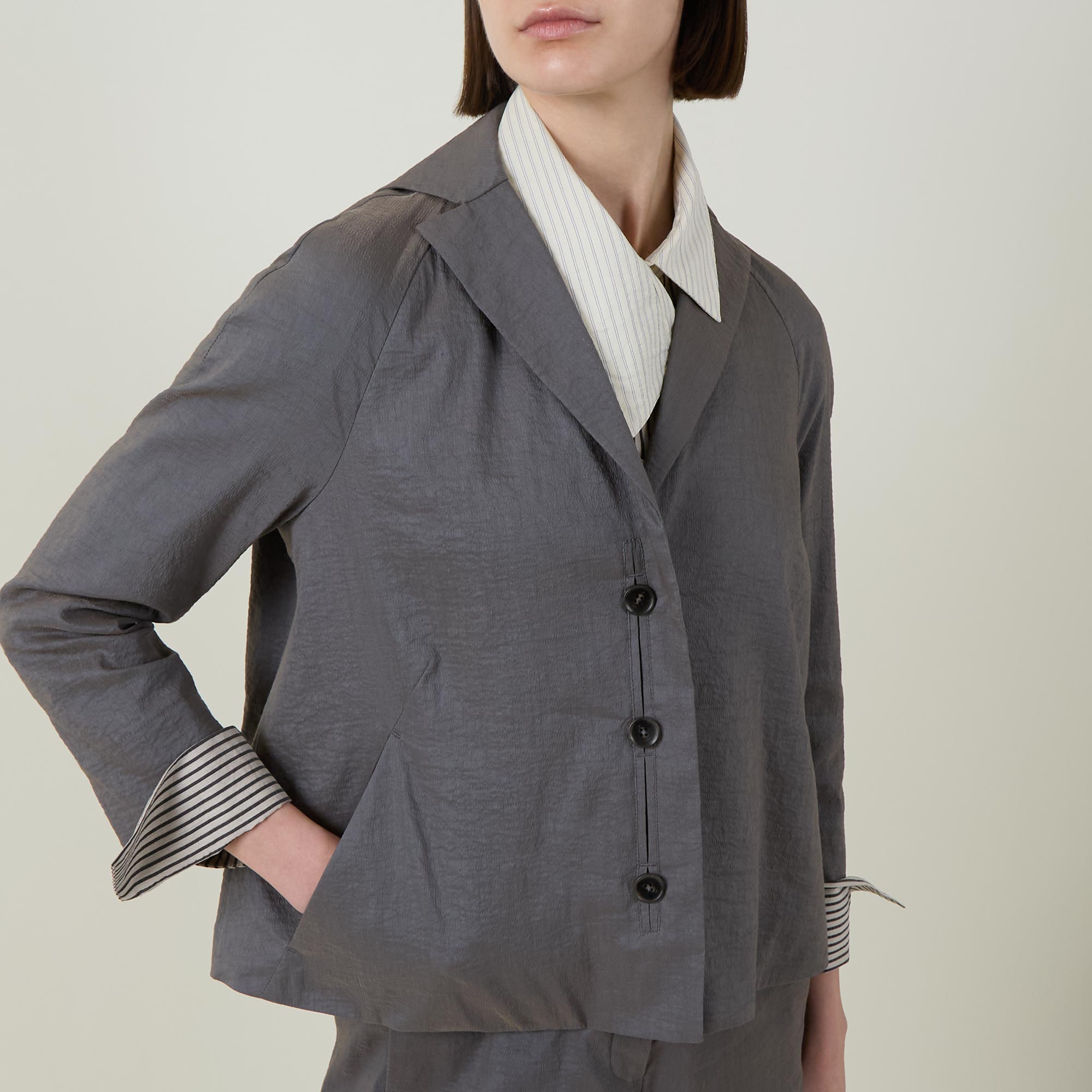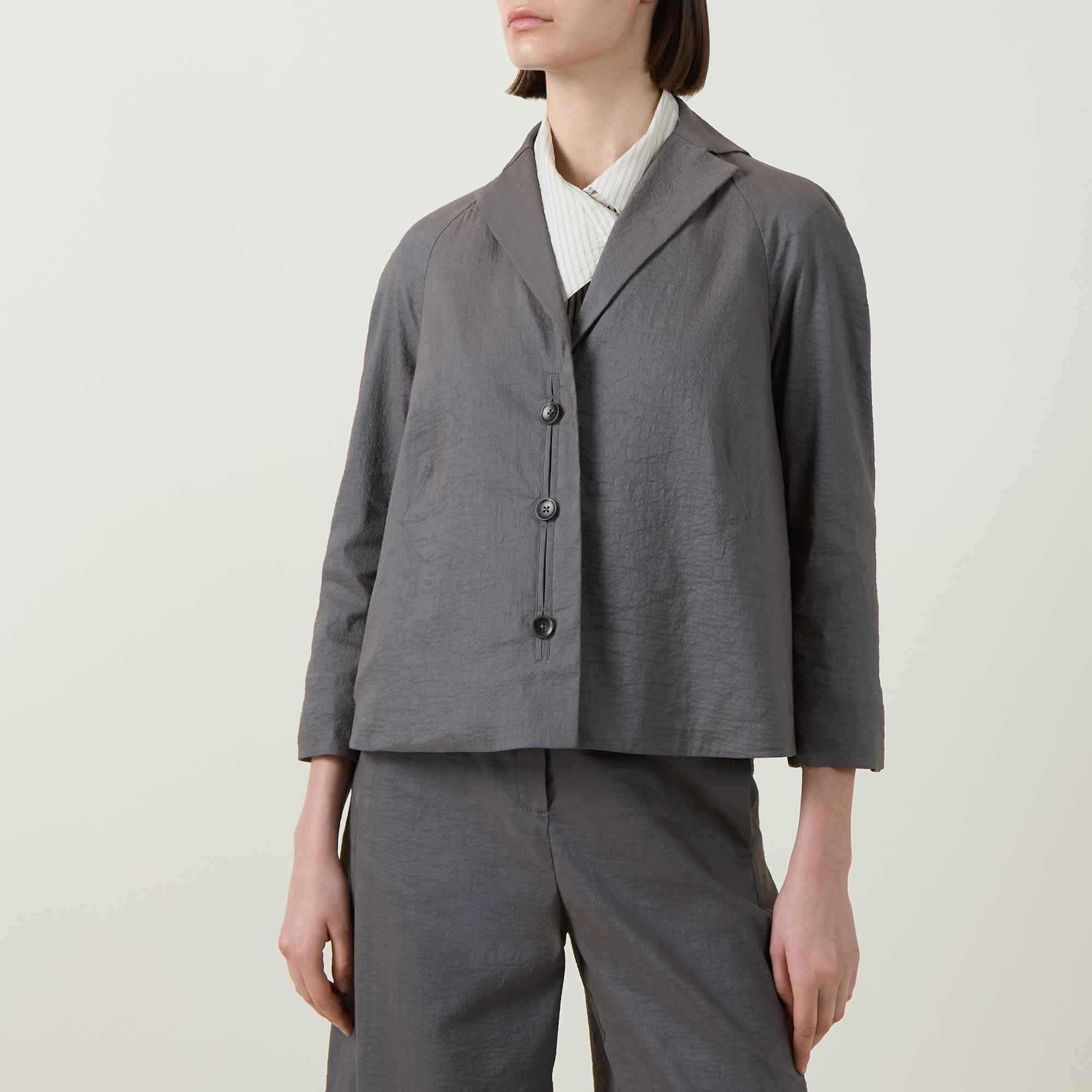 - Single breasted, three quarter length sleeves, front button fastening, straight hem, cropped length, textured finish
