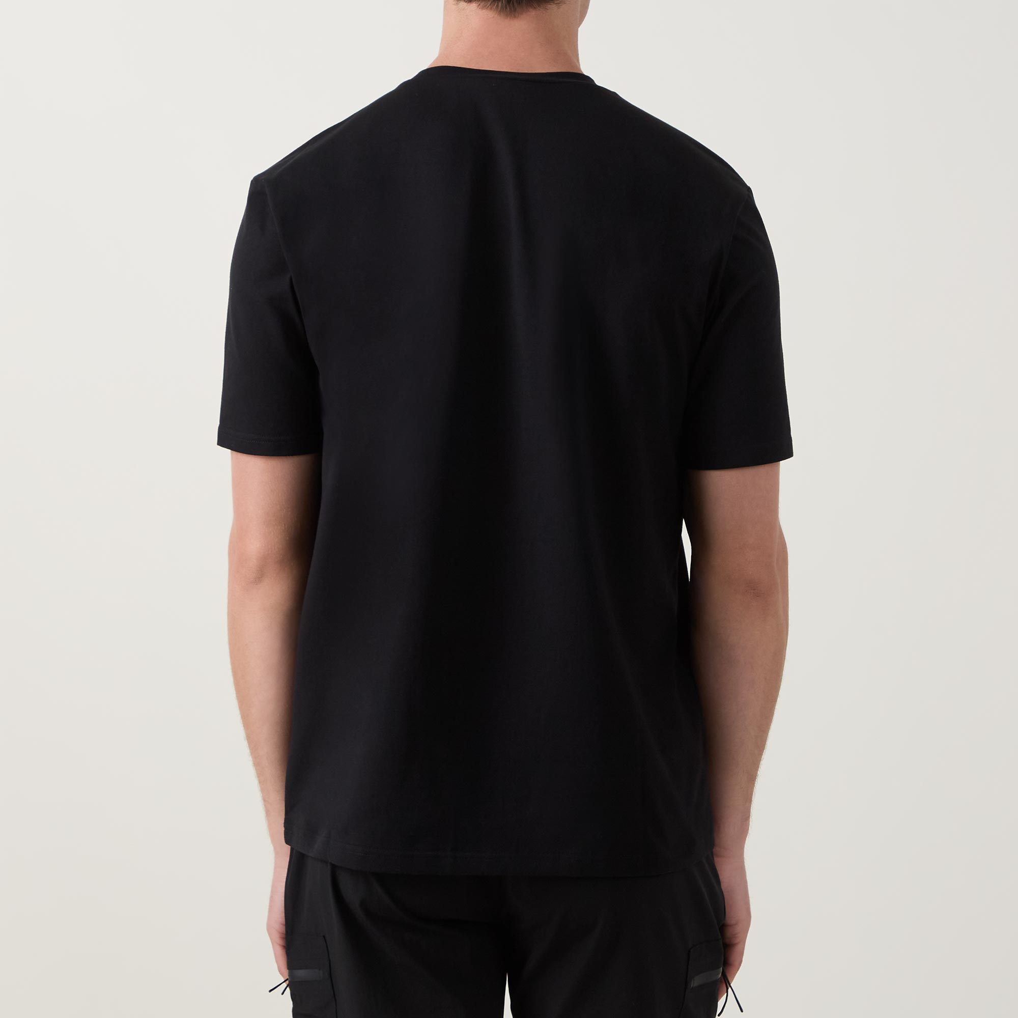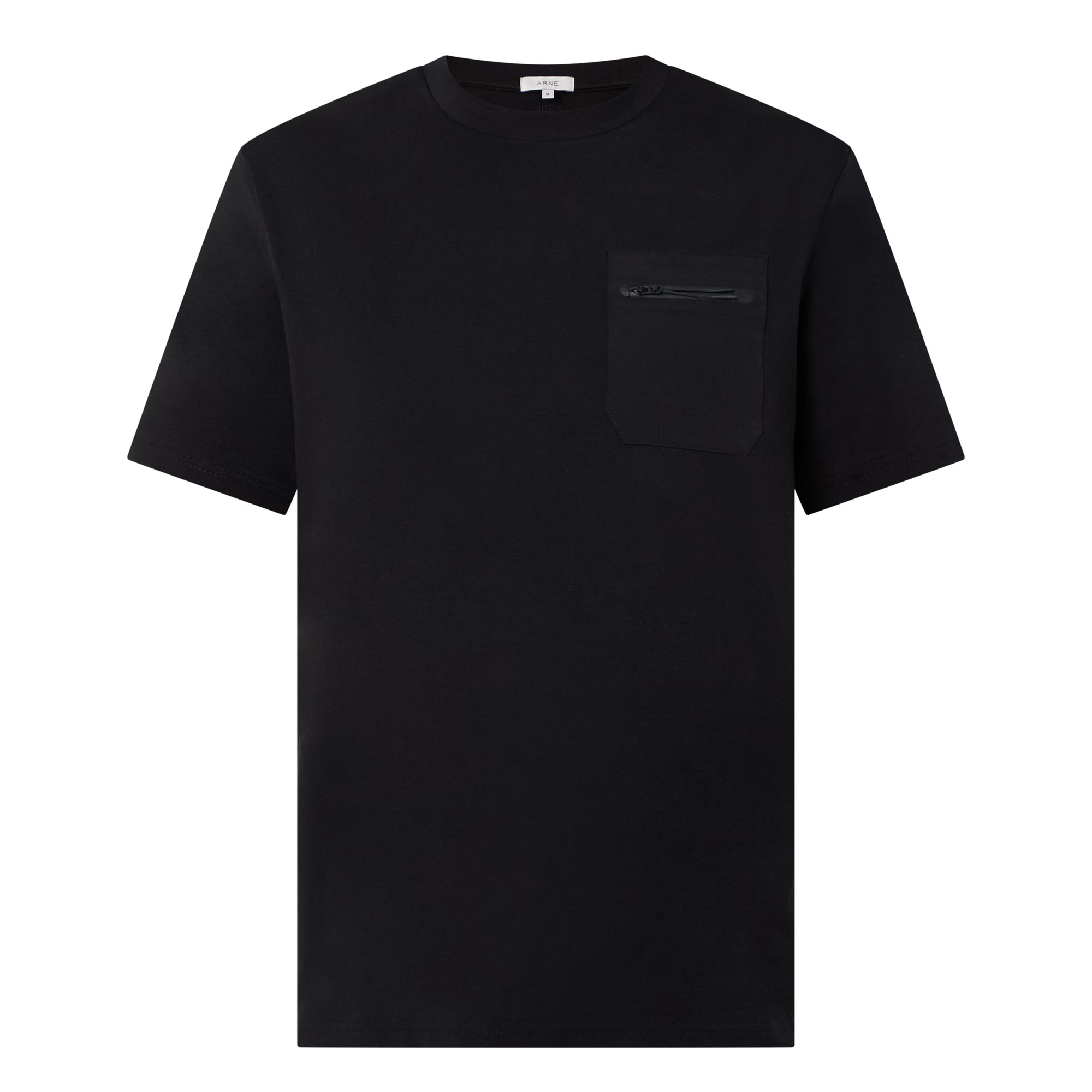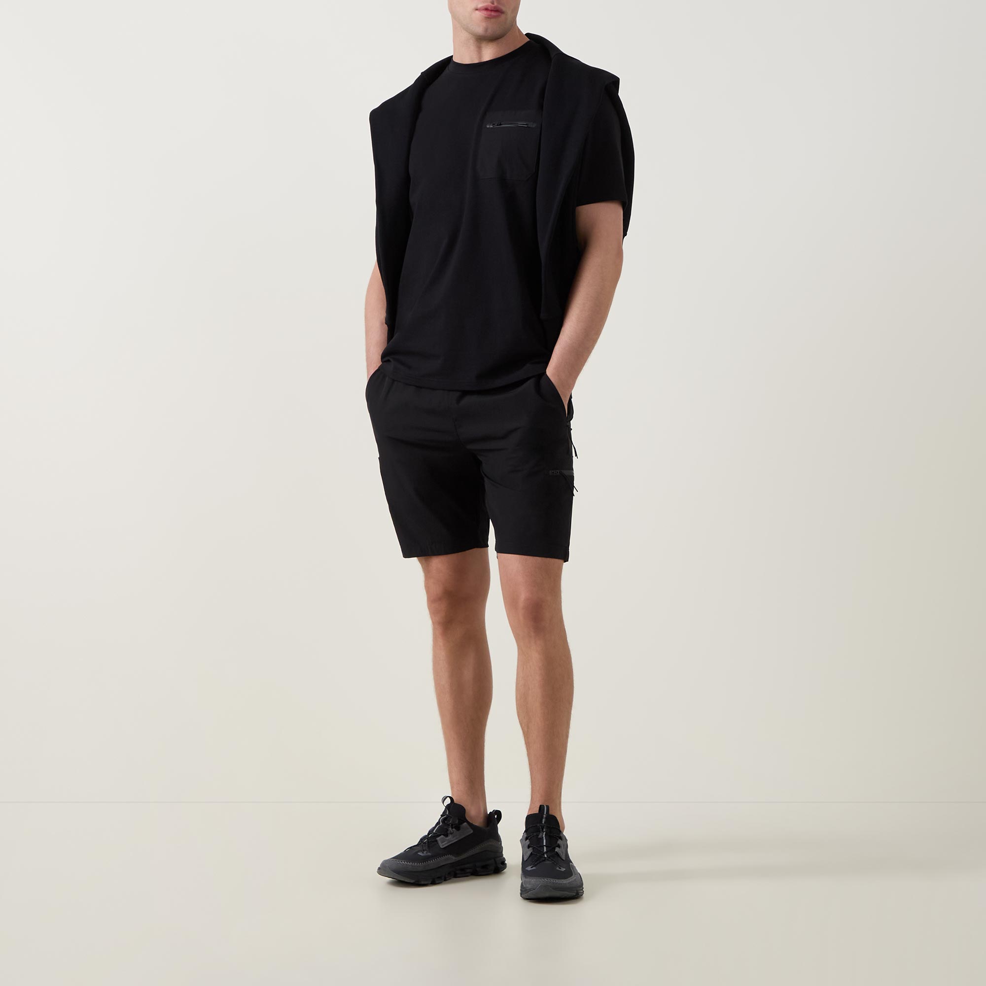- Crew neck, short sleeves, one chest patch pocket in contrasting fabric, zip fastening, straight hem, tonal stitching, smooth finish