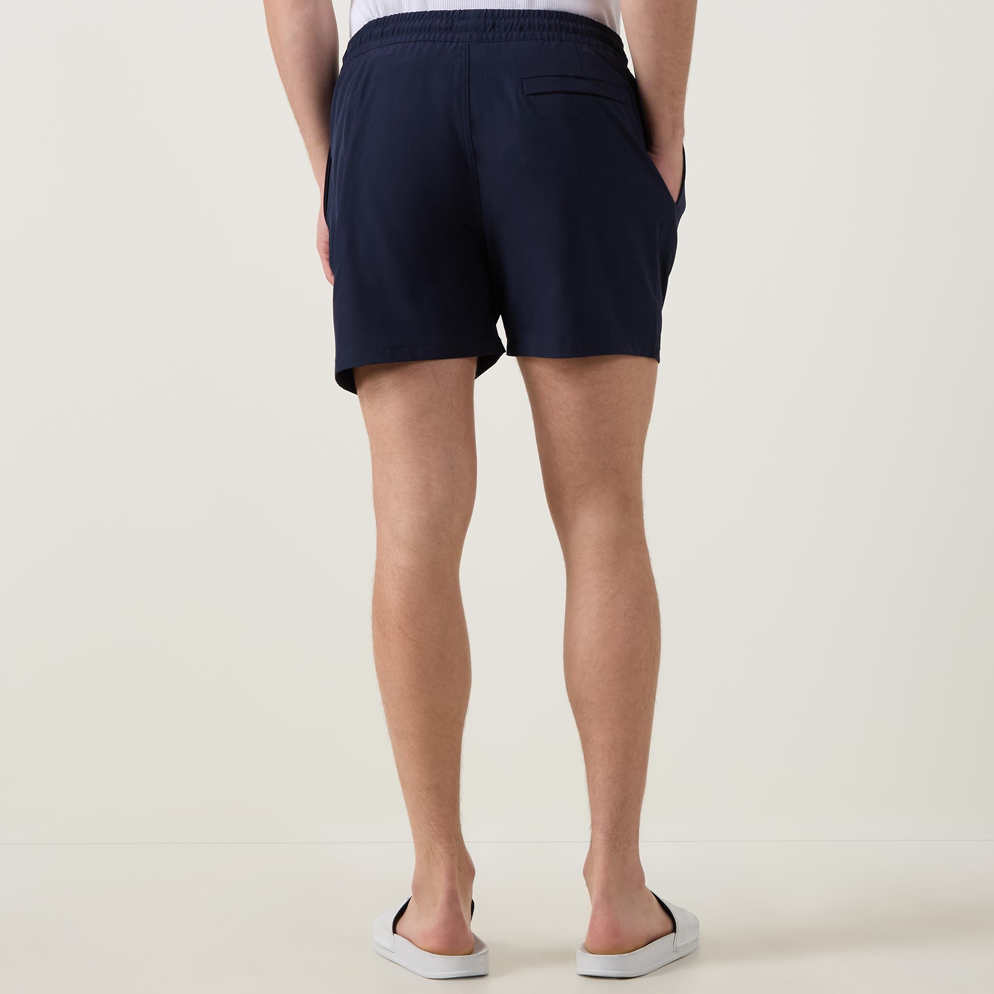 - Mid-rise, straight leg, elasticated waistband with adjustable drawstring fastening, two side entry pockets, one rear back pocket with popper closure, straight hem, internal mesh lining, matte finish