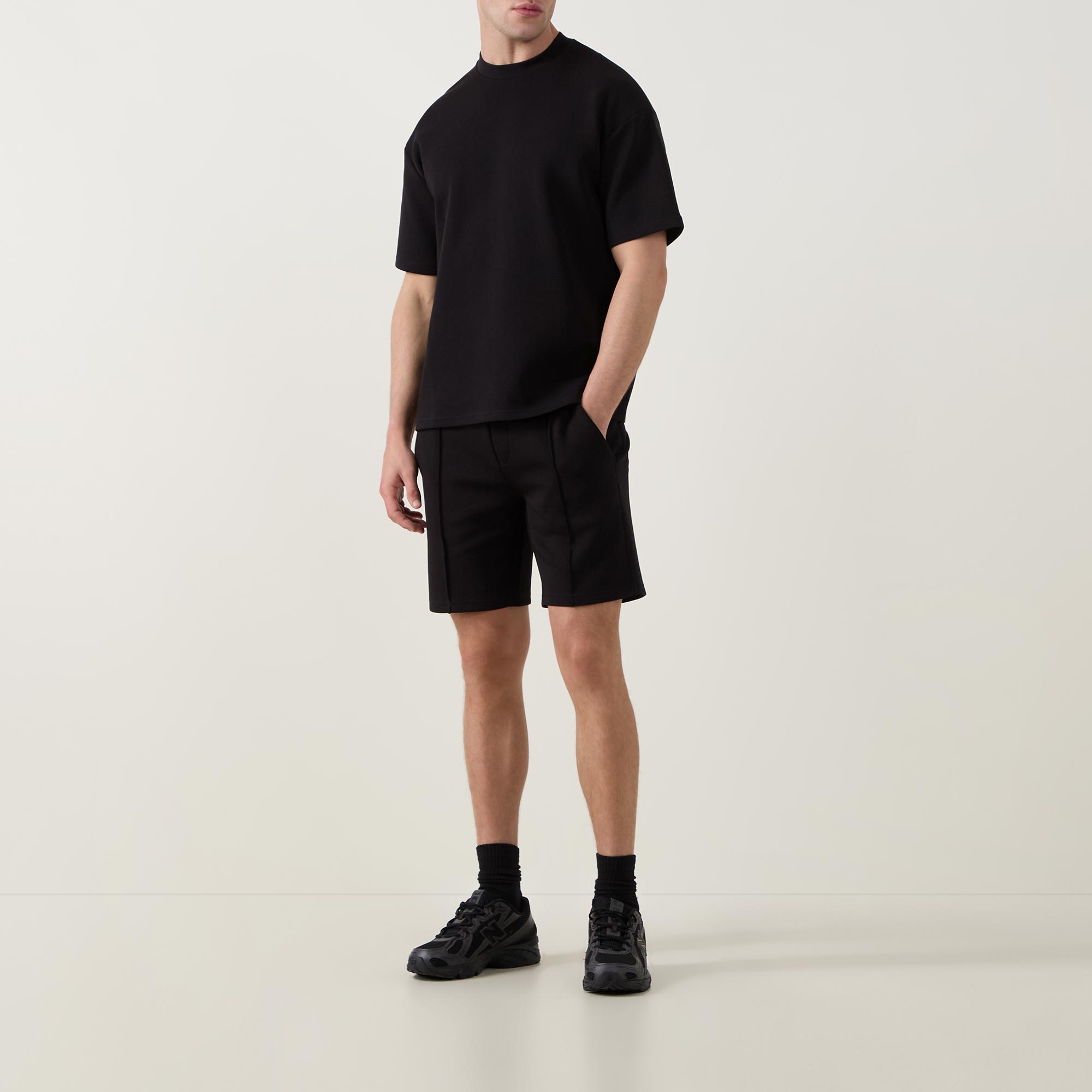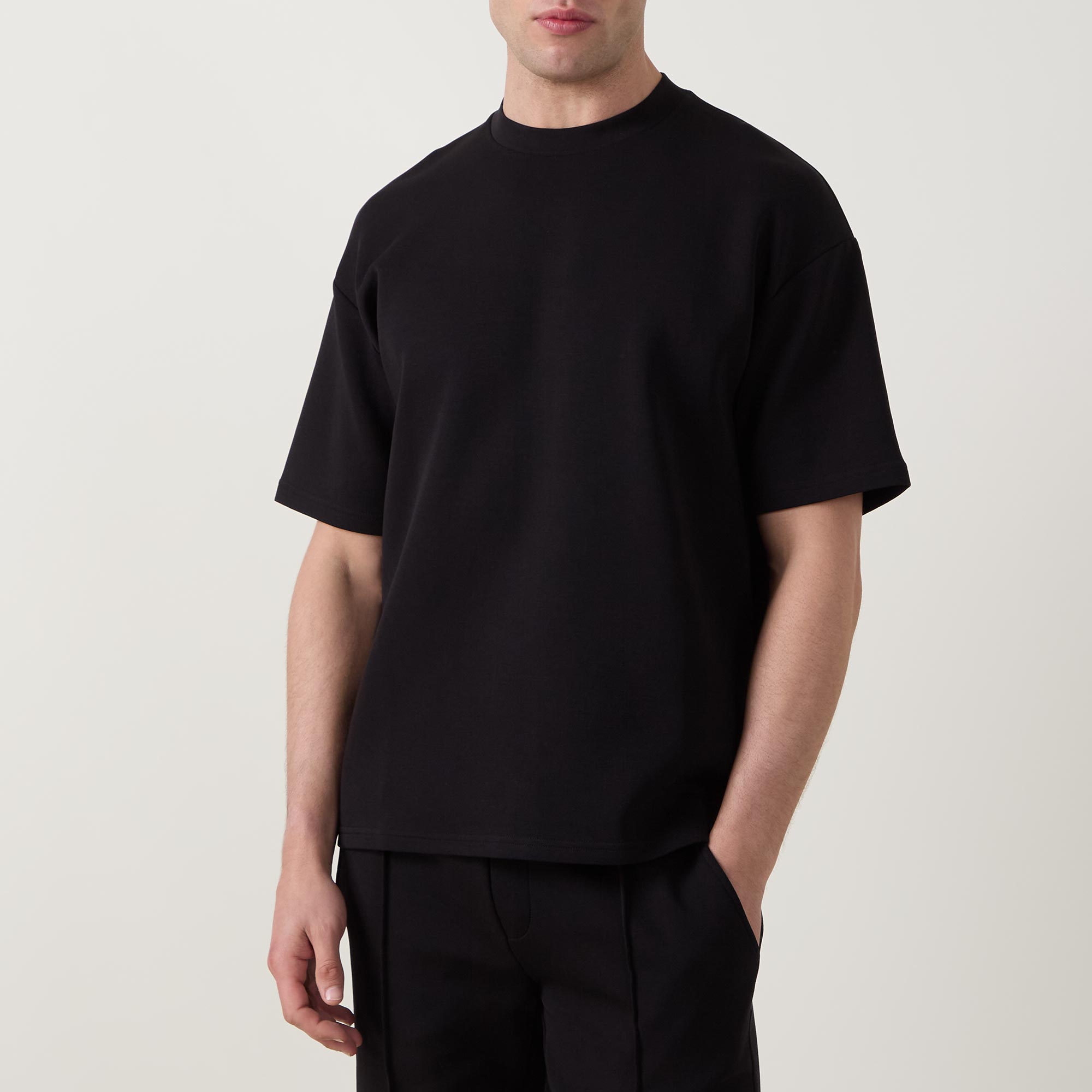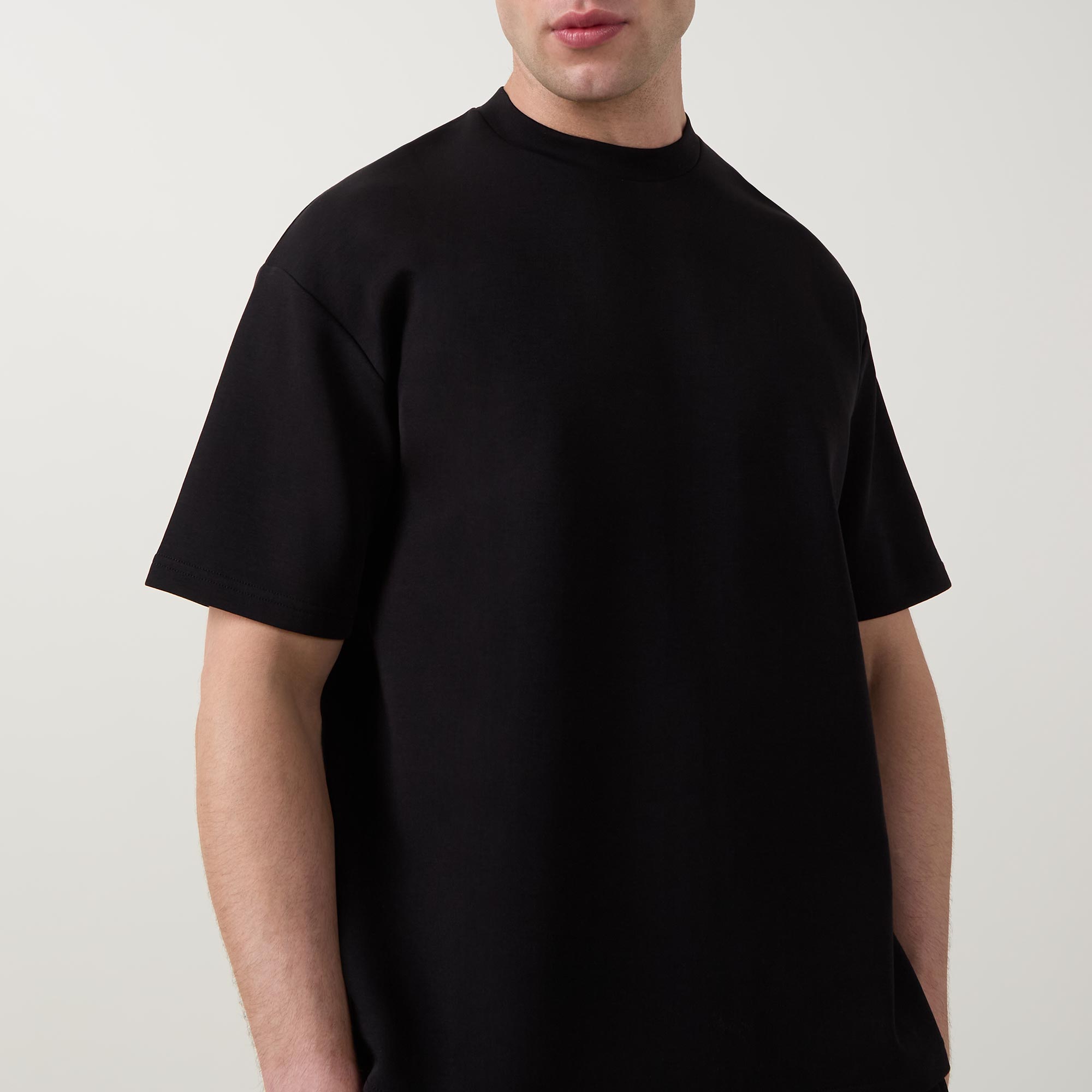 - Crew neck, short sleeves, straight hem, tonal stitching, tonal logo detail at the back of the neck, smooth finish