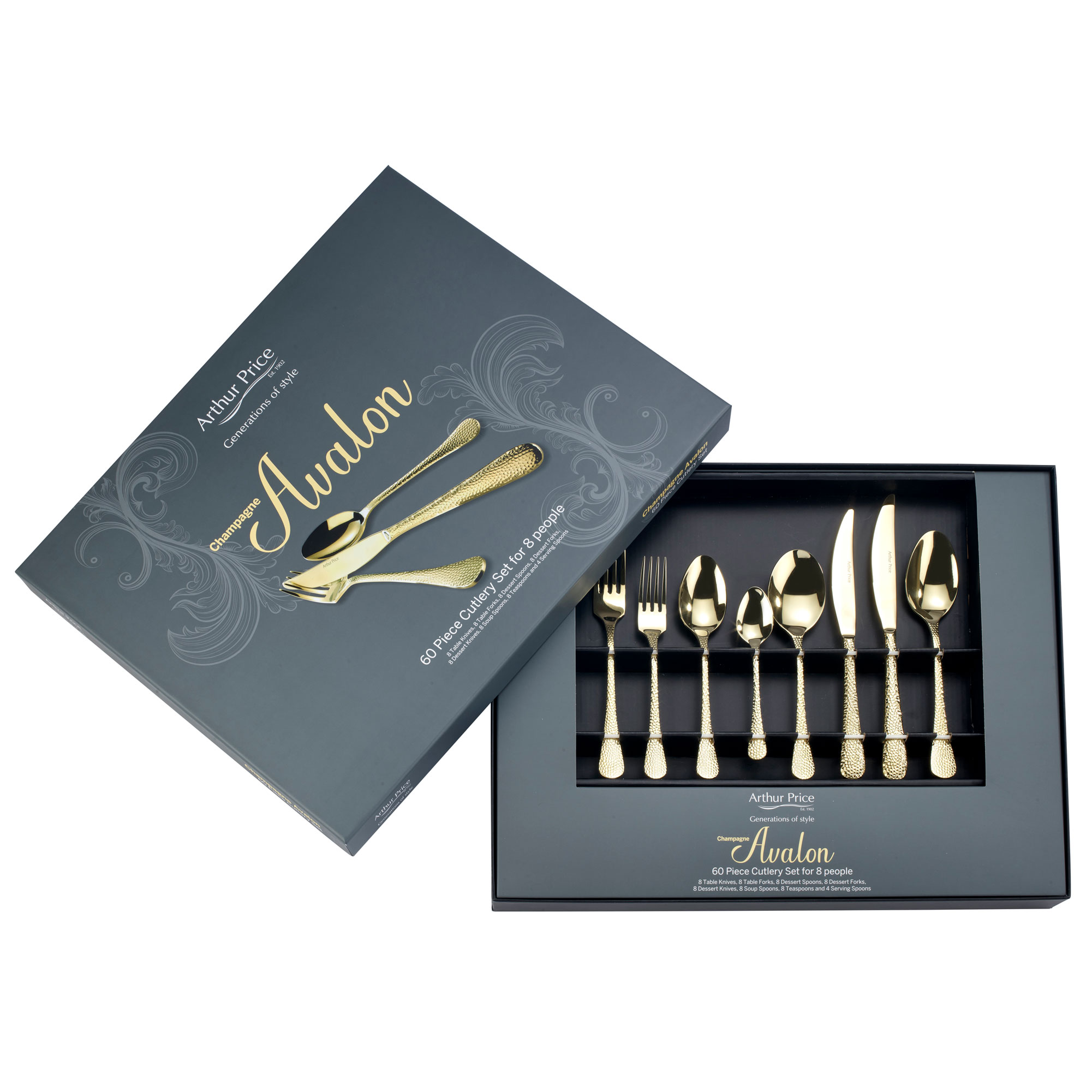 ARTHUR PRICE Champagne Avalon Cutlery Set, 60-Piece