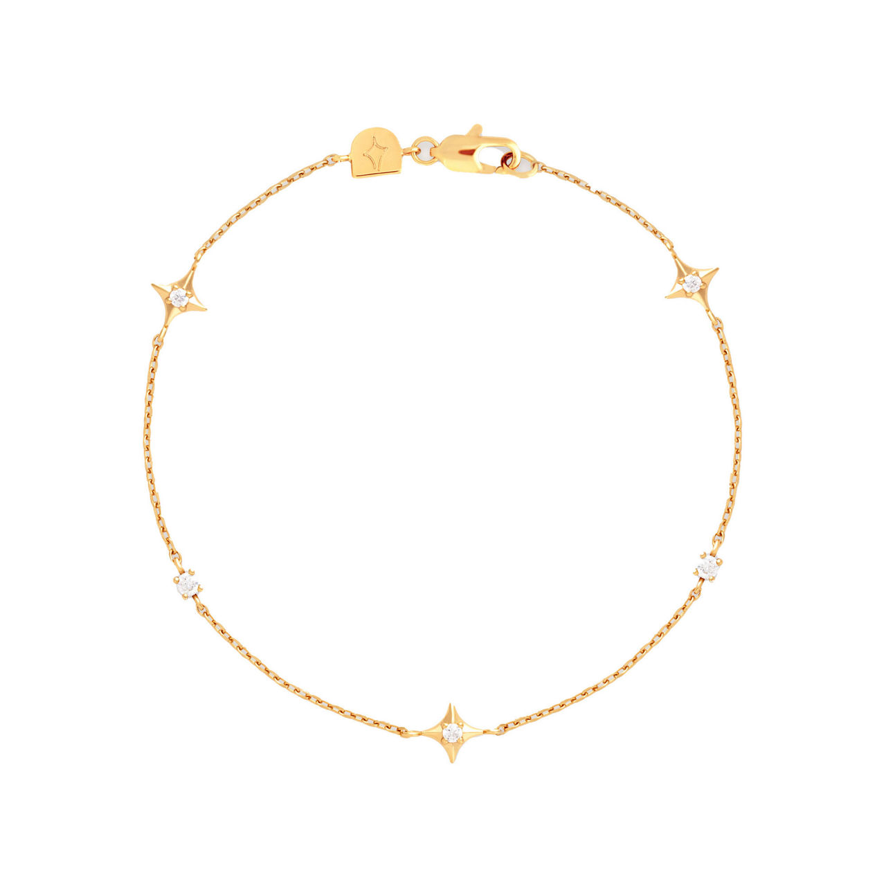 - Charm bracelet, 18kt gold-plated, four-point stars with crystal inlays, cable chain, lobster claw clasp fastening, stackable, gift box, pouch