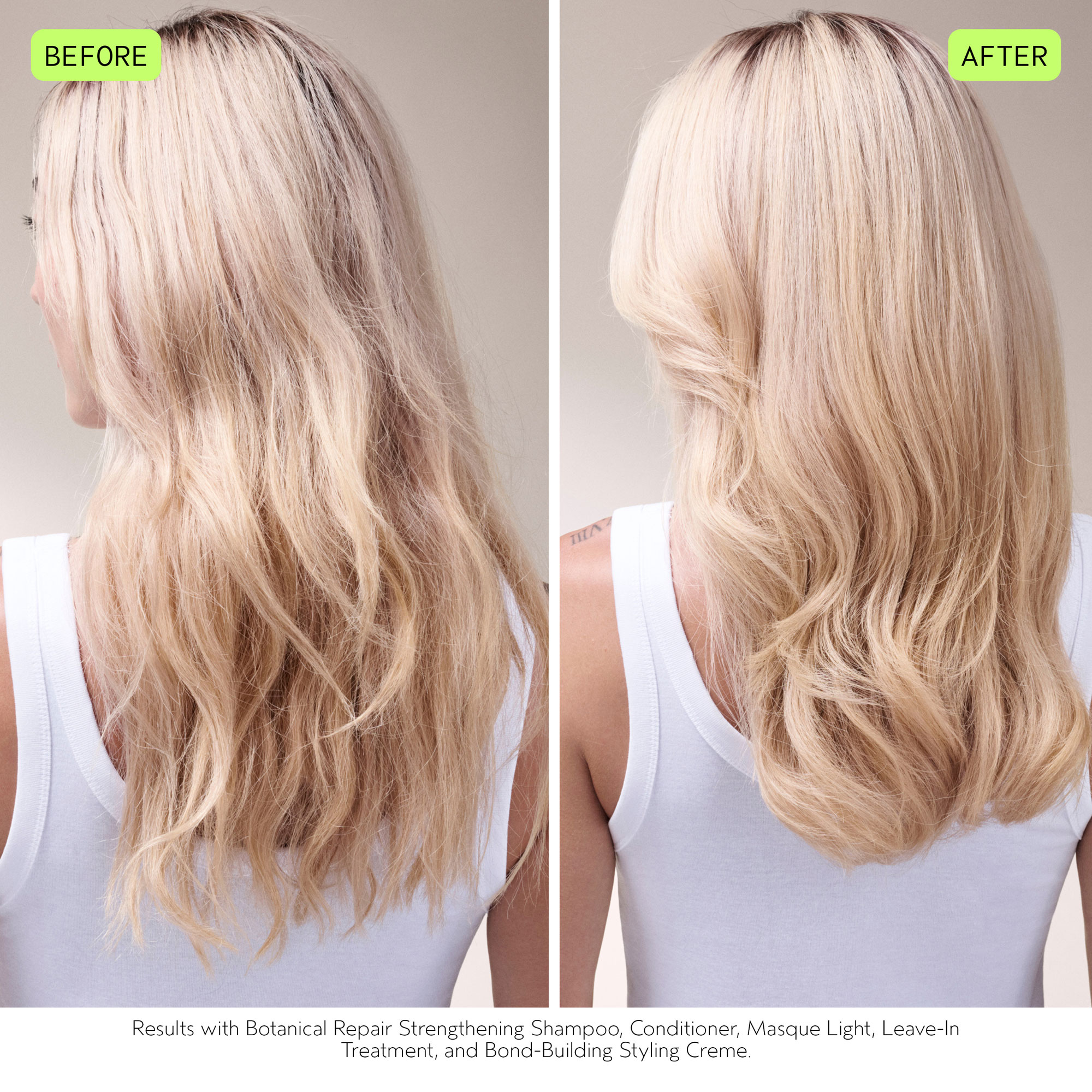 - Botanical RepairTM Strengthening Conditioner: Massage into wet hair strands and rinse well. For extra repair, leave on for 2–3 minutes before rinsing.