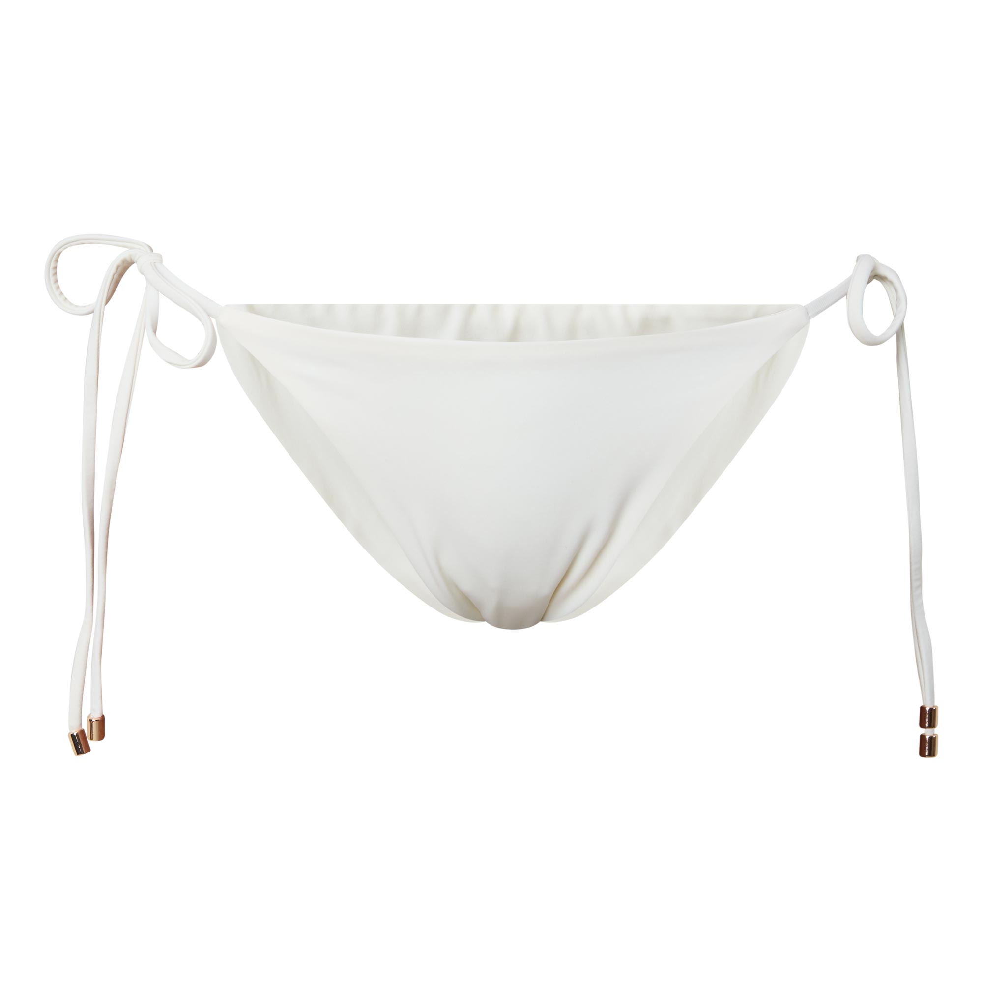 - Low rise, cheeky coverage, adjustable side ties, lined, made with a triple layer construction