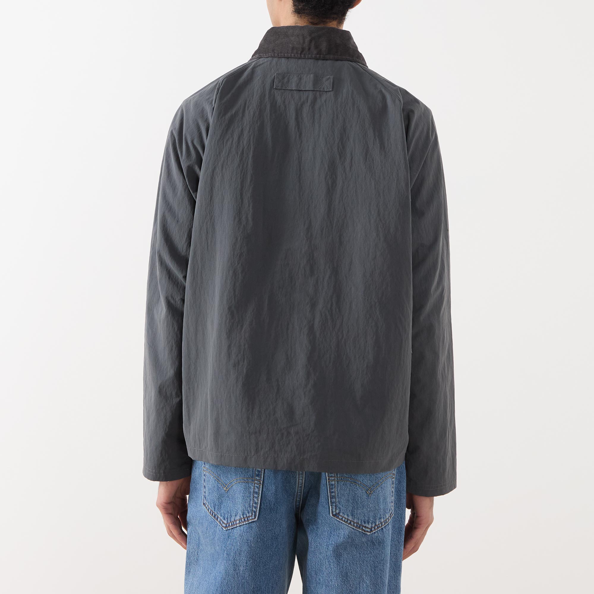 • Point collar, long sleeves, front zip fastening, additional button placket, two large flap pockets with button closures, straight hem, embroidered logo detail, smooth peached finish