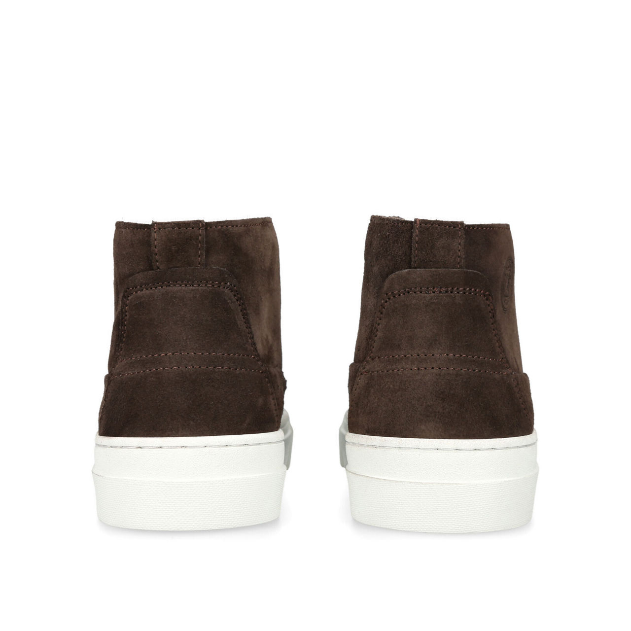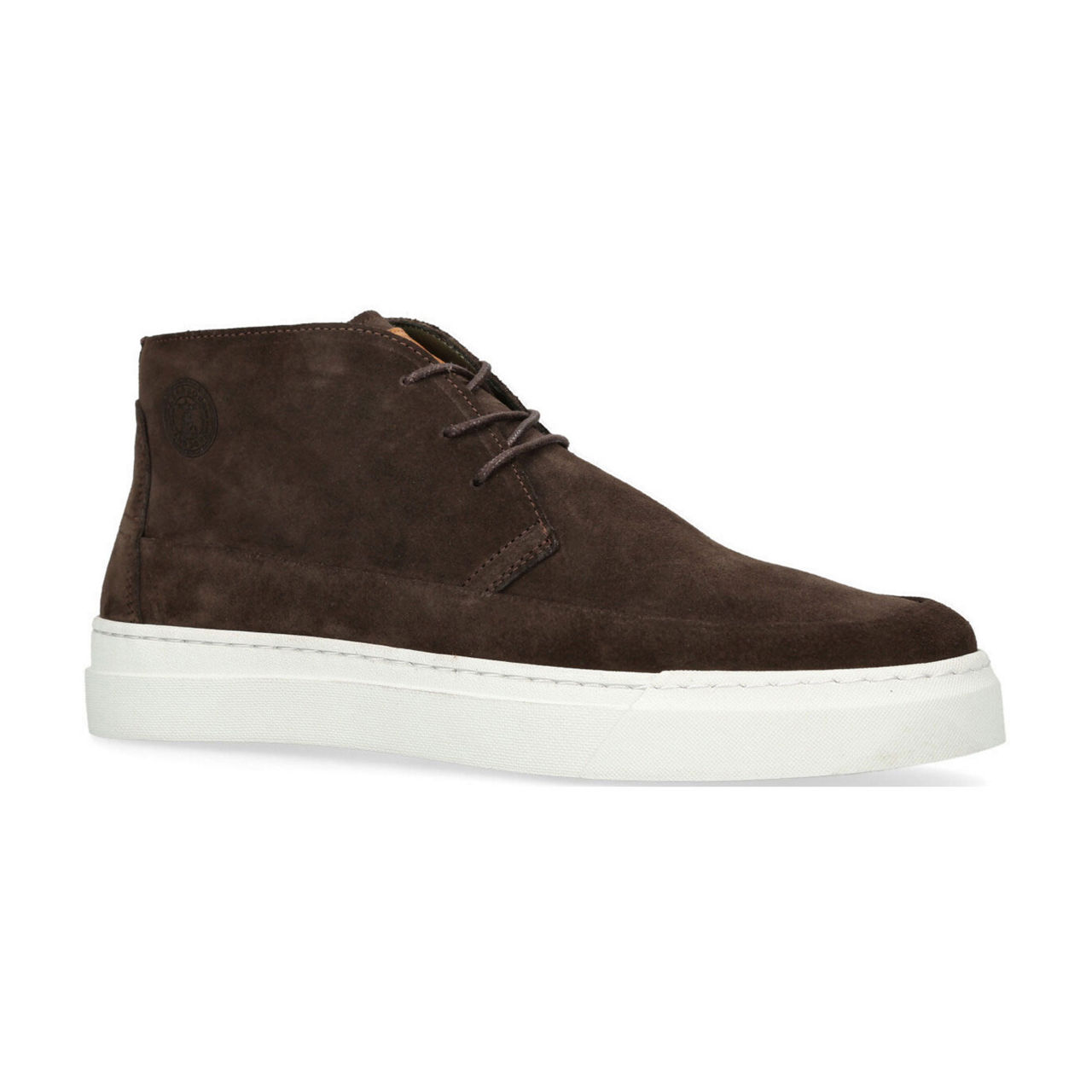 - Ankle height, lace-up fastening, thick sole, logo details, suede finish