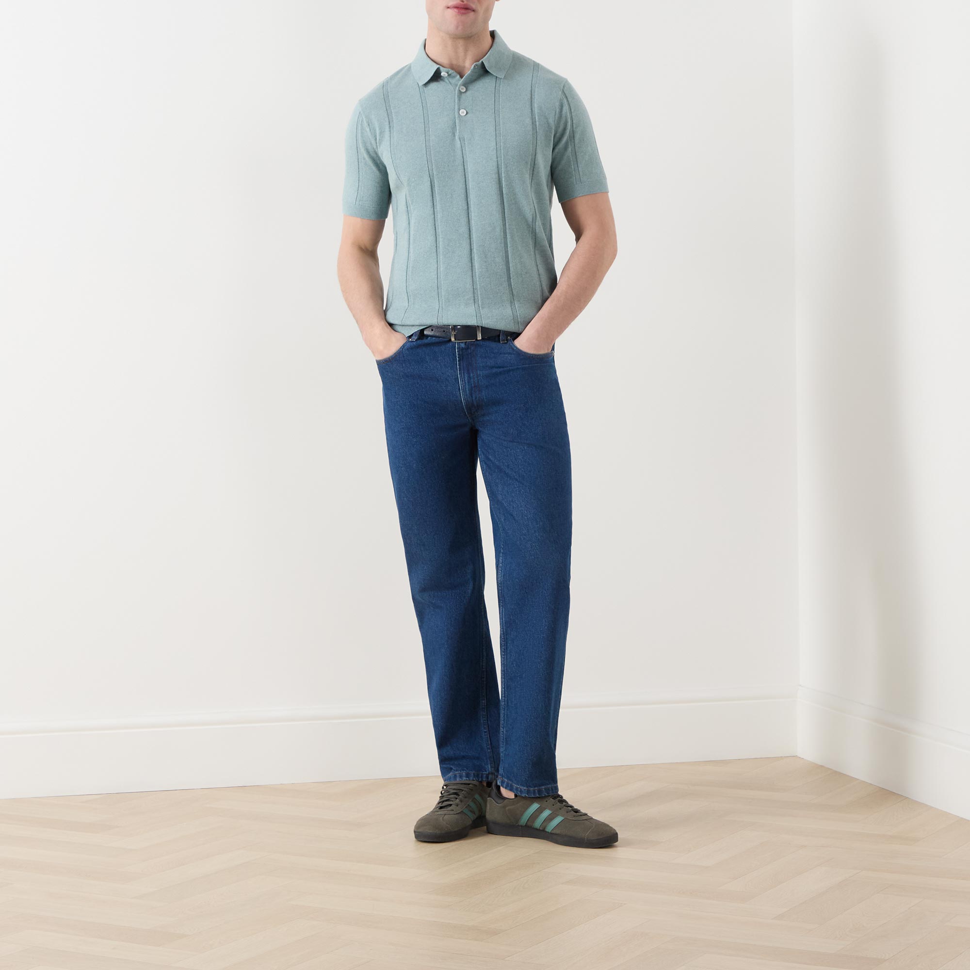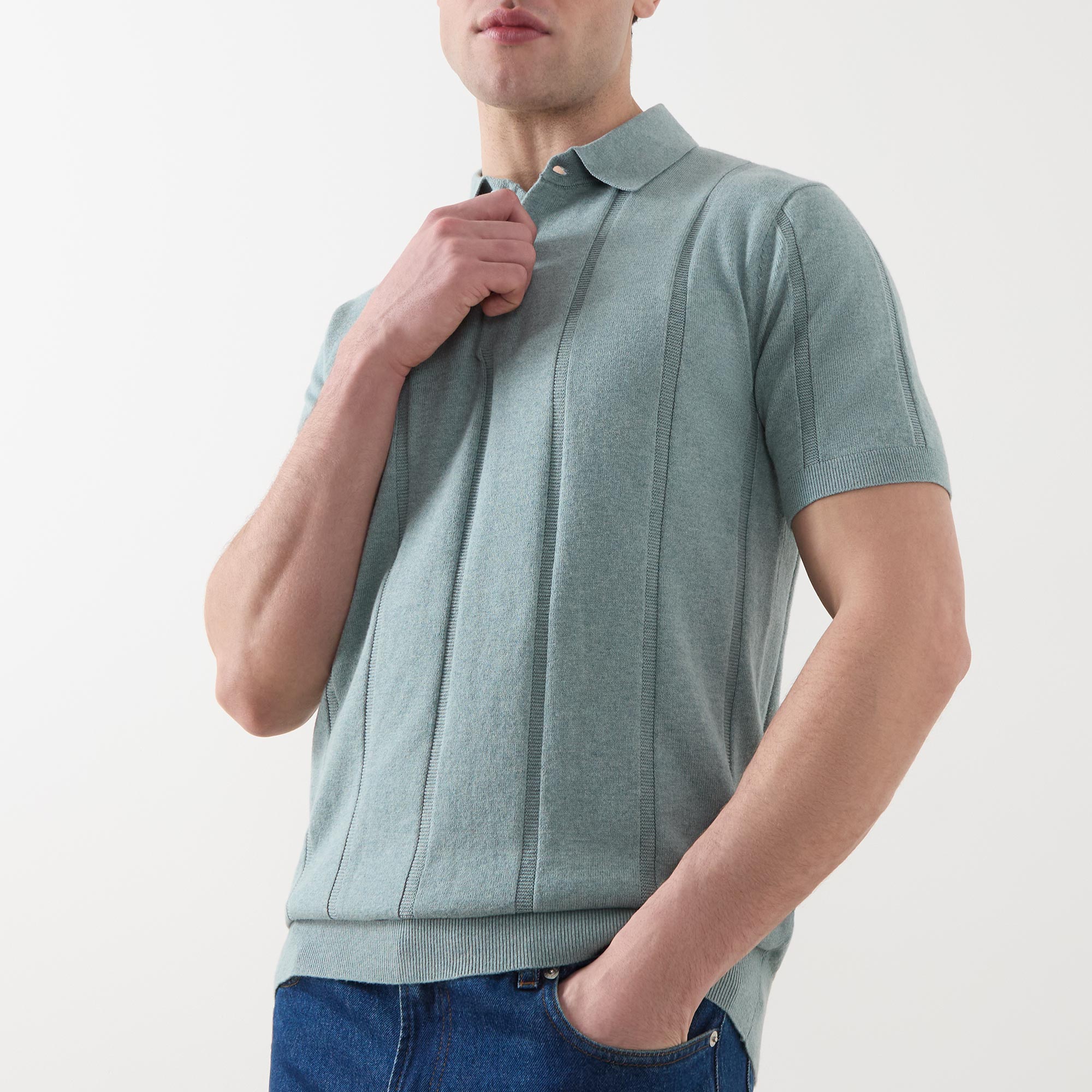 - Vertical ribbed stripes, polo collar, button fastenings, straight hemline