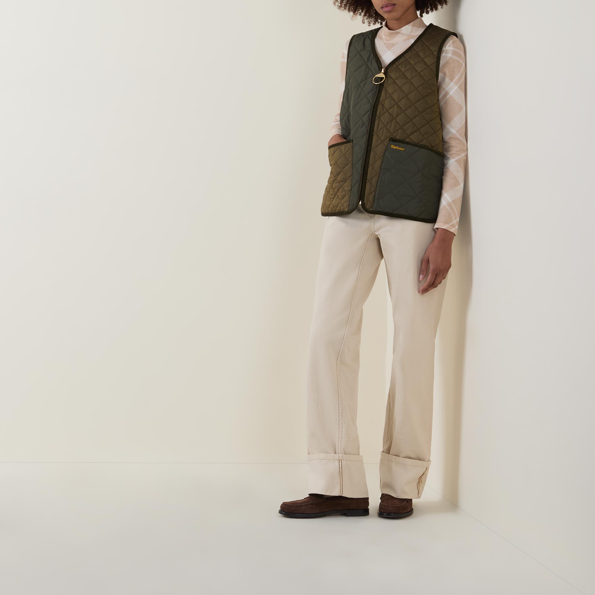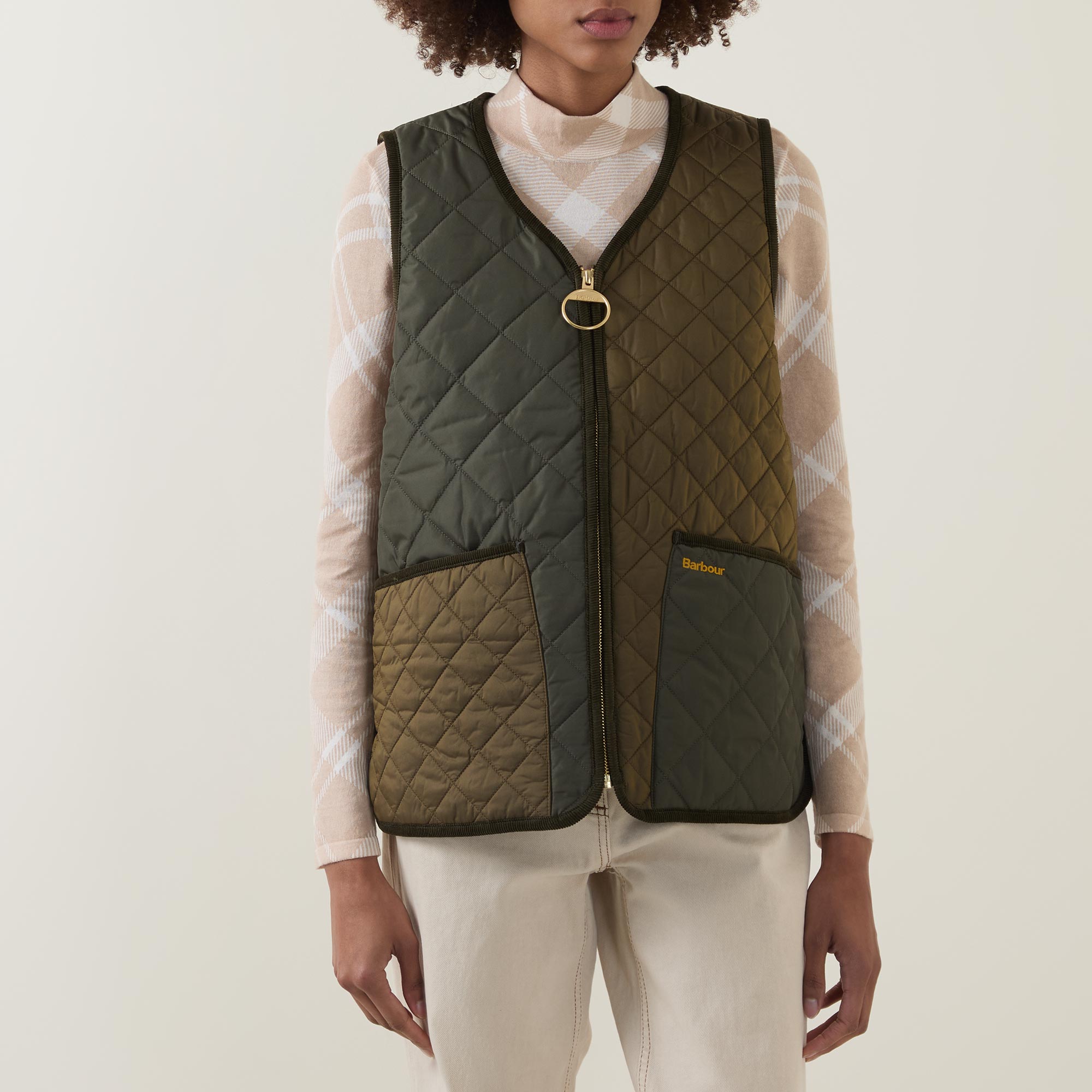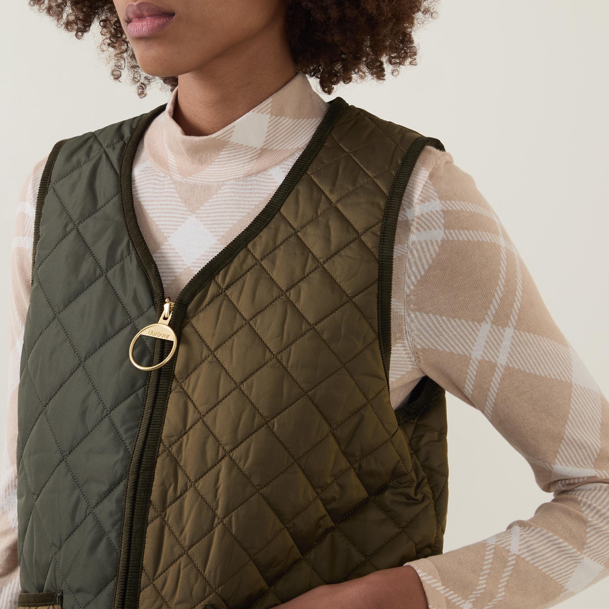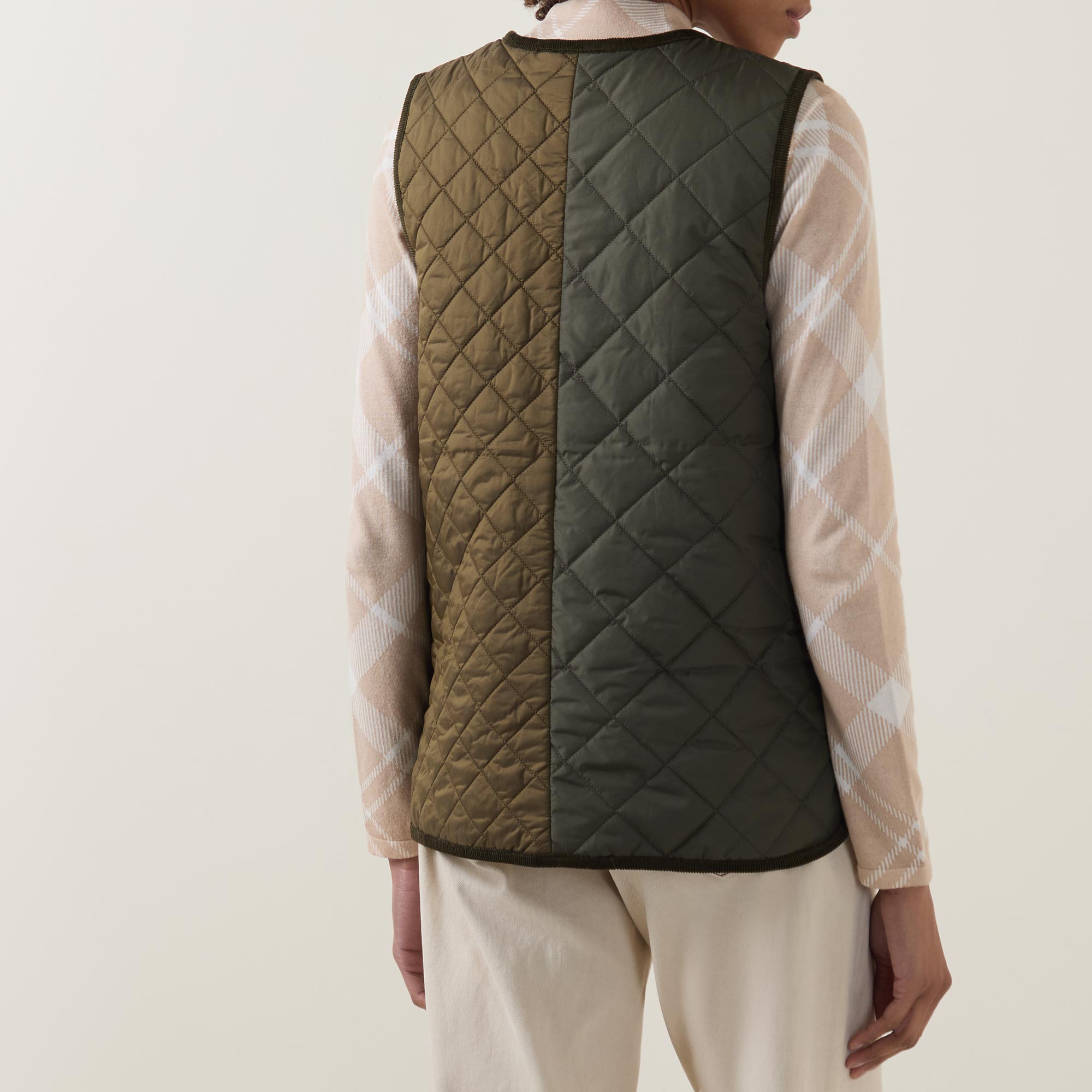 - Quilted, sleeveless, logo detail, V-neckline, zip fastening, front pockets