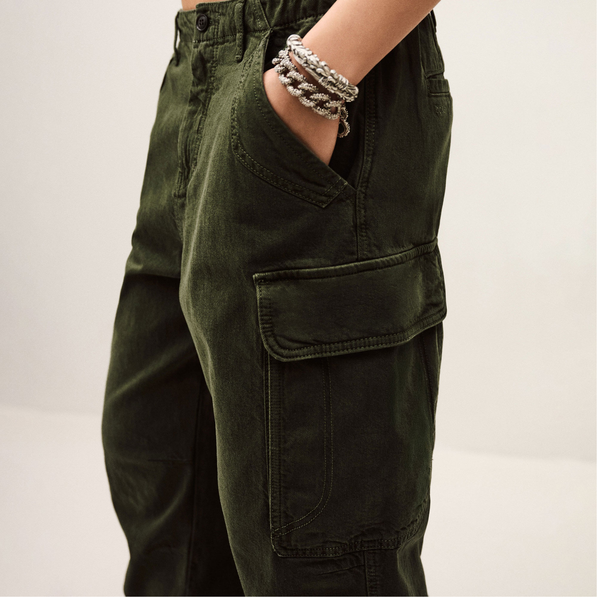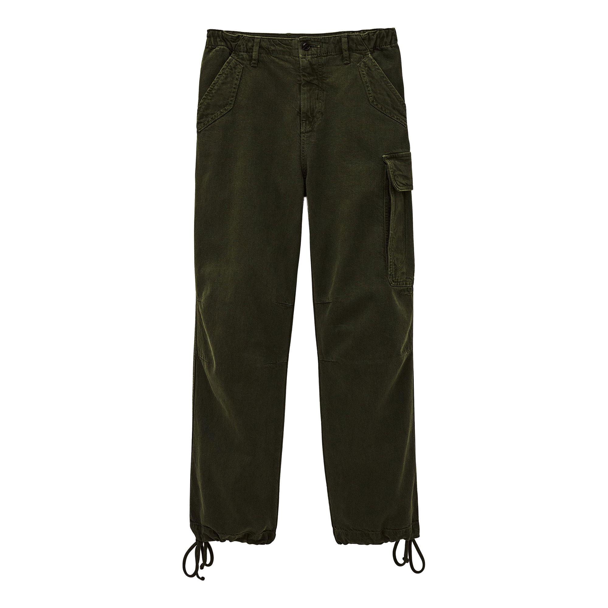 • Elasticated waistband, belt loops, concealed fly and button fastening, utility cargo pockets, adjustable drawstring hems, jogger-style design