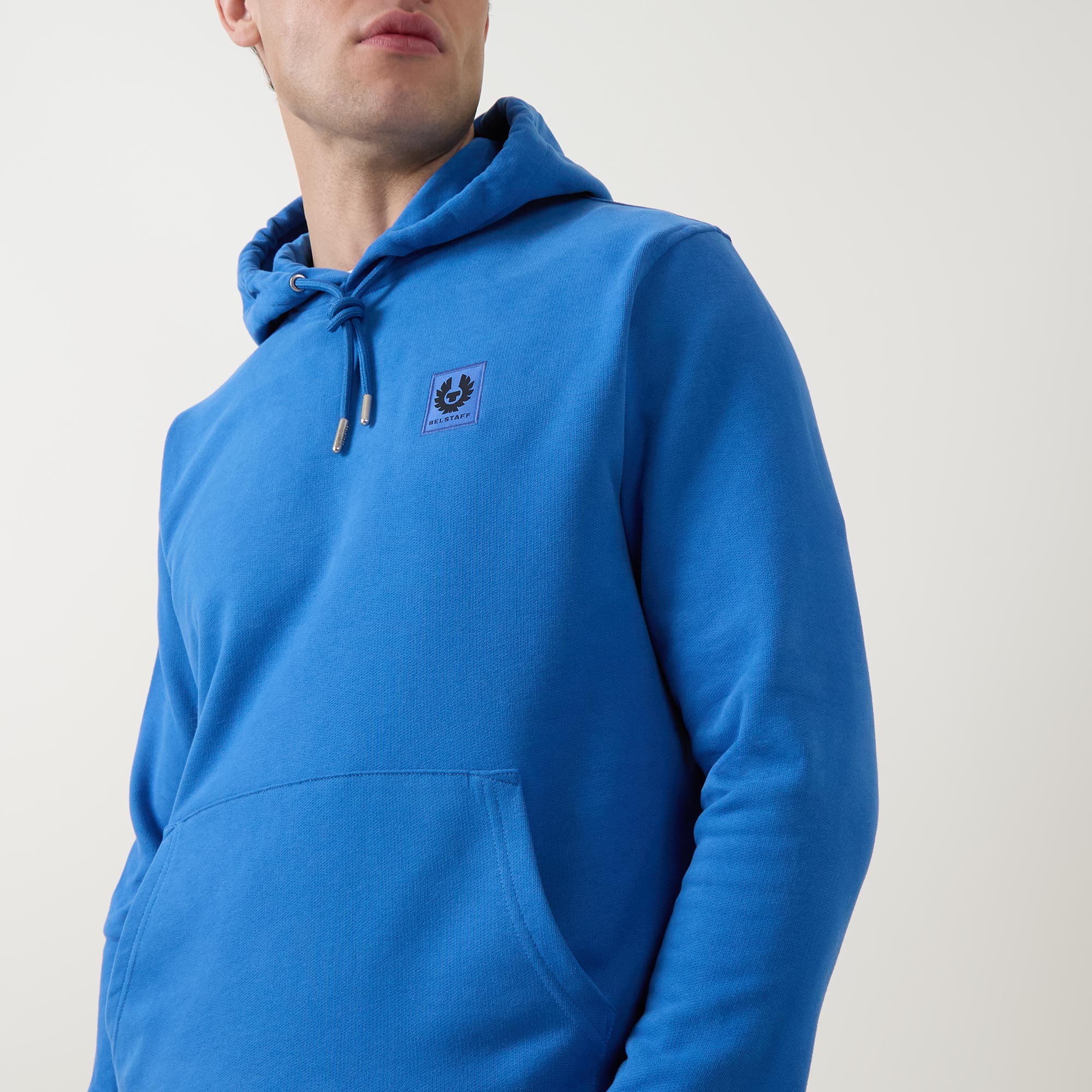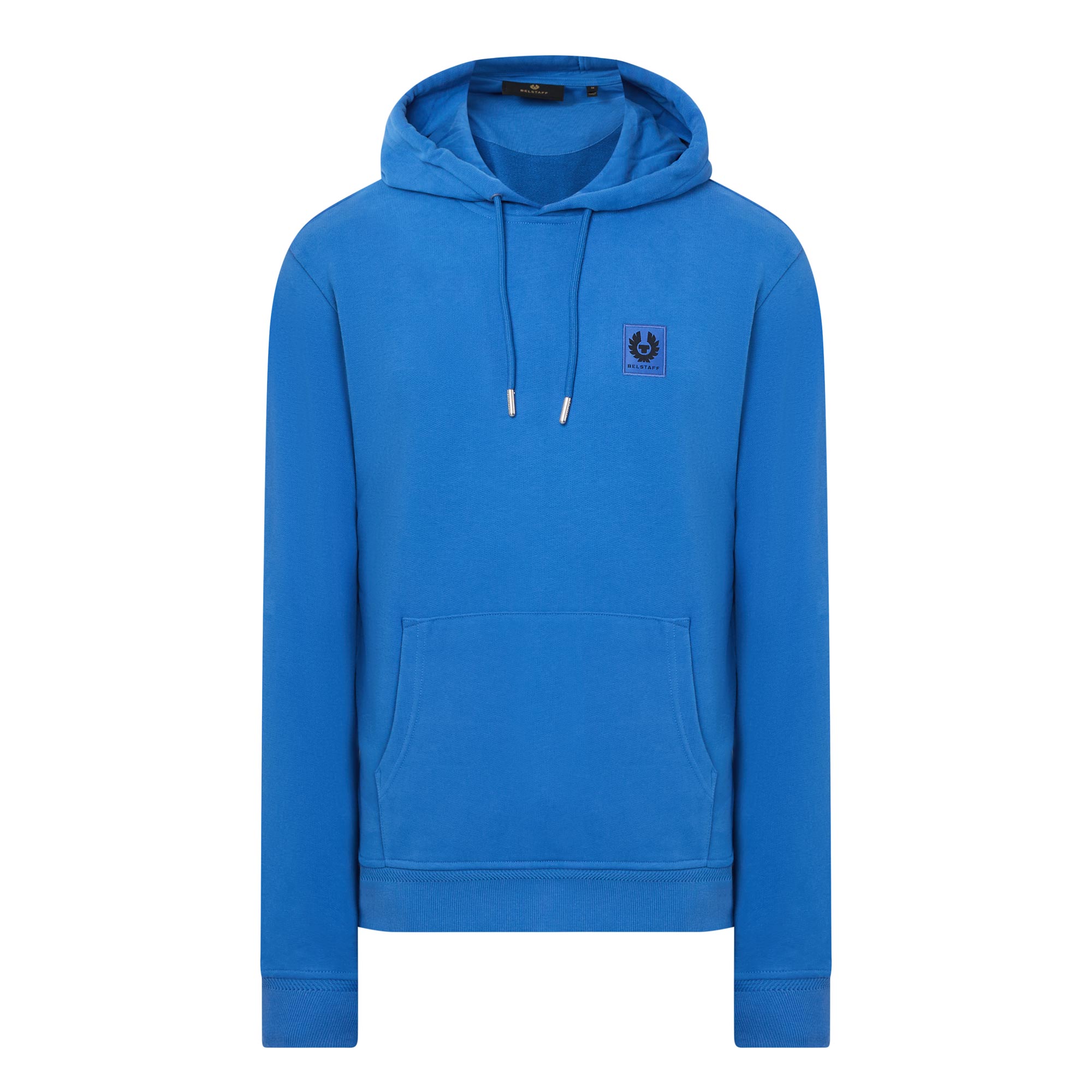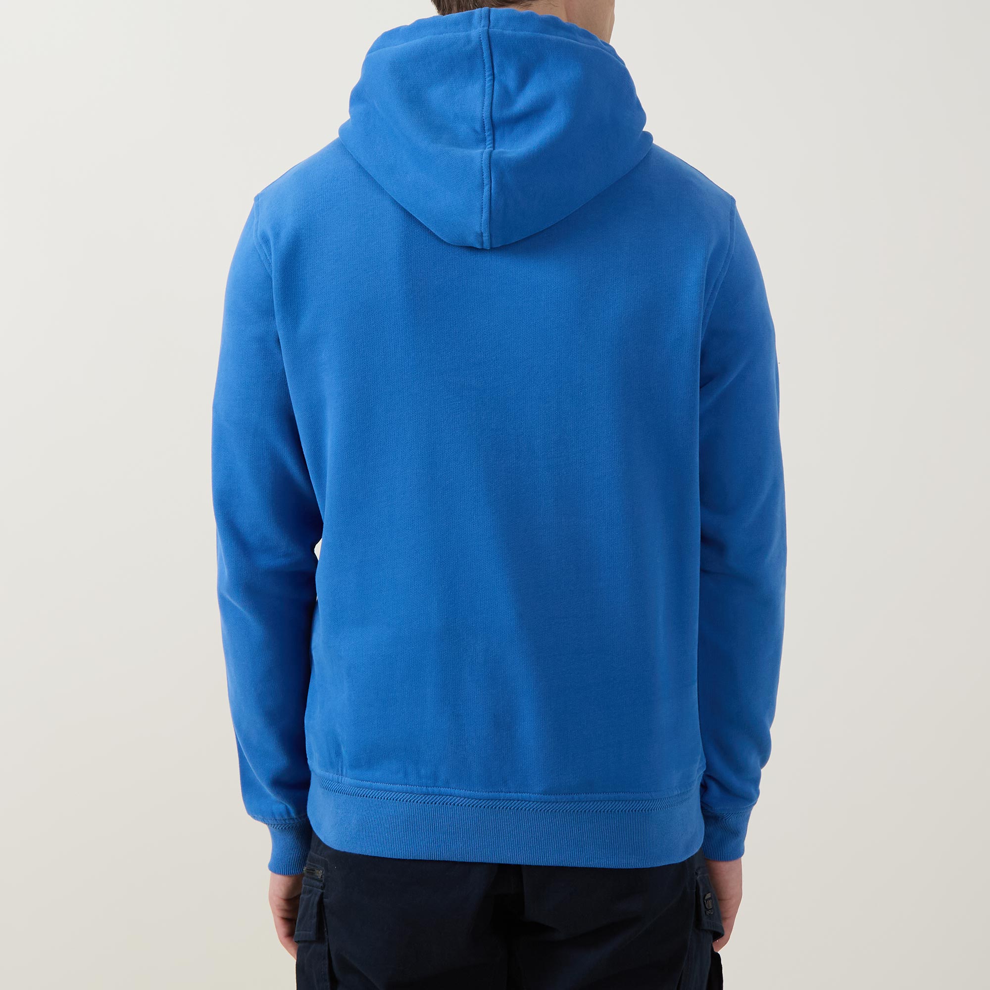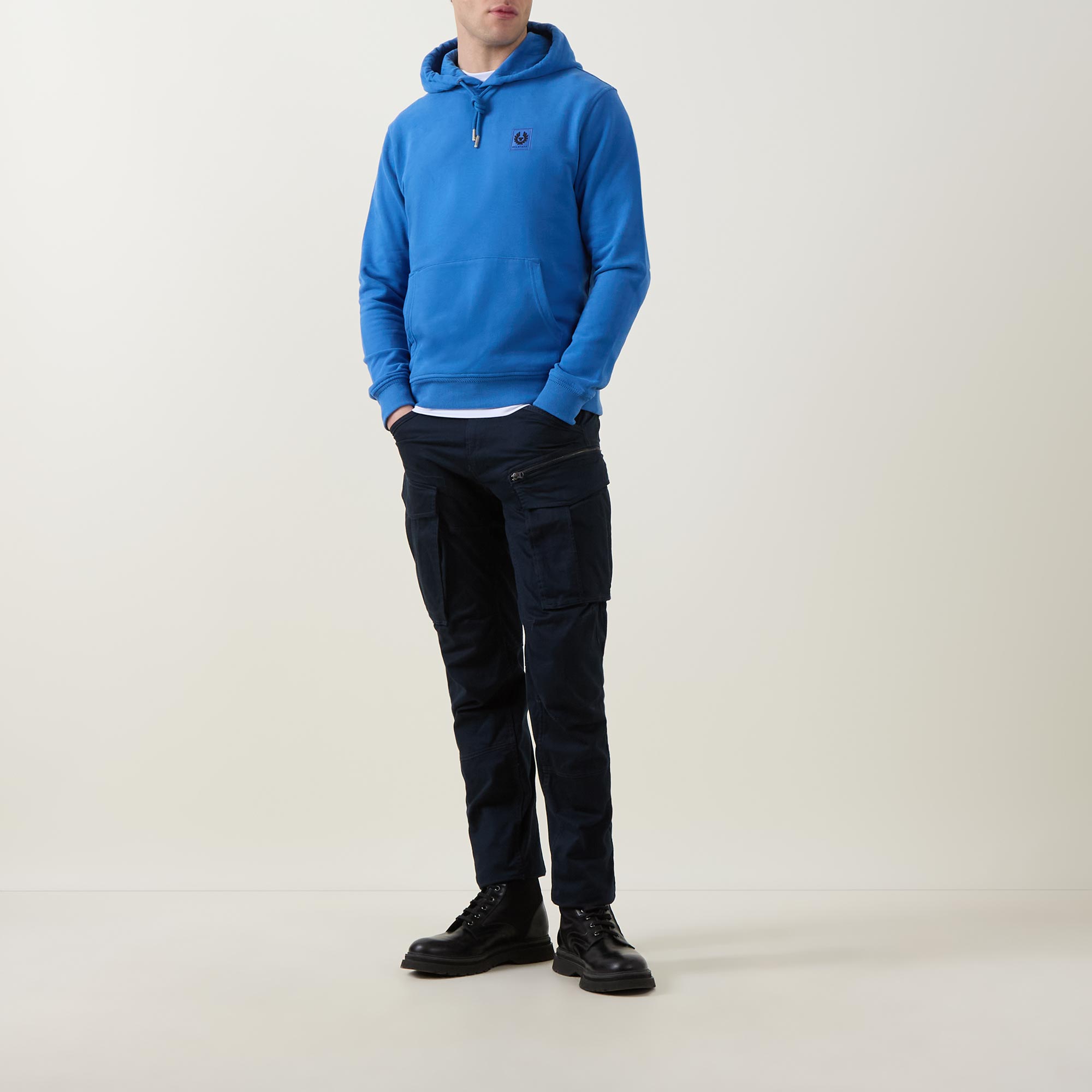 - Fixed hood with drawstring fastening, long sleeves, kangaroo pocket, straight hem, ribbed trims, logo badge detail on the chest