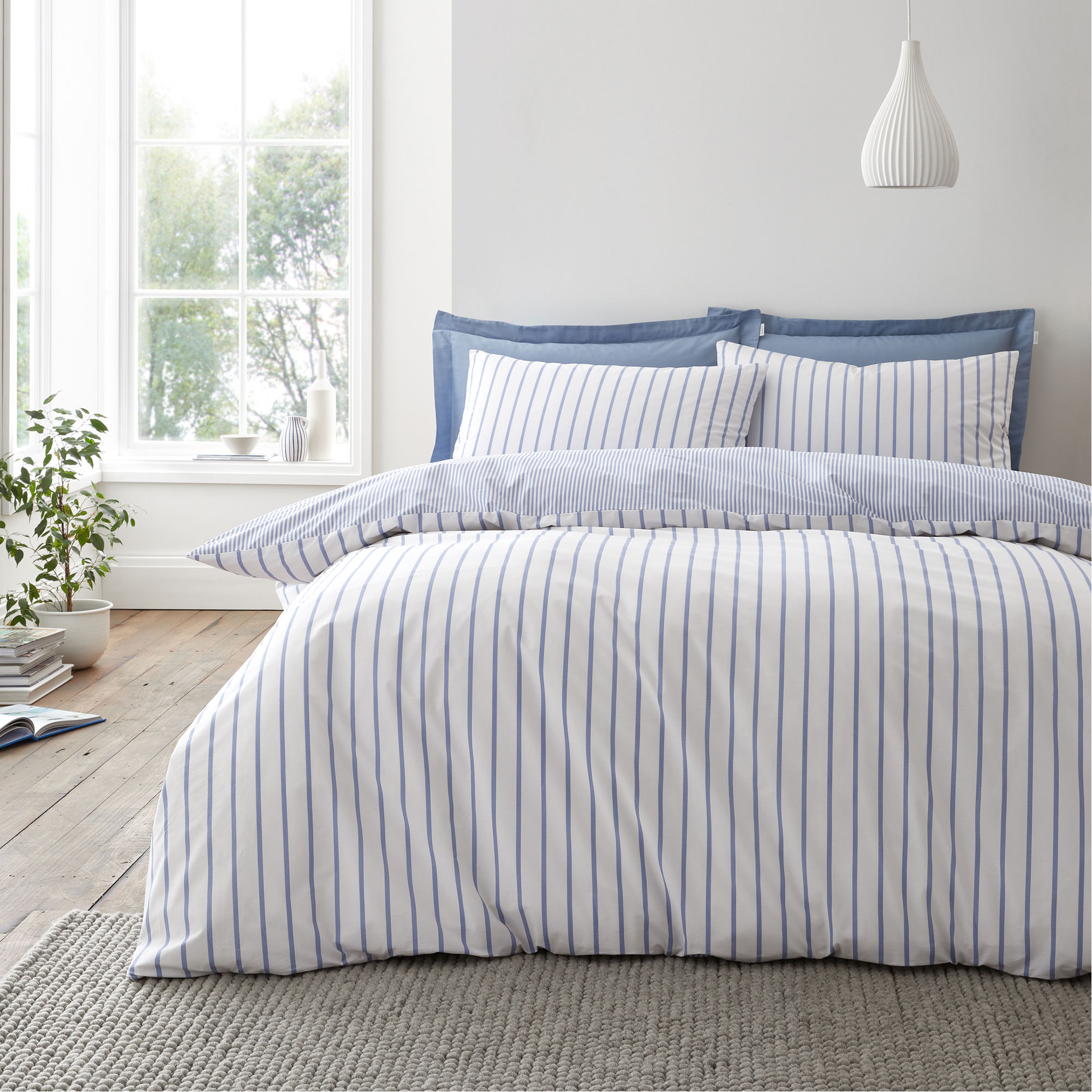 Elevate your sleep sanctuary with our timeless classic stripe bedding, designed for effortless luxury. Featuring a refined palette, its subtle elegance brings a sense of calm to any space. Fully reversible, the design transitions seamlessly with a smaller, delicate stripe on the reverse. Dream in blissful comfort under wonderfully soft 200 thread count percale cotton, a beautiful naturally breathable fibre that encourages a better night’s sleep.