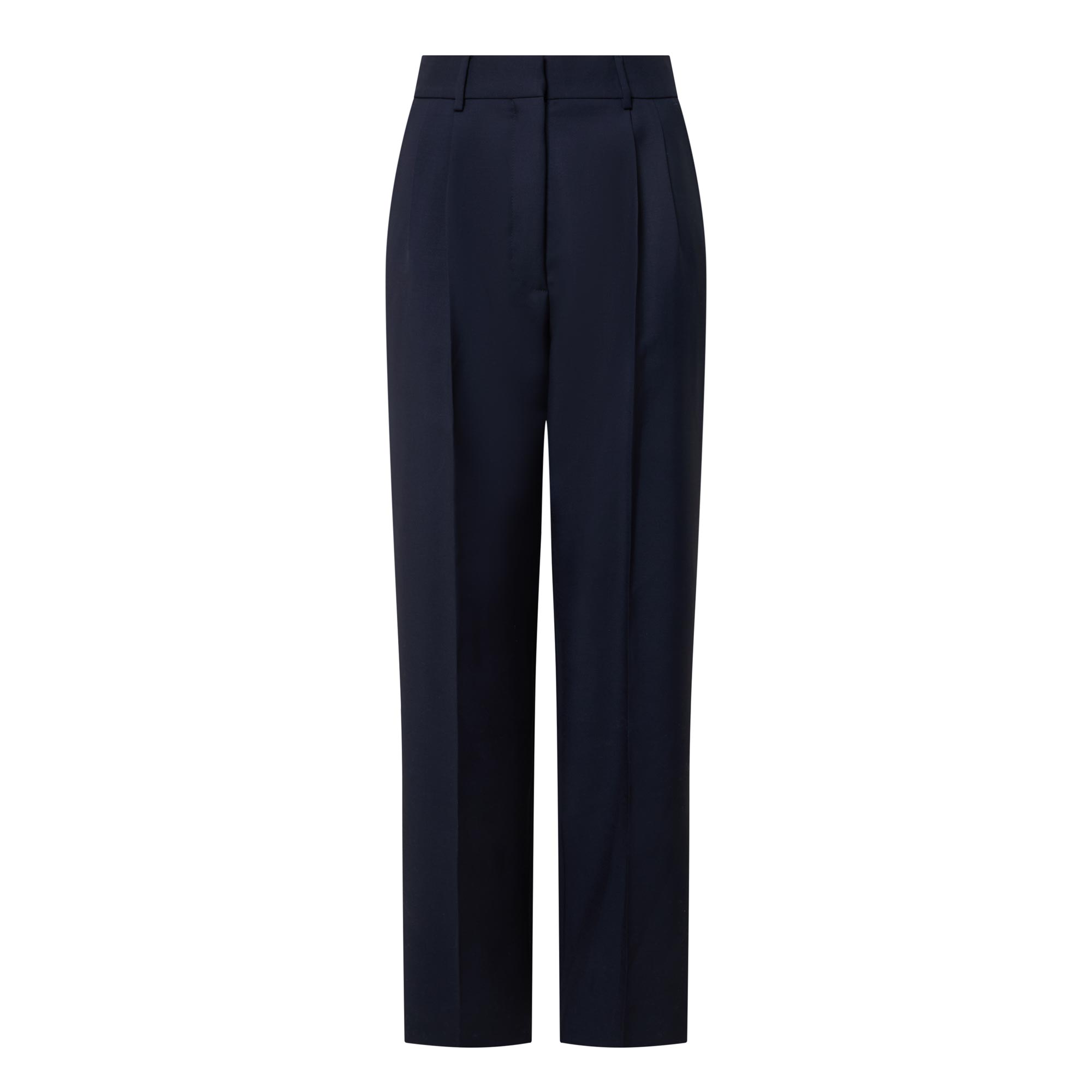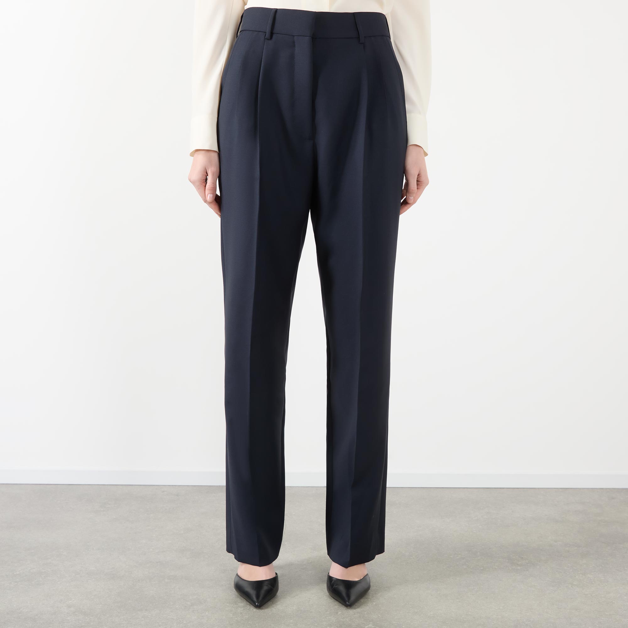 - High-rise, straight leg, front pleats, belt loops, concealed zip and hook fastening, Smiley back pocket