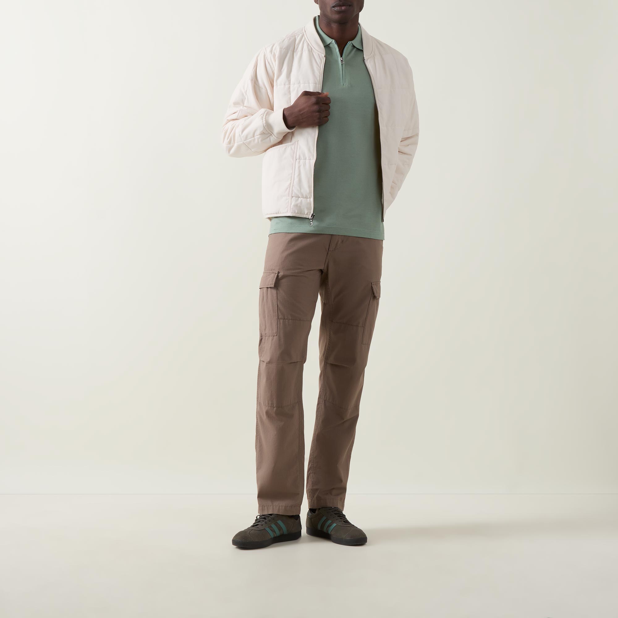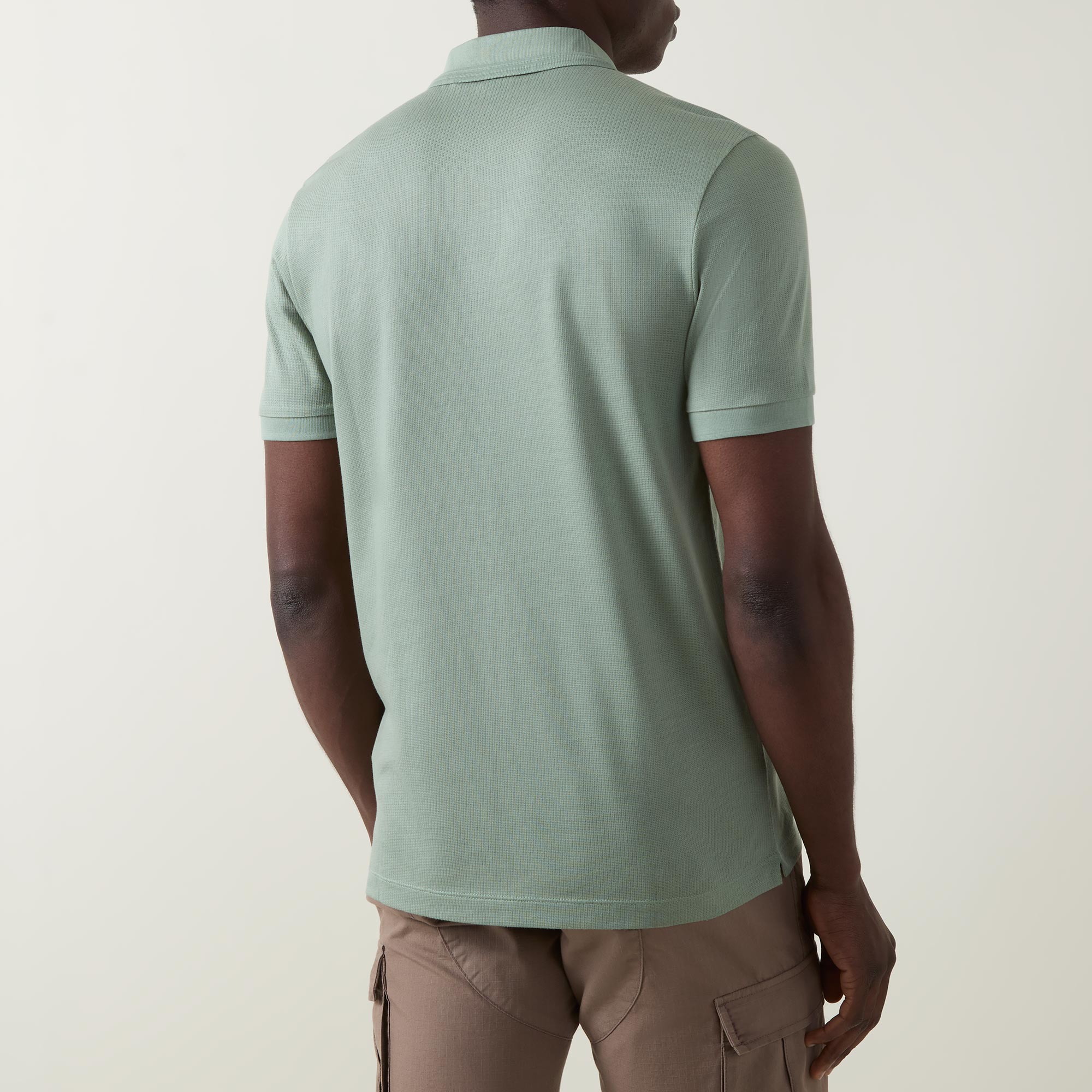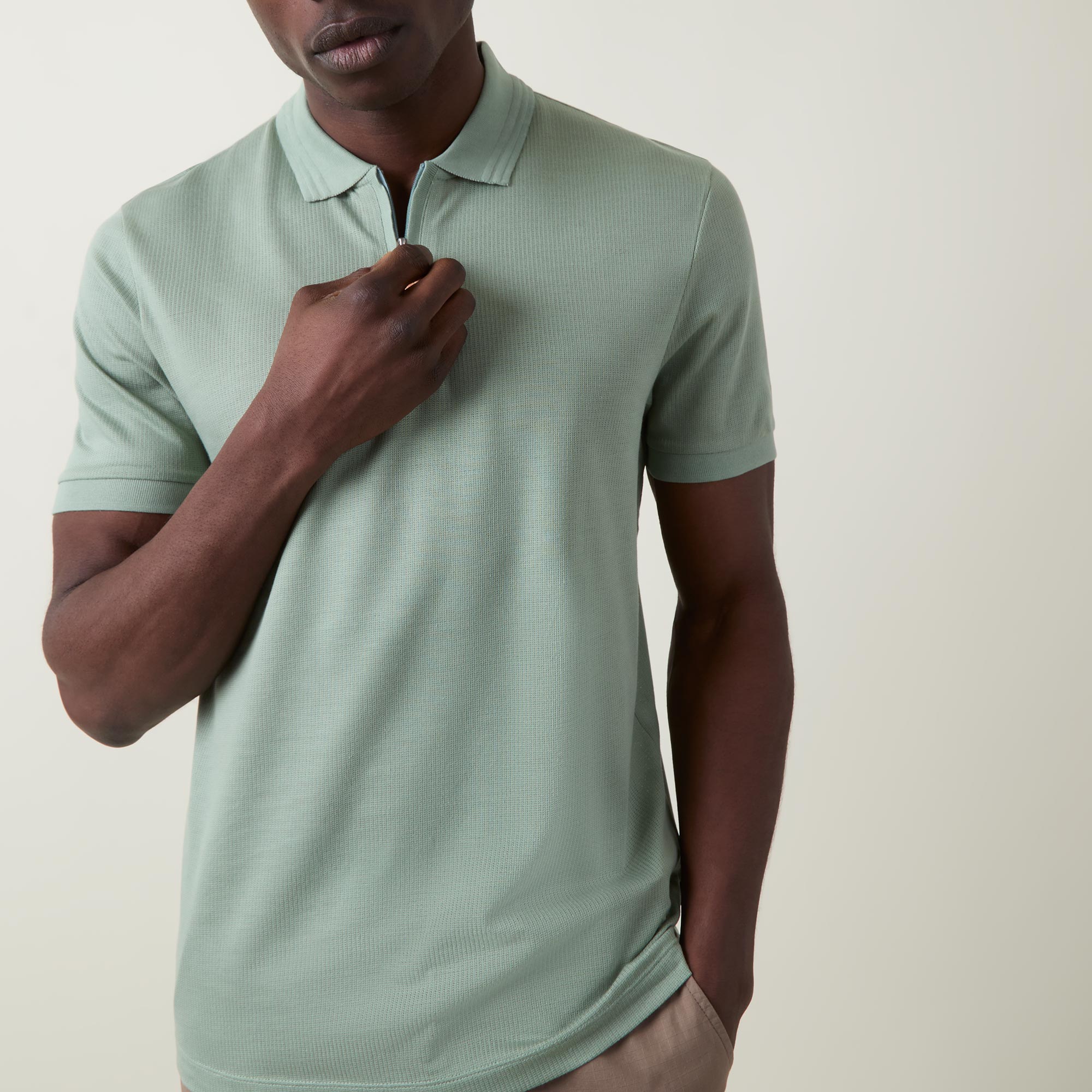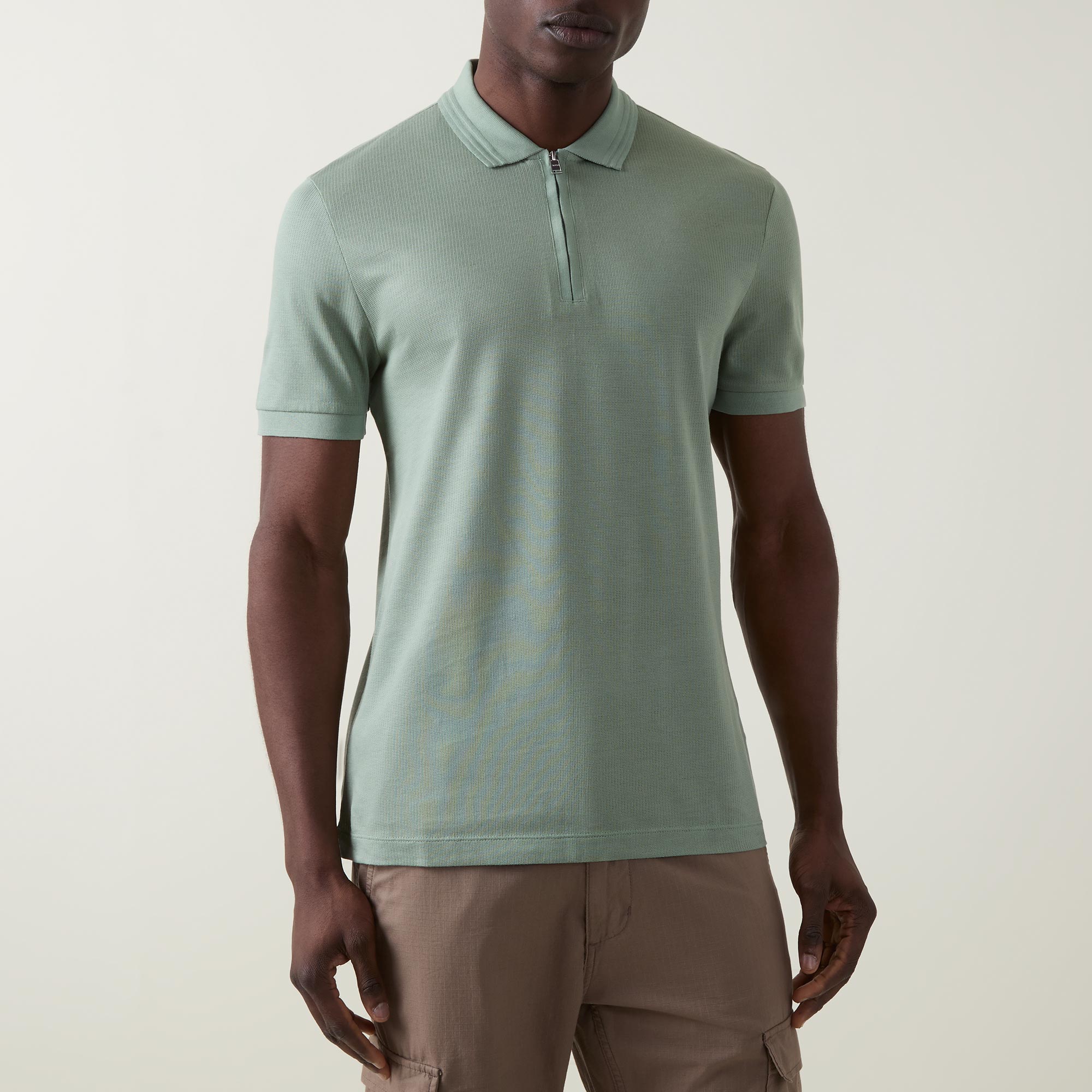 - Zip fastening, short sleeves, polo collar, short sleeves, straight hemline, logo tag